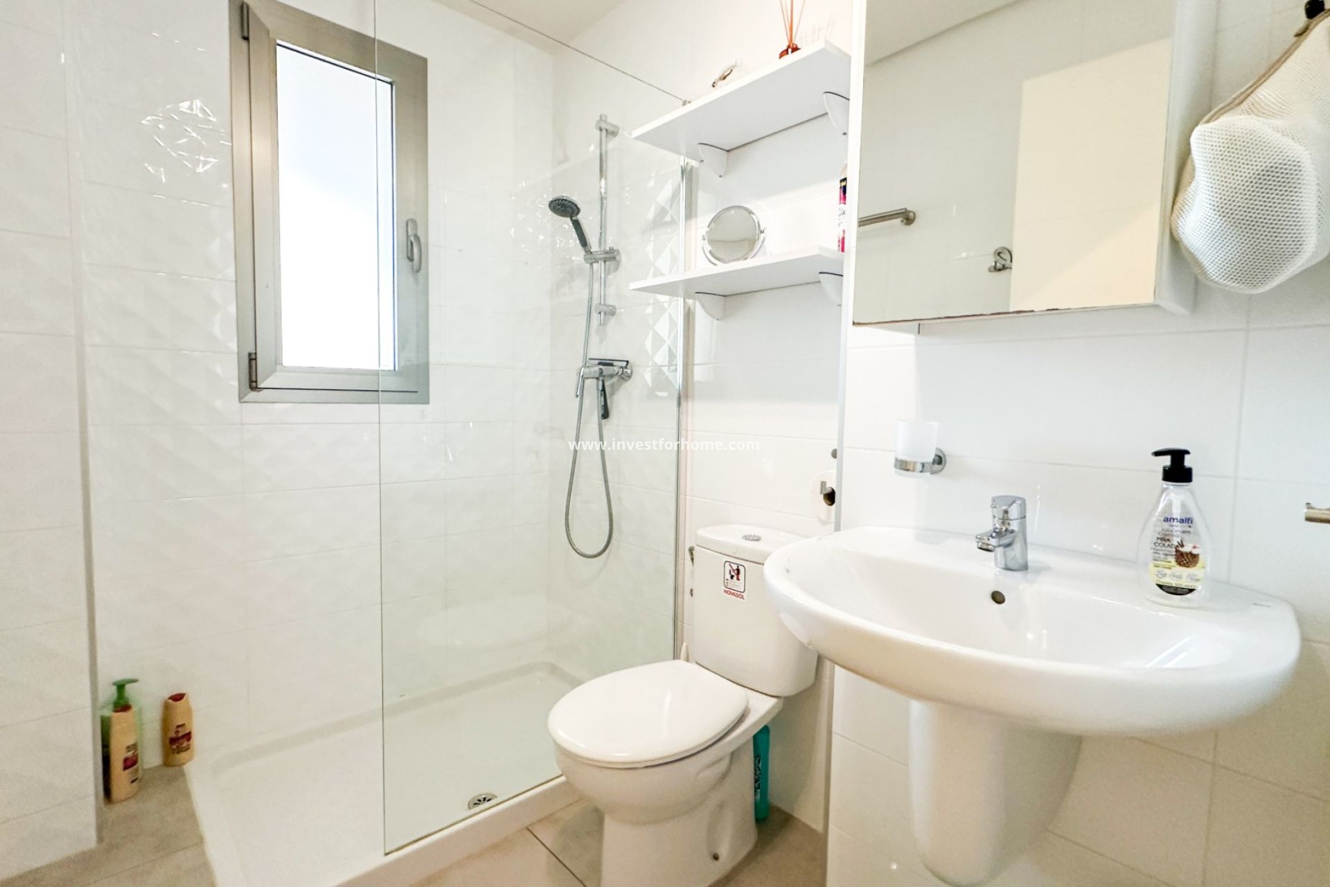Two-bedroom, two-bathroom apartment for sale in a private and exclusive residential complex WITH TOURIST LICENCE. The complex, built in 2017, features an indoor and outdoor swimming pool, a spa and gym, and green areas. The apartment is being sold furnished. It is located just steps from supermarkets and restaurants, and is 3 minutes from Villamartin Golf Course and 5 minutes from La Zenia Beach.