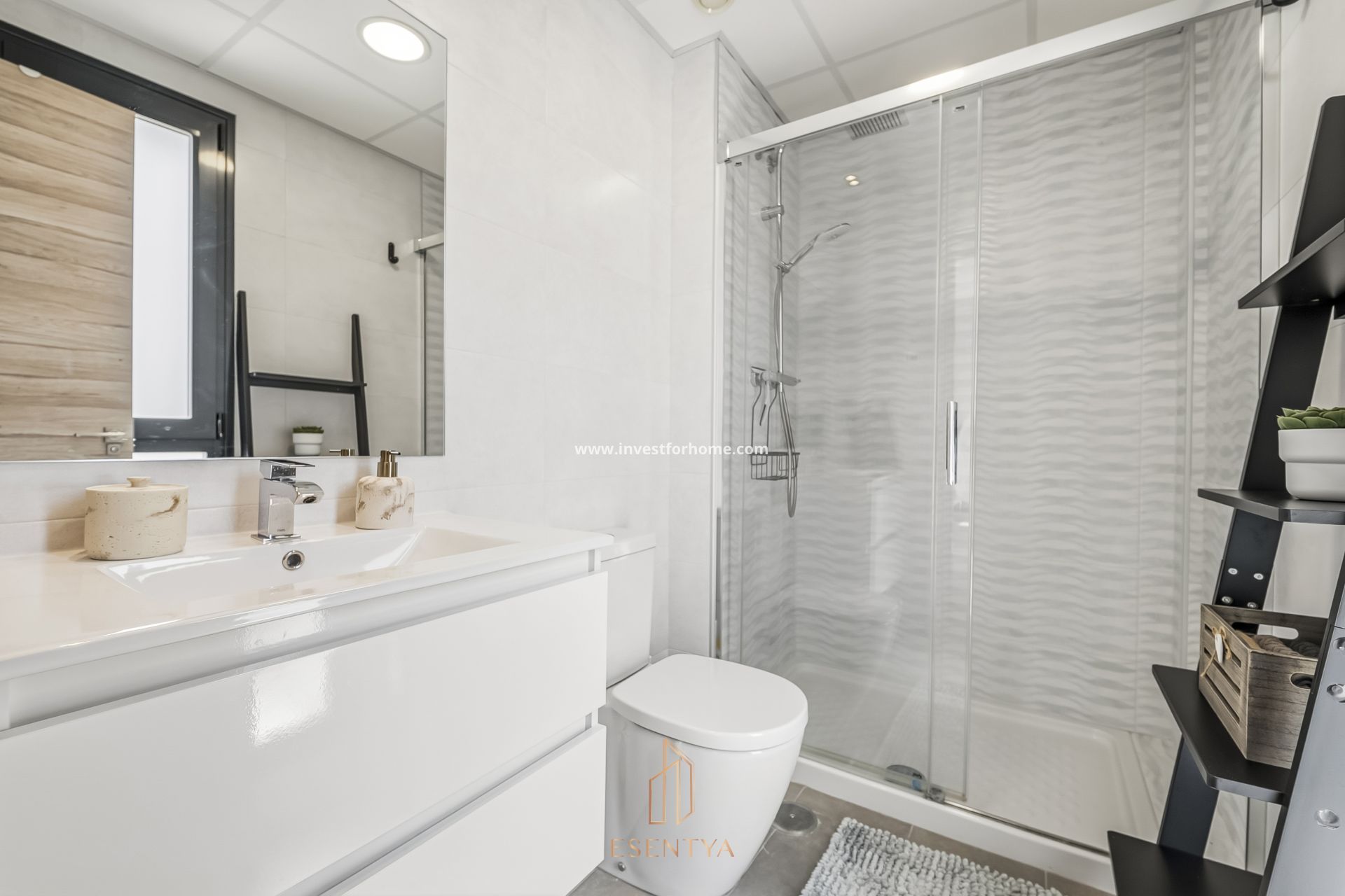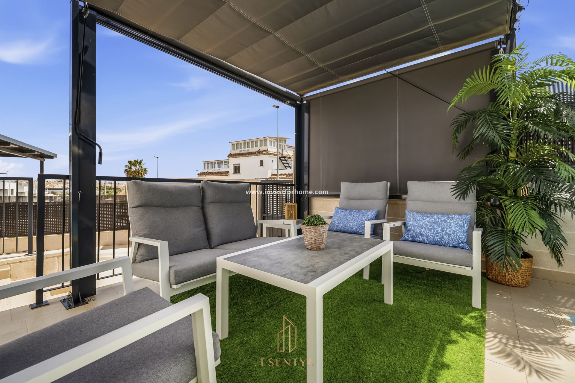 Detached villa with heated pool and solarium in Pau 26, Villamartín. Property built in 2022 on a 190 m² plot, with 115 m² built area and a 36 m² solarium. Distributed over two floors, the ground floor features a living room with open-plan kitchen, 1 bedroom, 1 bathroom and direct access to the garden and private heated pool. The upper floor has 2 bedrooms and 1 bathroom, with access to a terrace from one of the bedrooms. The solarium offers sea views and views of the salt lakes of Torrevieja. The property has southeast orientation, parking space on the plot and is sold furnished. Key features: 3 bedrooms 2 bathrooms 115 m² built 190 m² plot 36 m² solarium / terrace Year of construction: 2022 Private heated swimming pool Southeast orientation Open-plan kitchen Central heating / air conditioning Underfloor heating in bathrooms Electric blinds Parking space on the plot Furnished Location: 1.2 km to supermarket 1.8 km to bars and restaurants 4 km to La Zenia Boulevard 4.4 km to Playa Flamenca beach Annual costs: Community: €375 IBI: