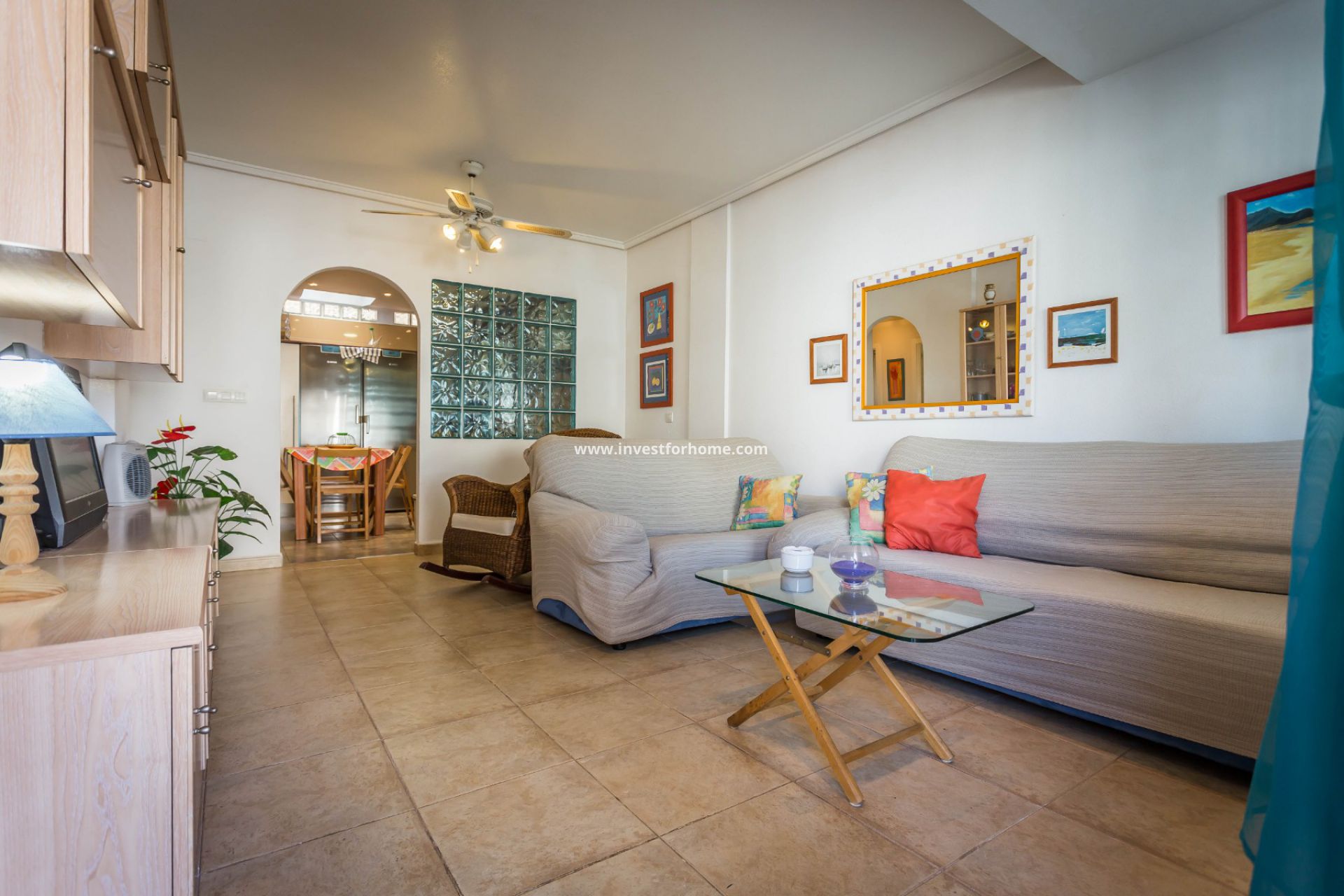 This family duplex house has a living area of 93 m2 and consists of four bedrooms, two bathrooms, garden,terrace,basement and solarium of 15 m2. The basement is accessible from the living room but is as yet not terminated. The ground floor consists of 2 bedrooms,1 bathroom, living room and a large kitchen of 11m2. On the first floor a master bedroom with private bathroom ,a second smaller bedroom and roof terrace. It is possible to enlarge the living room by removing a bedroom on the ground floor. Private parking and storage room on the plot. The residence also has beautiful community pool for children and adults. Ideally situated near to all amenities and nearby beaches.