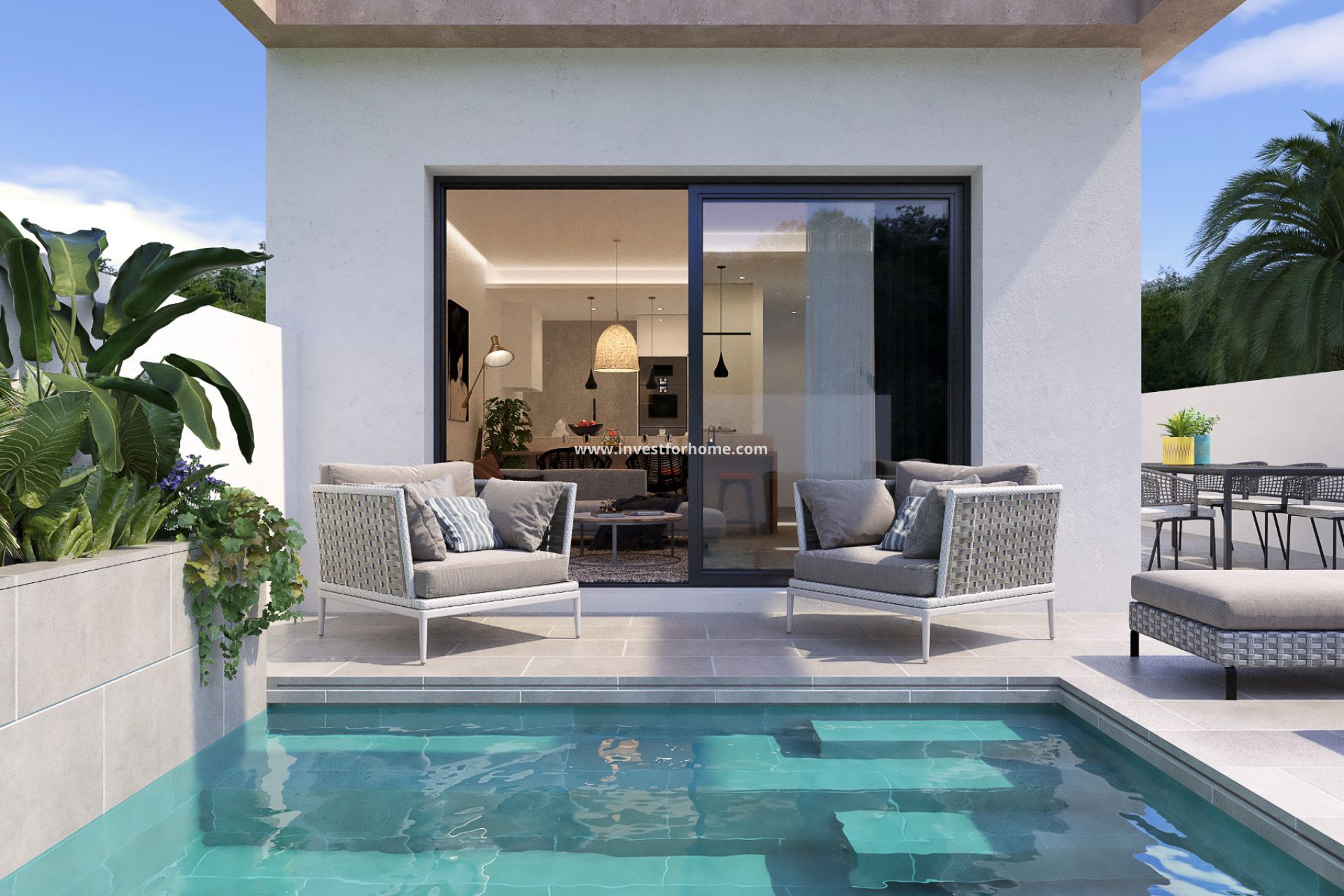 This Residential is a lovely complex of 9 villas each with 3 bedrooms, 2 bathrooms and its own private pool in the Spanish village of Dolores.Each property has a spacious open plan lounge with dining area, modern design kitchen with a range of wall and base units and a breakfast bar, a double bedroom with fitted wardrobes and en-suite bathroom downstairs. Up stairs are a further 2 double bedrooms each with fitted wardrobes and a family bathroom. The master bedroom has access to a large balcony terrace which overlooks the garden and pool area.The properties benefit from having double glazing, down lights, TV sockets and pre-installation for air con .The properties have a minimum plot size of 136m2 and a parking area, Dolores itself is a lovely market town with bars, shops and restaurants close at hand making it an ideal spot for both permanent living or holiday stays. The lovely beaches of Guardamar Del Segura are just a short drive away and there are several golf courses in the area. Both Alicante airport can be reached within 40 minutes and the new Murcia international airport at Corvera in approx. 1 hour.