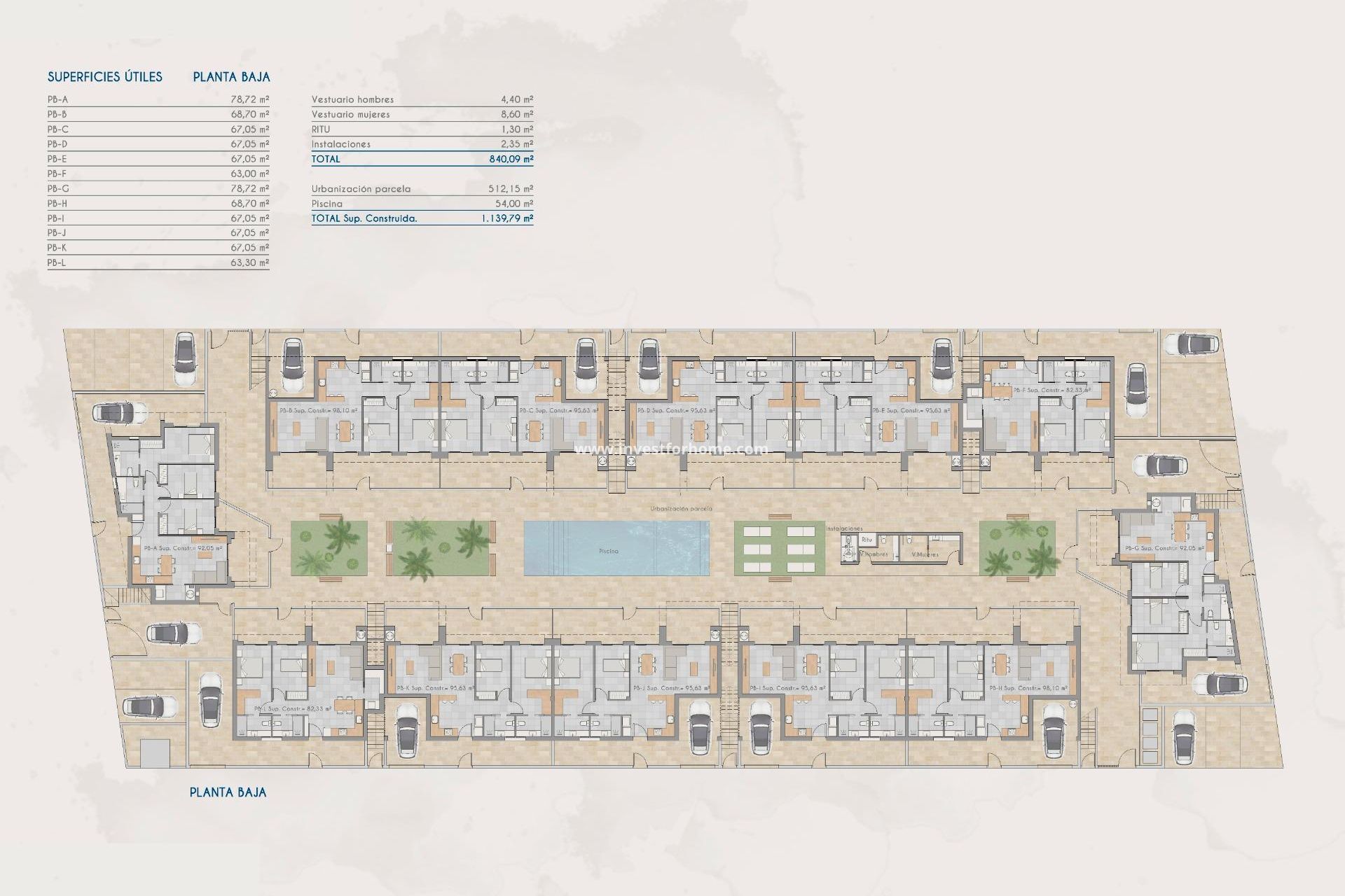 New Construction Homes in Torre-Pacheco, Costa Cálida Modern Bungalows with Exceptional Features Discover a new residential complex in Torre-Pacheco, offering 24 stylish bungalows with 2 or 3 bedrooms. Choose between ground-floor homes with spacious terraces or first-floor units boasting private terraces and solariums. Each solarium includes a pergola, a barbecue area, and reinforced roofing, perfect for installing a jacuzzi. All homes come with a designated parking space and fully installed air conditioning, ensuring comfort year-round. Prime Location in Torre-Pacheco Nestled in the heart of Torre-Pacheco, this development enjoys proximity to essential amenities, including supermarkets, shops, bars, and restaurants. The vibrant town center, with its charming Spanish ambiance, is within walking distance. For beach lovers, the stunning Mar Menor is just a 10-minute drive away, offering golden sands and crystal-clear waters. Enjoy Outstanding Community Amenities The complex features a beautifully landscaped community area with lush gardens and a sparkling pool, providing a serene retreat to relax and unwind. The area’s sunny climate, averaging 320 days of sunshine annually, complements these outdoor spaces perfectly. Surrounded by Award-Winning Golf Courses Torre-Pacheco is a golfer’s paradise, surrounded by some of the most renowned golf courses in Spain. These courses are just a short drive away, making it an ideal location for golf enthusiasts. Strategic Connections to Key Destinations Murcia International Airport: 20 km (approximately 20 minutes by car). Train Station: Only 700 meters away, offering convenient travel options. Shopping Centers: Several large shopping complexes within a 15 km radius. Beaches: The beautiful Costa Cálida beaches are a mere 10 km away. Ports and Marinas: The closest marina is around 12 km away, perfect for boating and water sports. A Healthier Lifestyle Awaits The Costa Cálida region is renowned for its exceptional quality of life. With low humidity, clean air, and a subtropical climate, this area is one of the healthiest in Spain. The perfect combination of natural beauty, sea breezes, and abundant sunlight makes Torre-Pacheco a highly sought-after destination. Act Now to Secure Your Dream Home Don’t miss this opportunity to own a modern home in a prime location. Contact us today to learn more about this incredible development or to schedule a viewing!