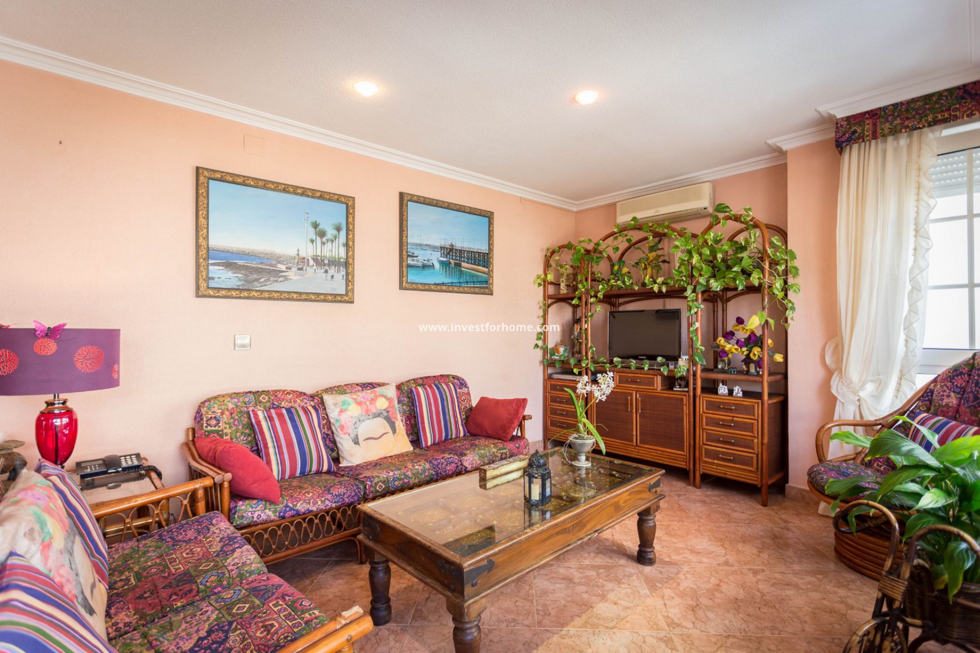 With an area of 140m², it contains a large living room, a family kitchen, 3 bedrooms, one of which is en suite, and a shared solarium.