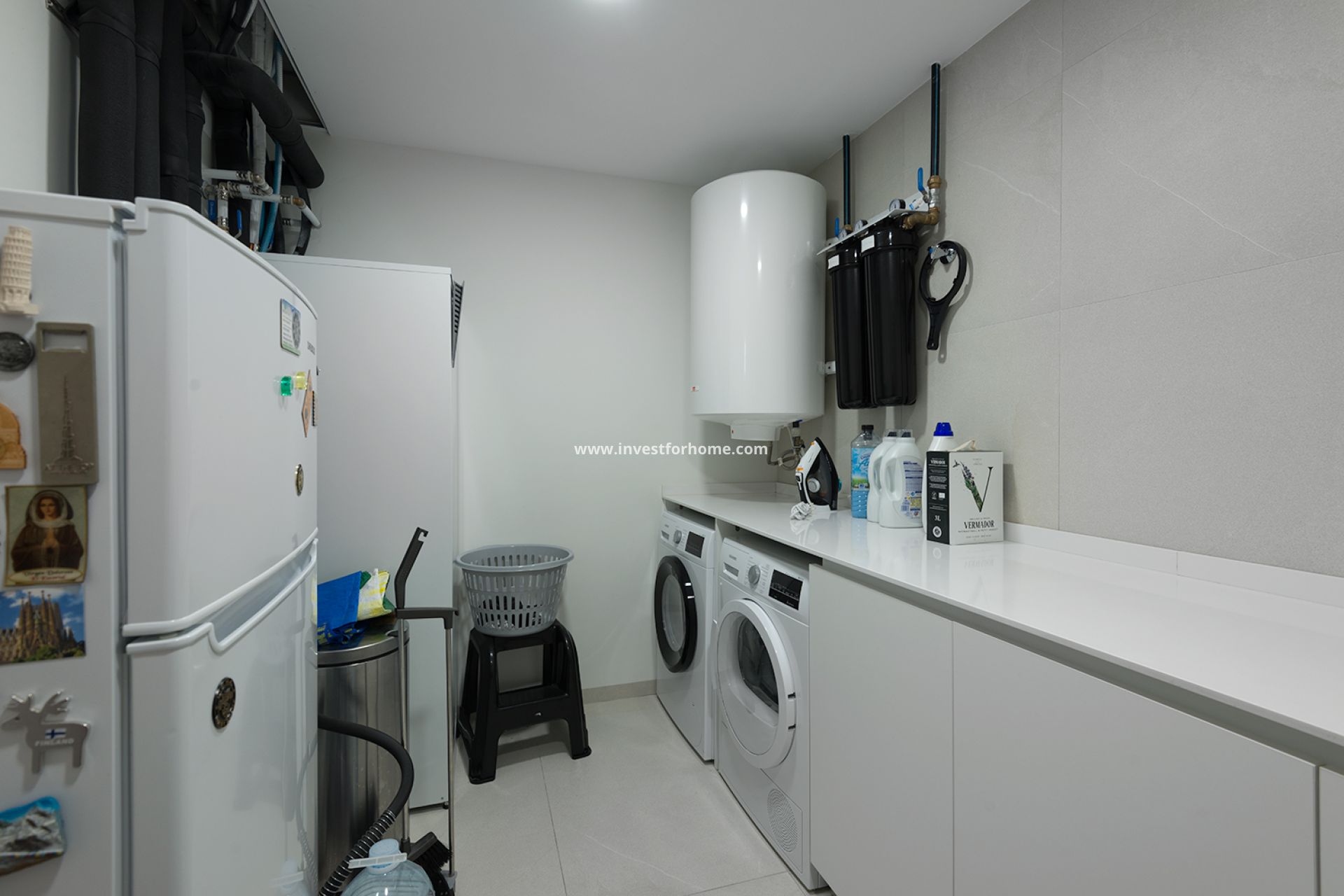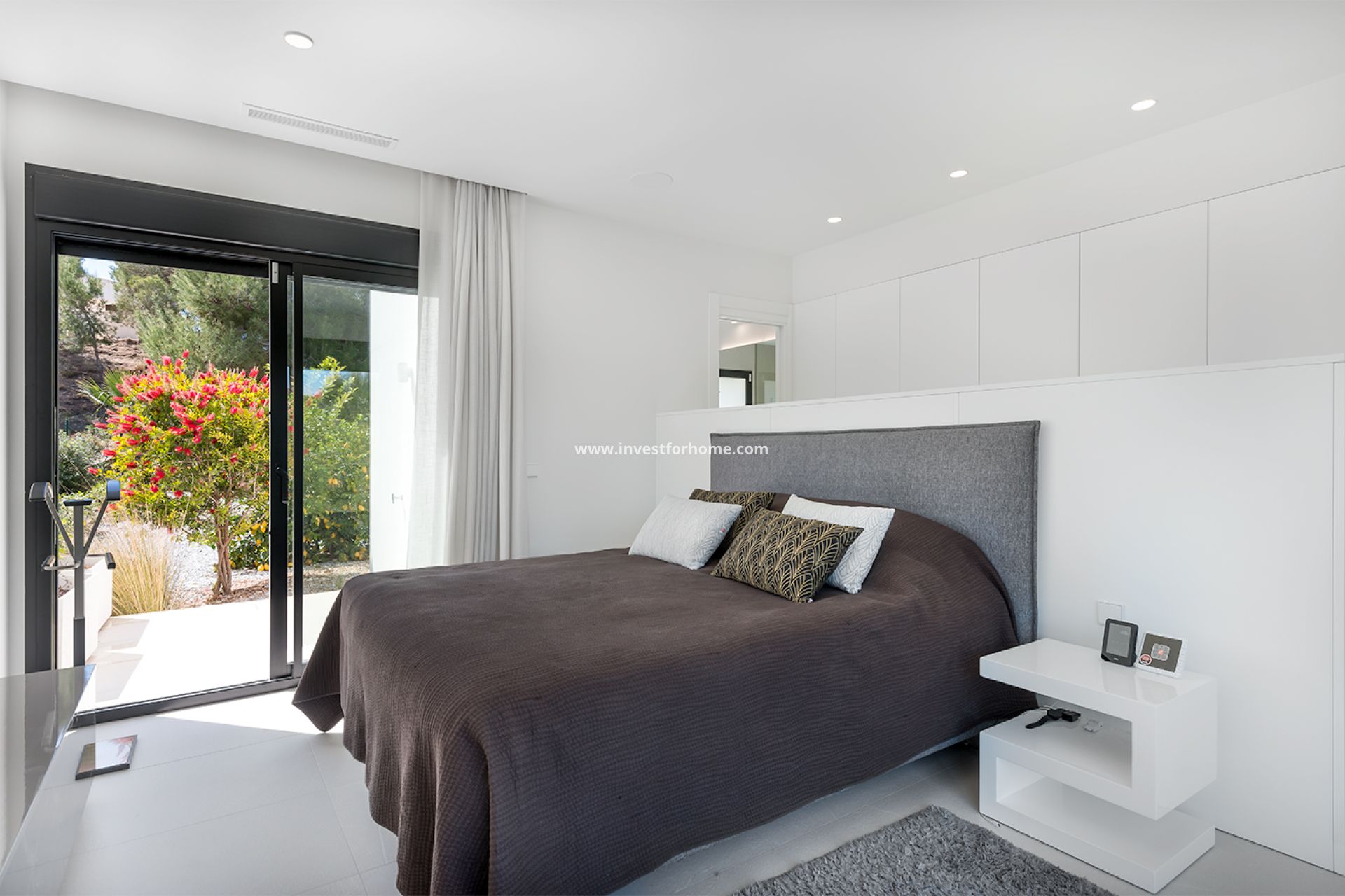 Exclusive Villa in Las Colinas – Mandarino Step into your private oasis at Las Colinas Golf & Country Club, where luxury meets tranquility. This stunning villa sits on a spacious 1,700m² plot, bordering a natural park, offering complete privacy. The beautifully designed courtyard features a swimming pool, jacuzzi, stand-alone sauna, evening snack area, and lush landscaping—perfect for relaxation and entertainment. Inside, the villa embraces a serene Scandinavian design with an open-plan kitchen, living, and dining area. The main floor boasts three bedrooms, each with en-suite bathrooms and direct garden access, ensuring ultimate comfort. Underfloor heating adds to the luxury. The lower level includes a large office, utility room, an additional bedroom with a walk-in closet, and a spacious garage. Built with care and designed for energy efficiency, powered by solar energy, this home offers the perfect blend of peace, privacy, and modern living. Your dream home awaits – contact us today for more details! About Las Colinas: Las Colinas Golf & Country Club is a residential community, where exclusive villas and apartments are built around a championship golf course. The par-71 course is designed by renowned American landscape architect, Cabell B. Robinson and complemented with a short game area designed by golf legend Miguel Angel Jimenez. With its prime location and top-notch amenities, the resort has been honored with the title of "Leading Villa Resort in Spain and Europe" by the World Travel Awards. Features: 18-hole par-71 Championship golf course Restaurants and cafes Fitness center, tennis, basketball, and volleyball courts Spa and swimming pool Store Charging station for electric cars WOW Beach-club, with swimming pool, restaurant and bar by the beach Distance to: Alicante airport – 65 km, 50 min Shopping center La Zenia Boulevard – 12 km, 16 min Nearest supermarket – 6 km, 10 min Beach club – WOW Beach, 9 km, 15 min Yacht Club “Dehesa de Campoamor – 8 km, 15 min Nearest hospital, Centro Medico Ribera Campoamor – 12 km, 16 min