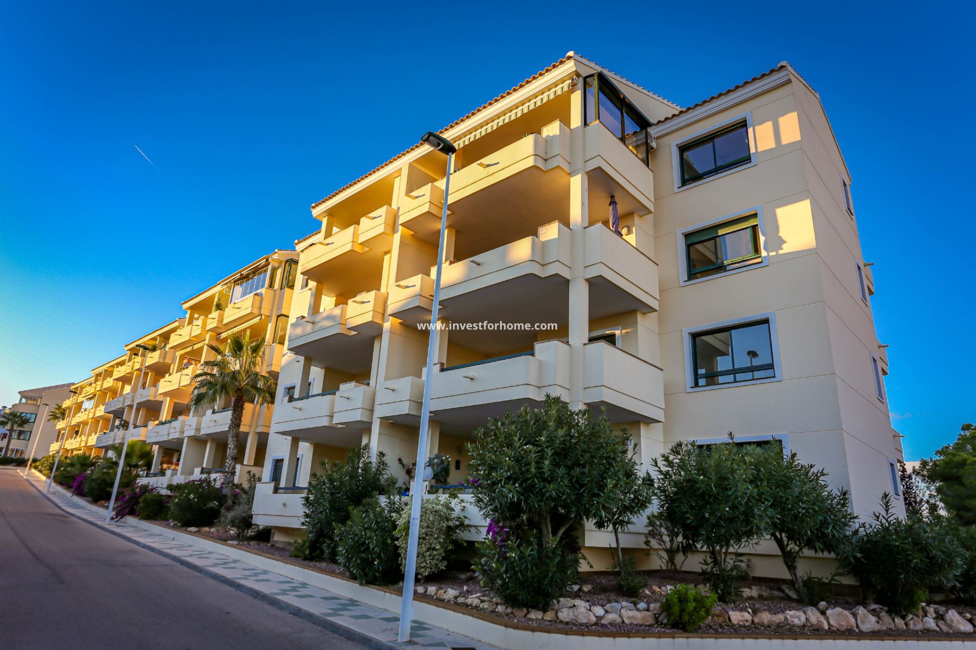 A very spacious 2 bedroom ,2 bathroom apartment (type Molinos) of 94 sqm is located at the very popular Lomas de Campoamor Golf. Two ample south facing terraces (of which one is a solarium) and panoramic sea view make this a fantastic opportunity. it has a lovely communal pool, and 24/7 security service. Is sold not furnished.Close to all amenities. Although the property has a traditional look and feel, it offers a whopping 94 sqm as interior surface, combined with a vast terrace of 23 sqm and solarium of 20 sqm. Besides a bright living room and kitchen (with utility room), there are 2 bedrooms with build in wardrobes and 2 fully equipped bathrooms.Located on the second floor, offering great panoramic views and a South-West orientation.