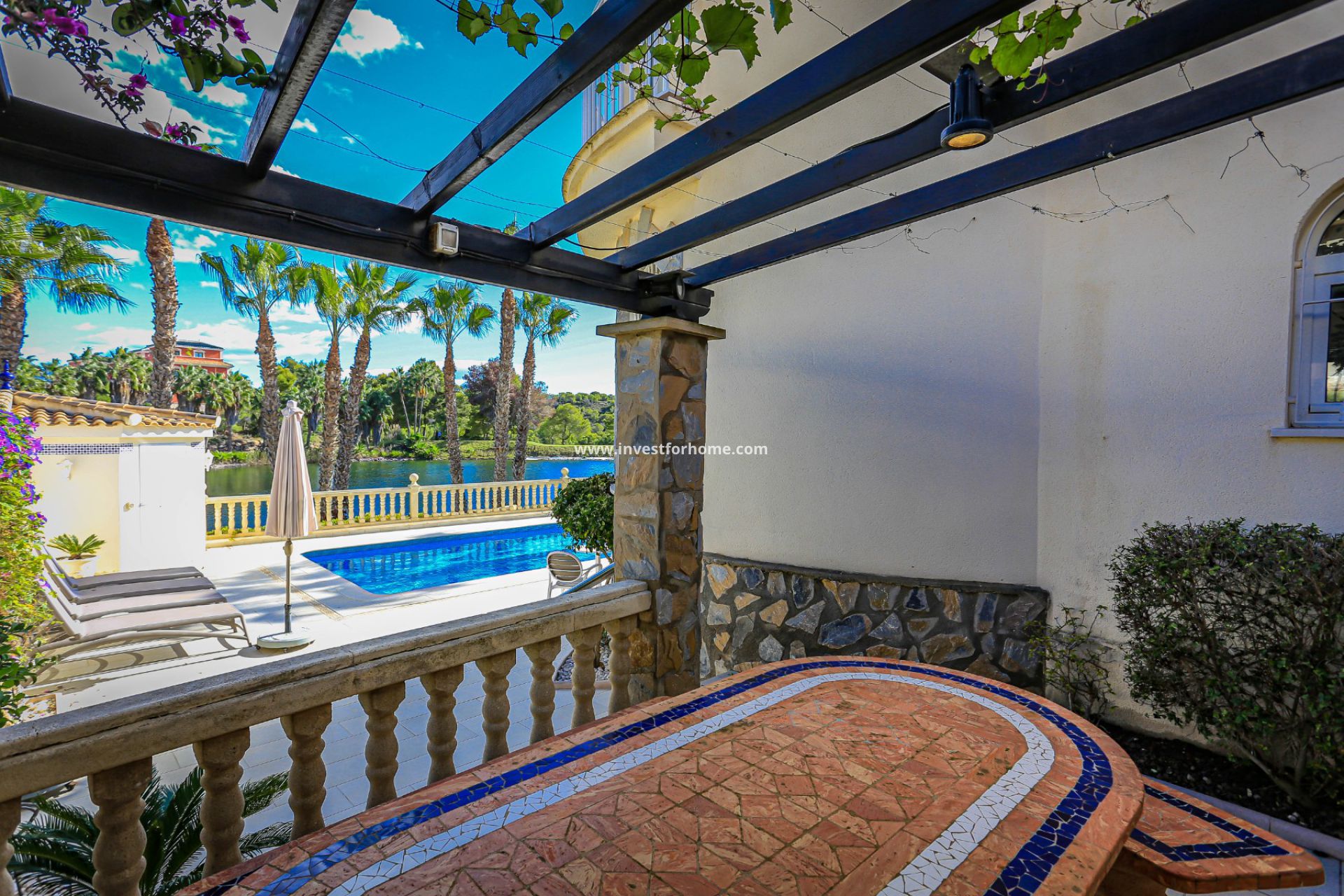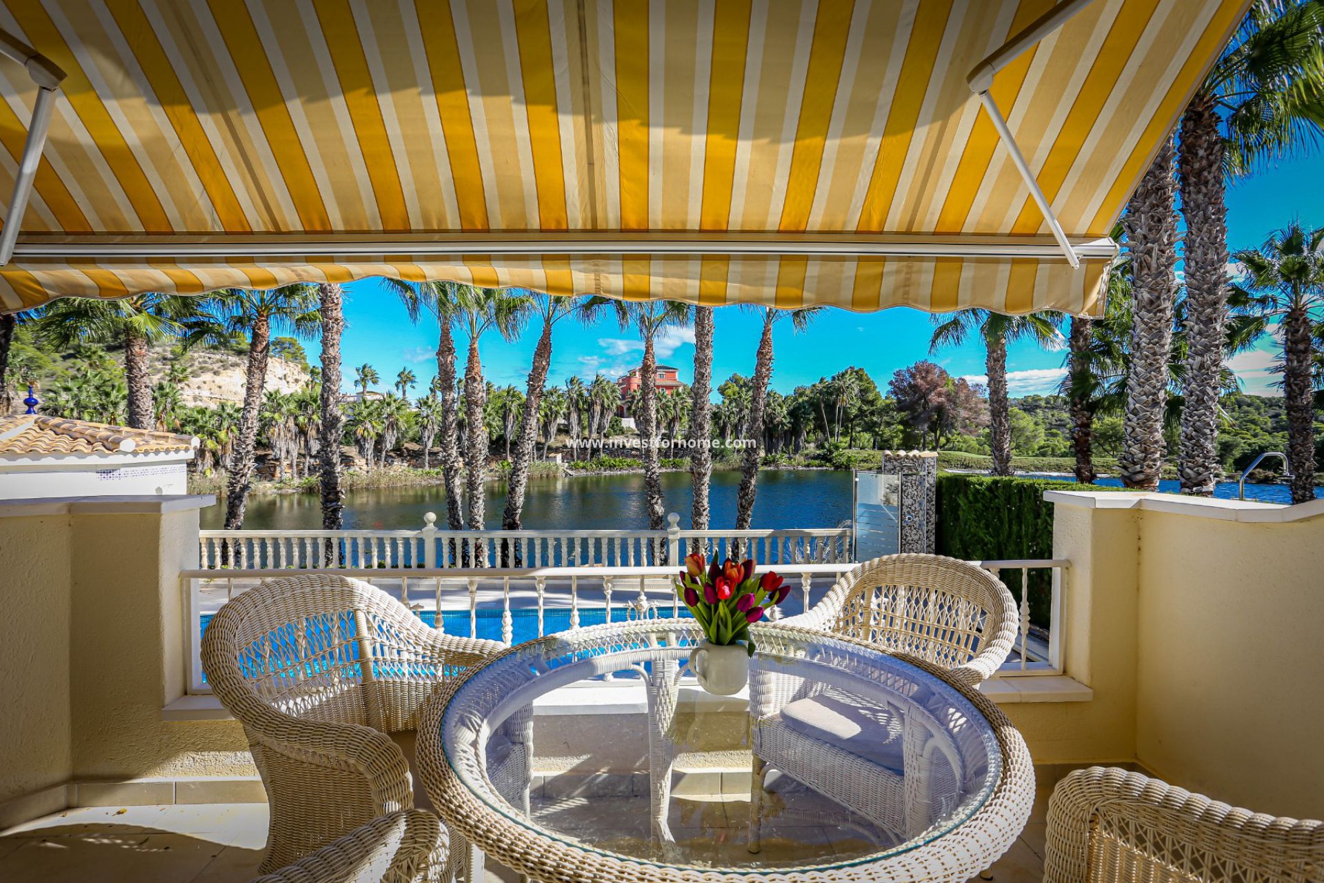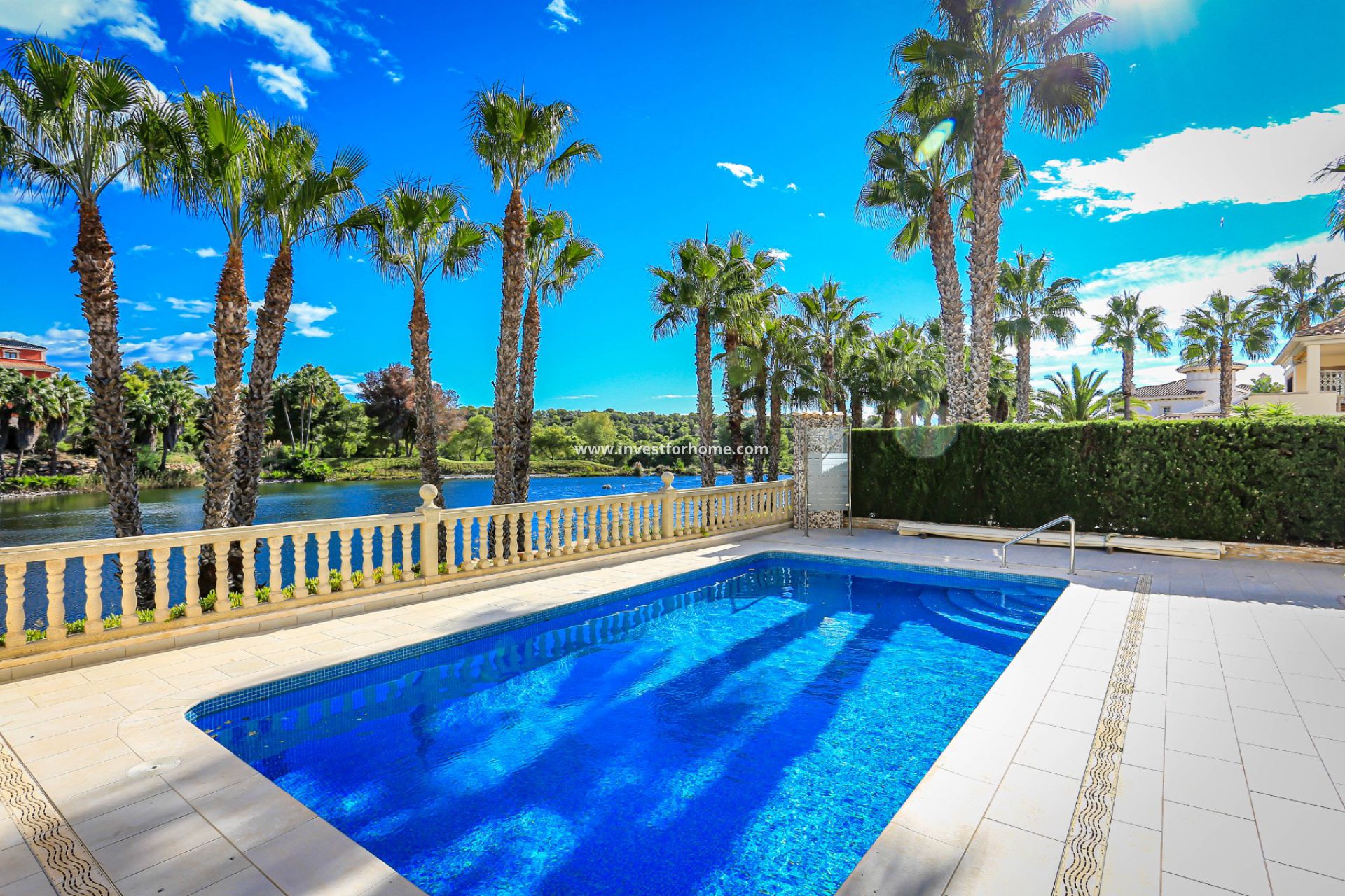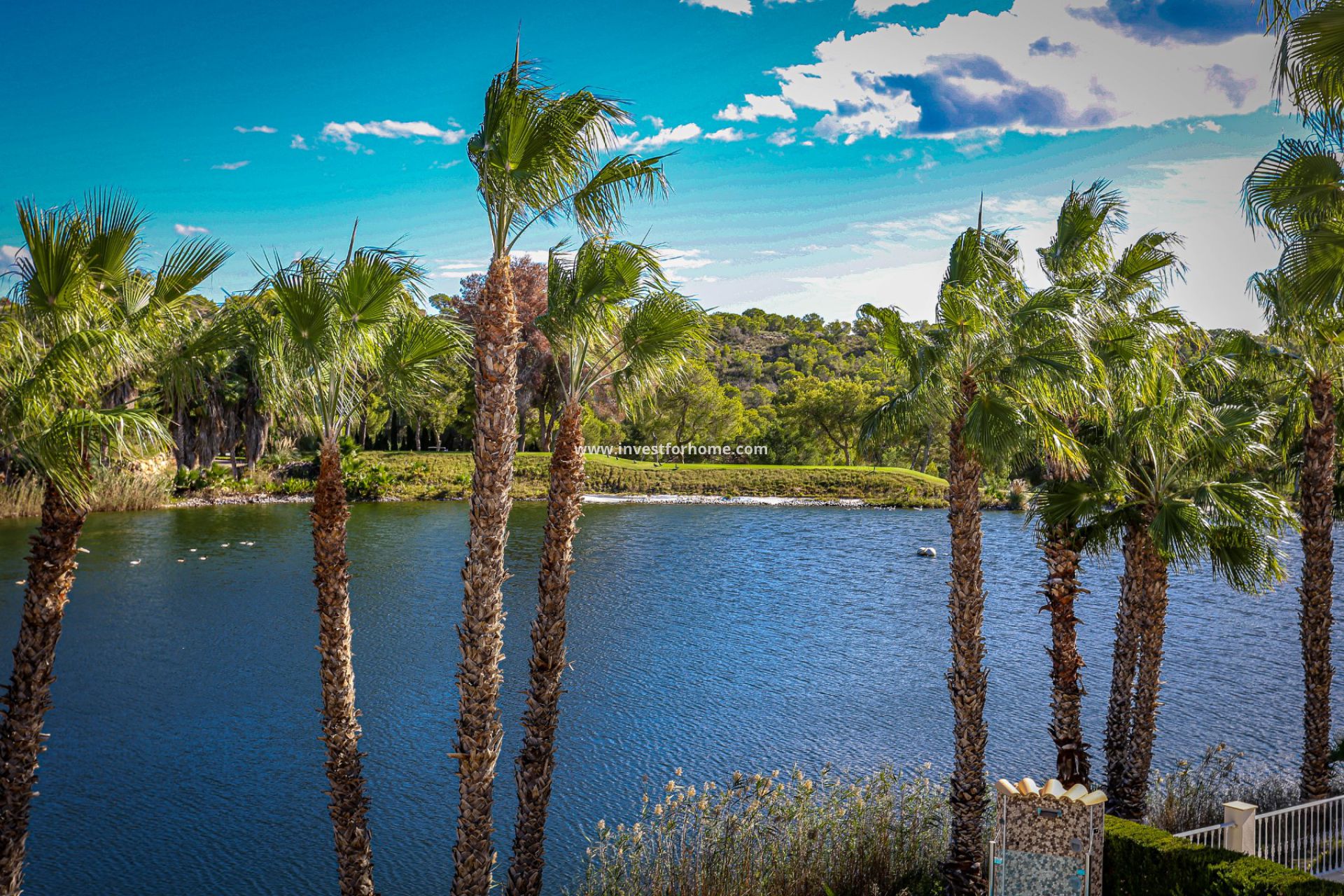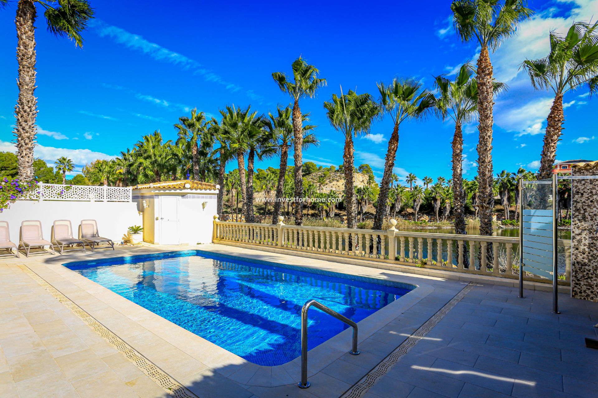Fantastic Mediterranean style villa for sale on the Golf Resort of Las Ramblas. The house has a large green plot with a private heated swimming pool. It was built in 2002 on a plot of 380 m2. It has been designed with the most prestigious materials and fully equipped to offer exceptional comfort to live there all year round or to spend a family vacation in an ideal setting. Unique house overlooking the lake and the Golf de Las Ramblas while being sheltered from golfers' stray balls. Very few overlooked, the heated and lighted salt water swimming pool faces south as well as an outdoor shower with hot water. All the conditions are met to enjoy this beautiful outdoor space all year round. It also has a large garage widened to measure so as to park a large car and to have a tool space.