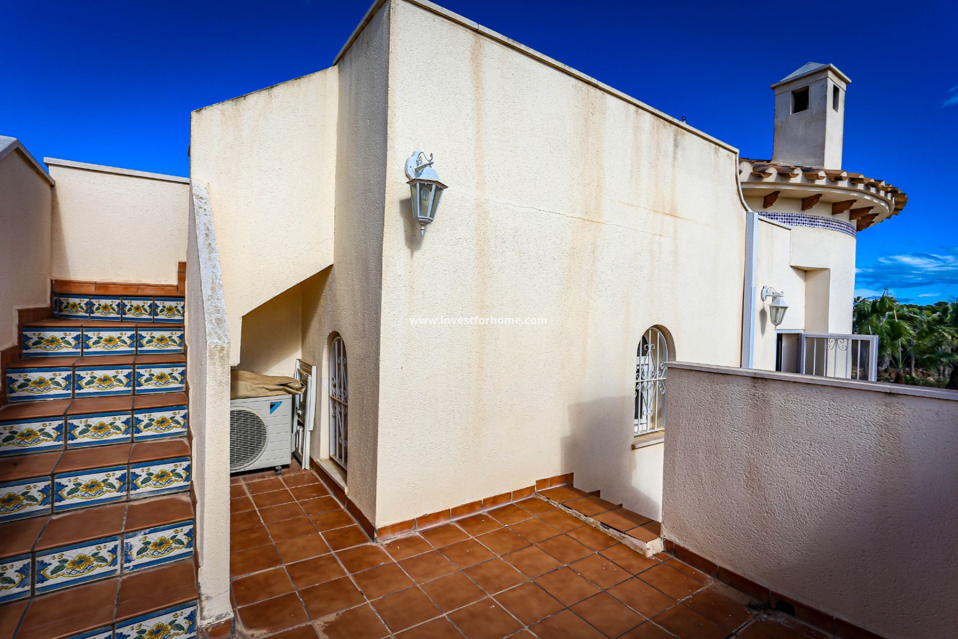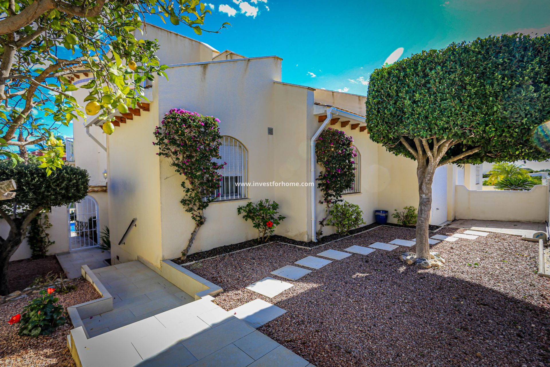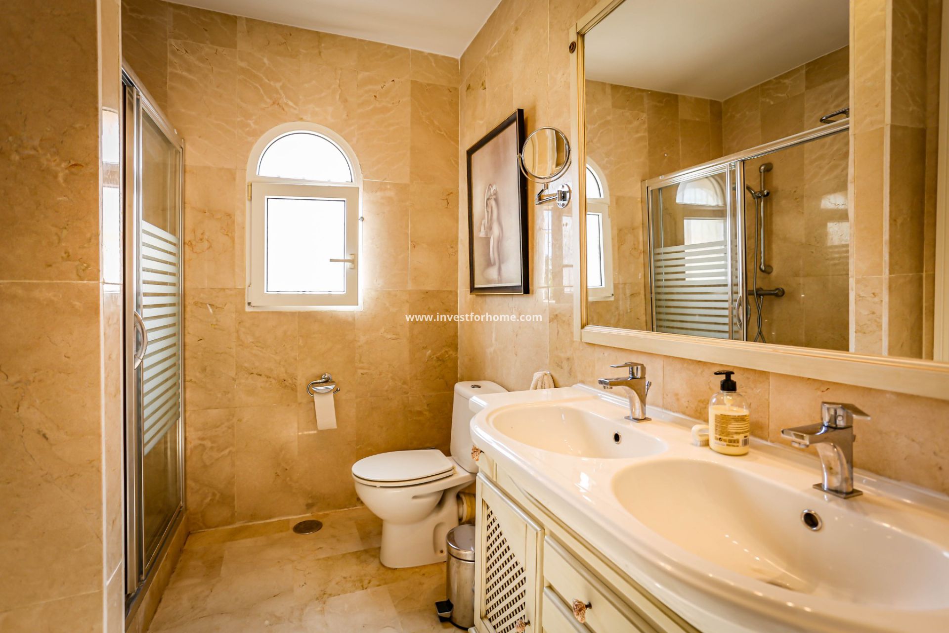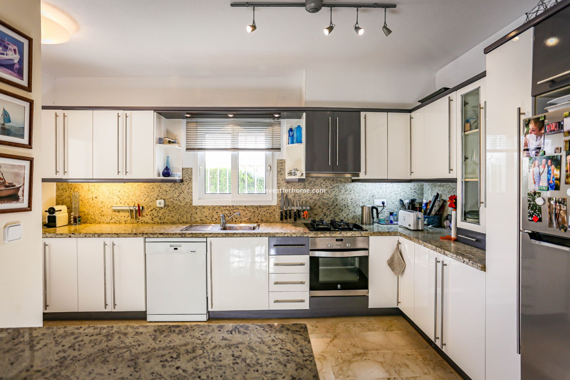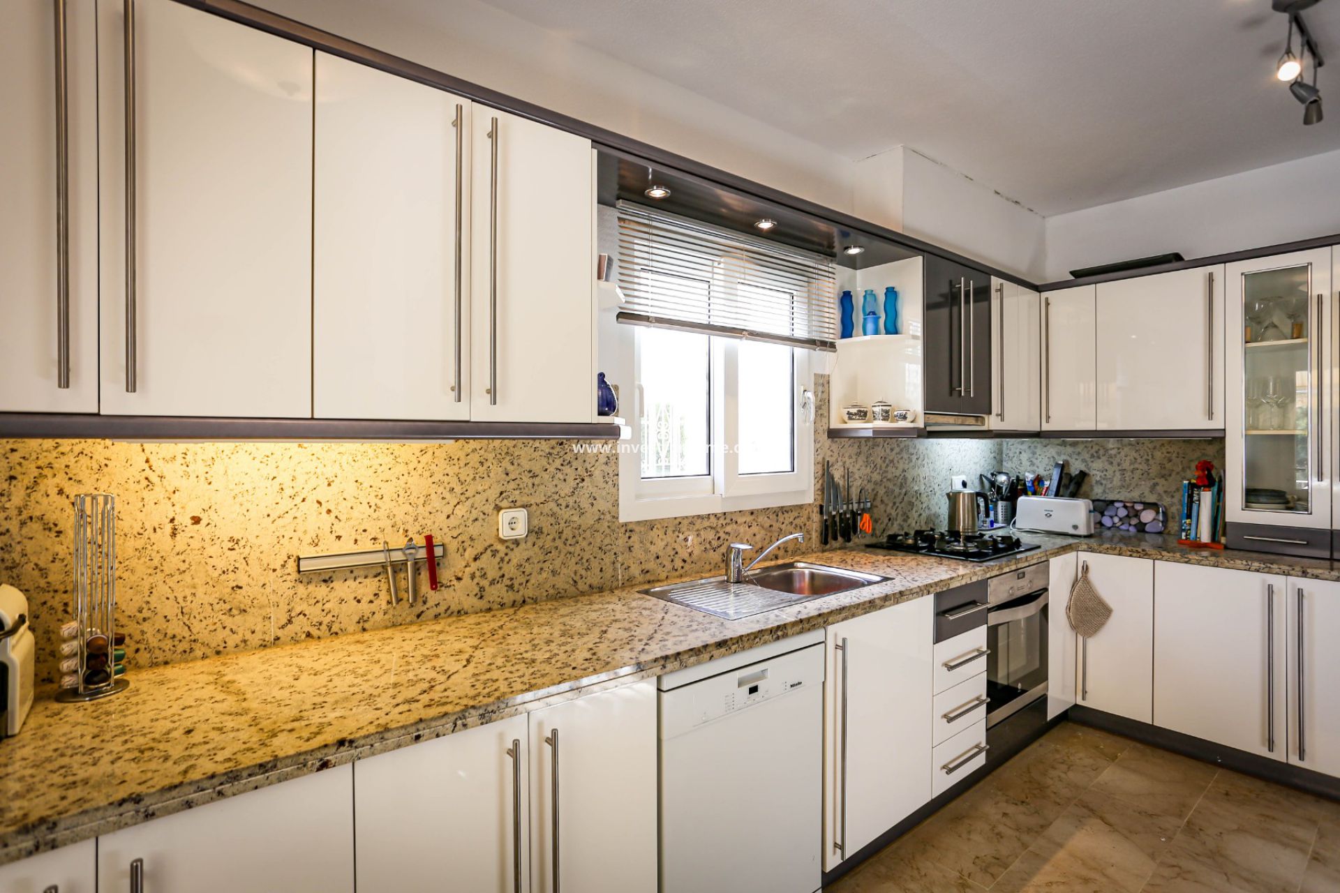Fantastic Mediterranean style villa for sale on the Golf Resort of Las Ramblas. The house has a large green plot with a private heated swimming pool. It was built in 2002 on a plot of 380 m2. It has been designed with the most prestigious materials and fully equipped to offer exceptional comfort to live there all year round or to spend a family vacation in an ideal setting. Unique house overlooking the lake and the Golf de Las Ramblas while being sheltered from golfers' stray balls. Very few overlooked, the heated and lighted salt water swimming pool faces south as well as an outdoor shower with hot water. All the conditions are met to enjoy this beautiful outdoor space all year round. It also has a large garage widened to measure so as to park a large car and to have a tool space.
