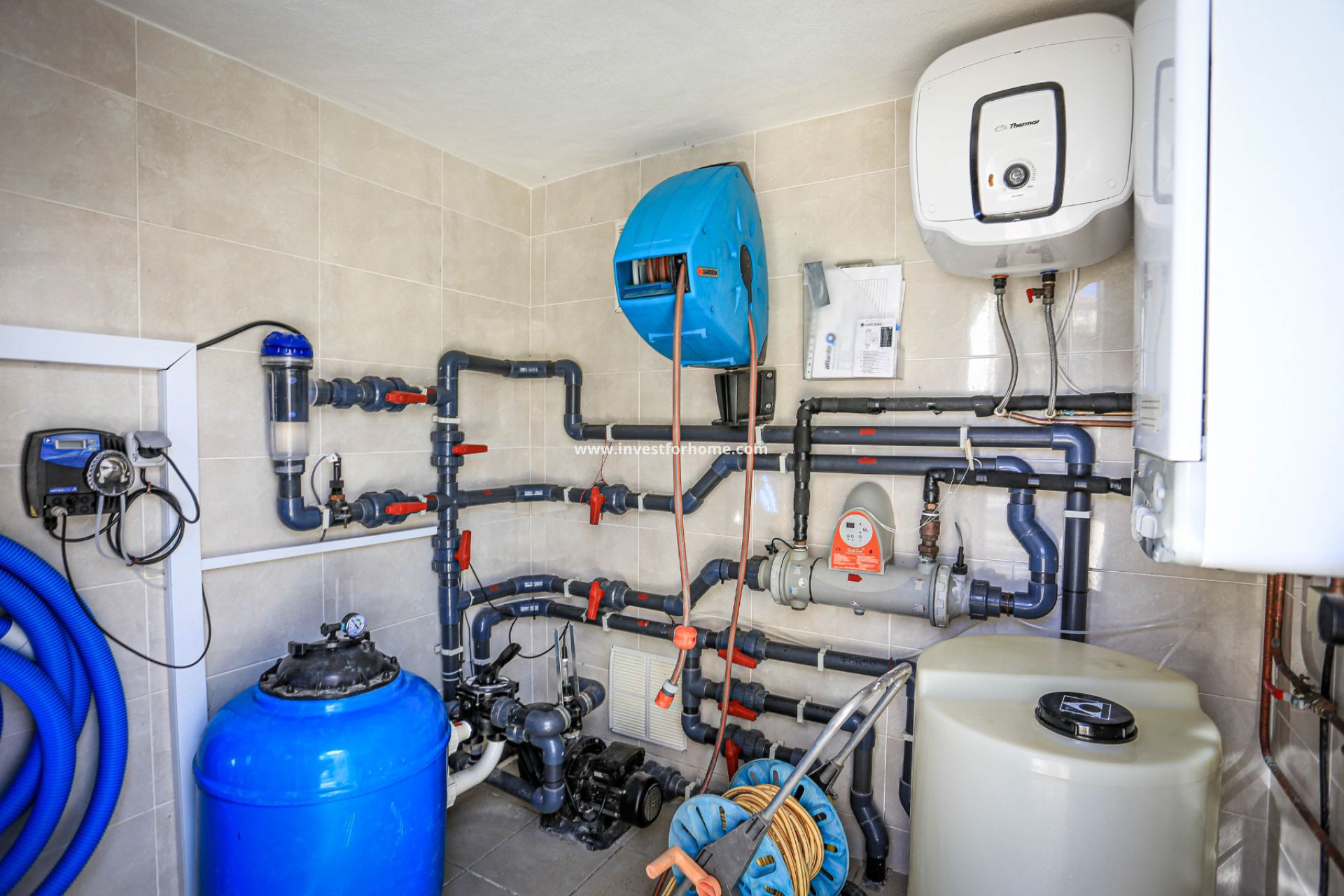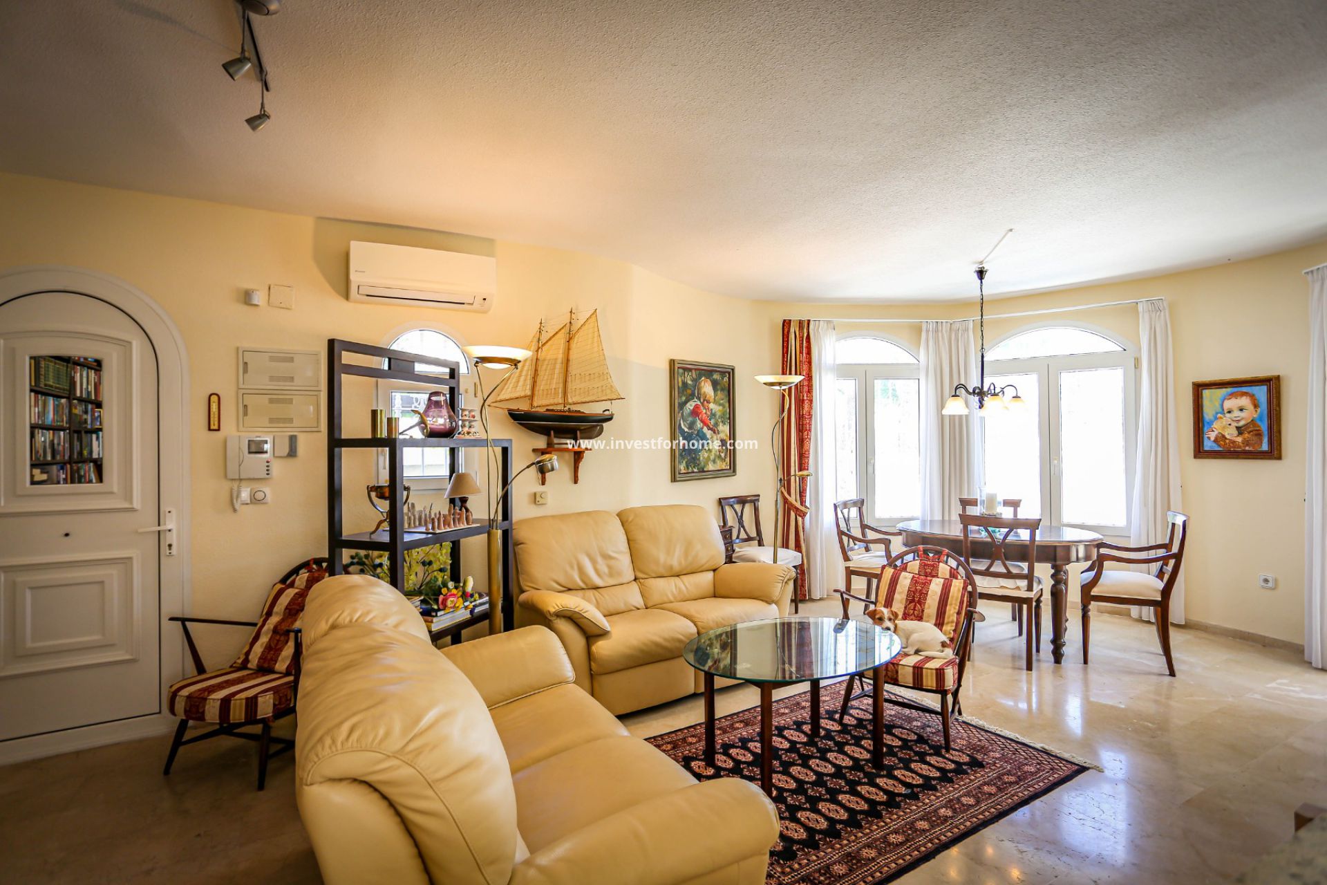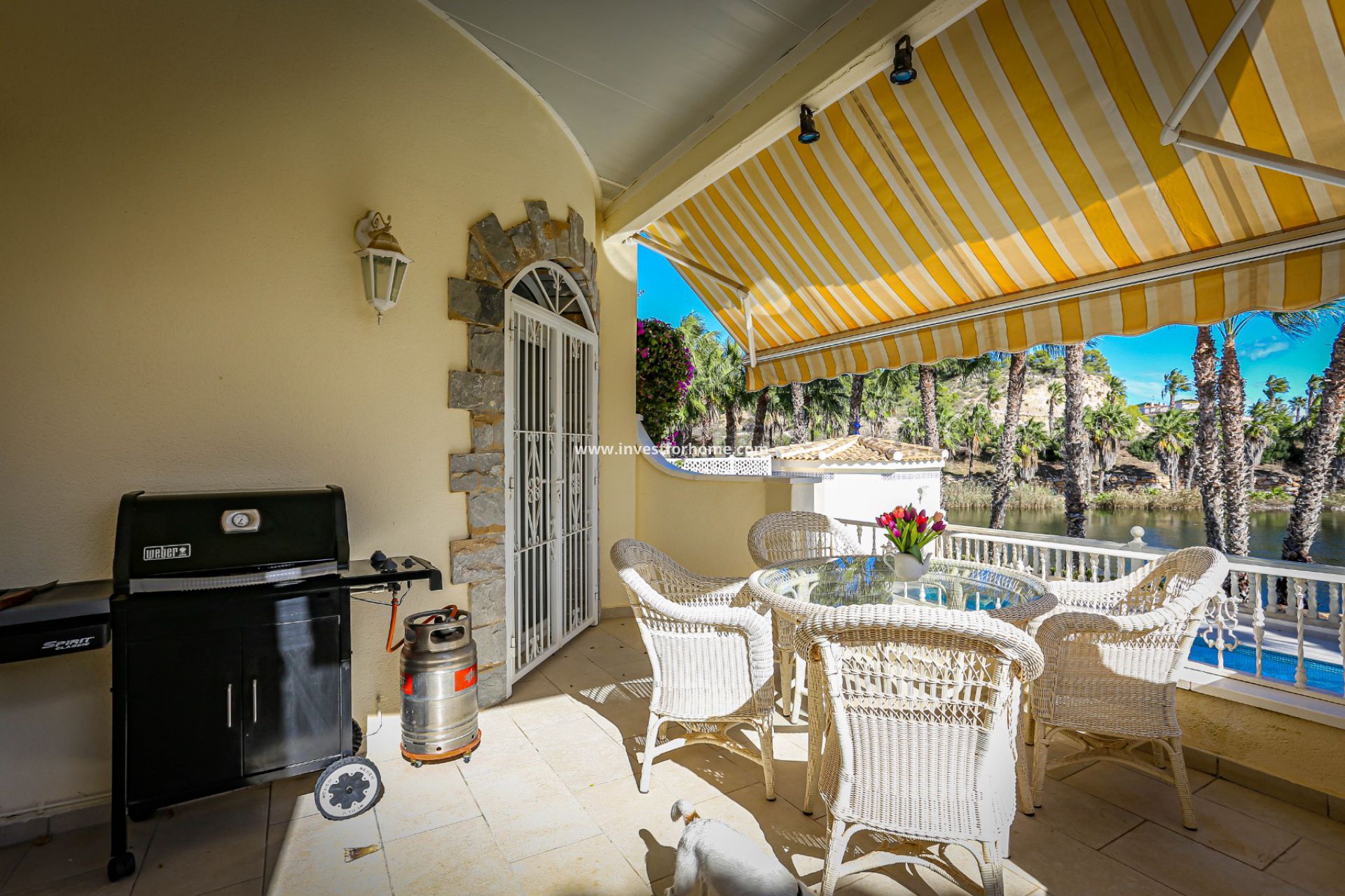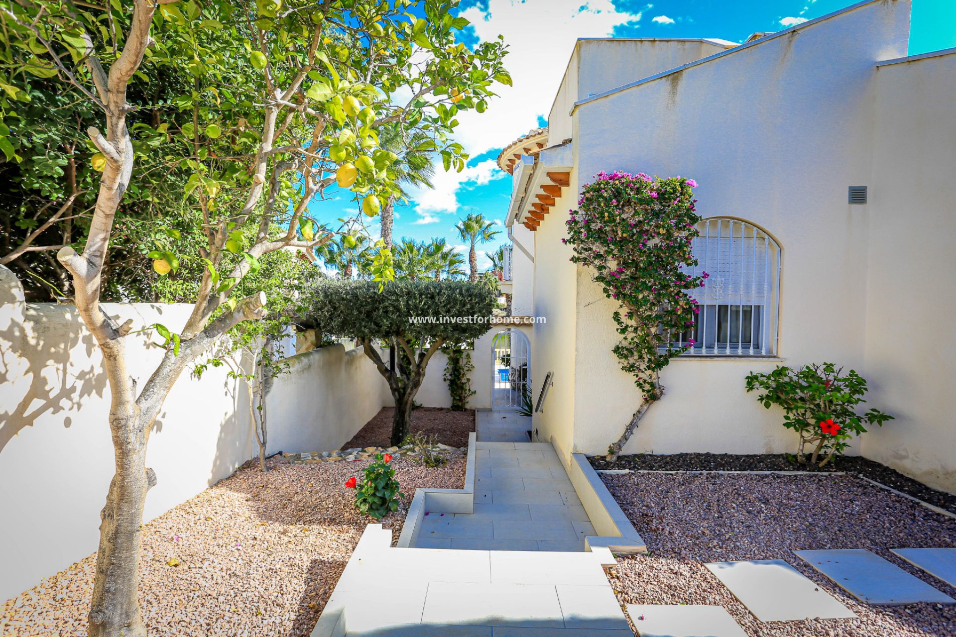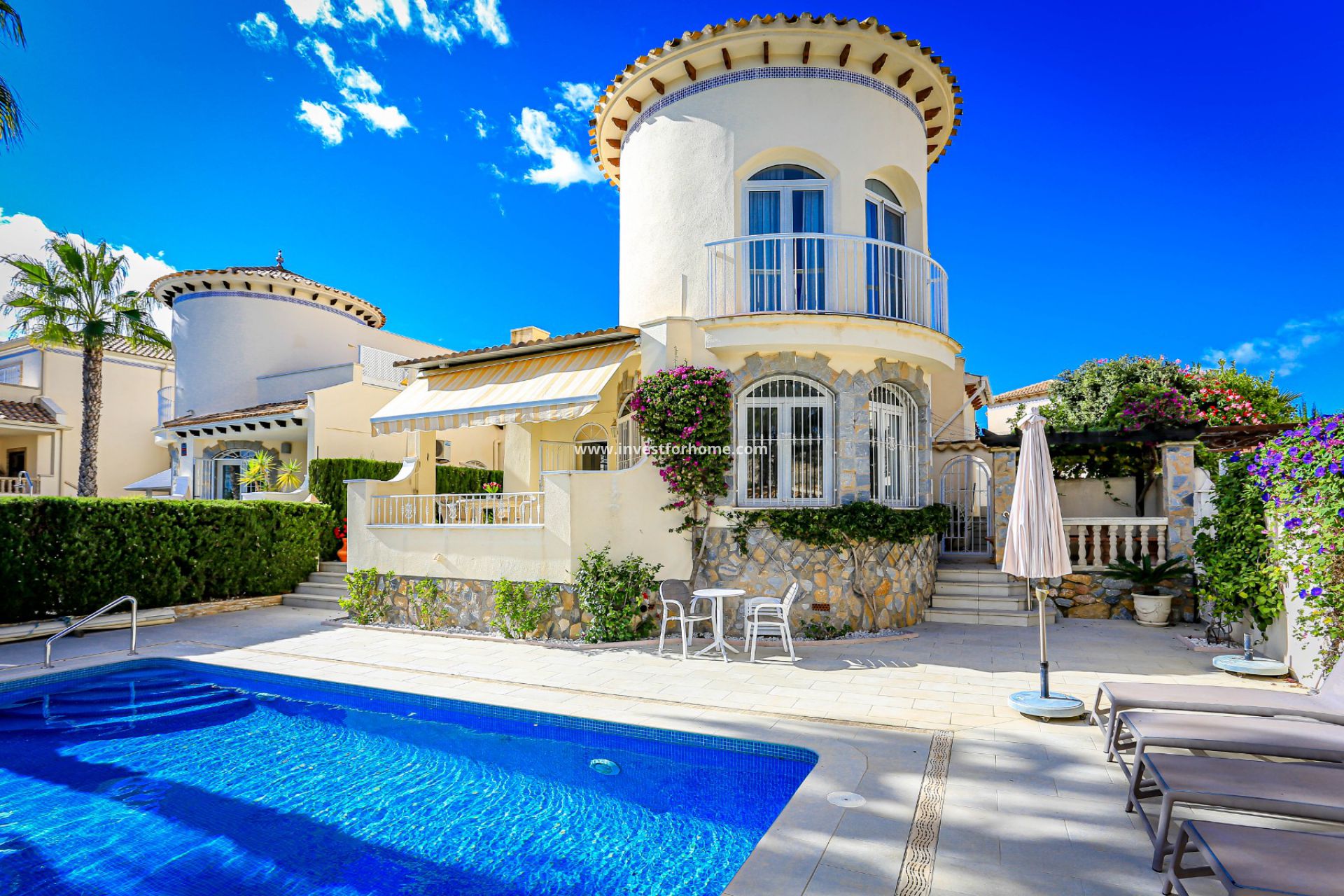 Fantastic Mediterranean style villa for sale on the Golf Resort of Las Ramblas. The house has a large green plot with a private heated swimming pool. It was built in 2002 on a plot of 380 m2. It has been designed with the most prestigious materials and fully equipped to offer exceptional comfort to live there all year round or to spend a family vacation in an ideal setting. Unique house overlooking the lake and the Golf de Las Ramblas while being sheltered from golfers' stray balls. Very few overlooked, the heated and lighted salt water swimming pool faces south as well as an outdoor shower with hot water. All the conditions are met to enjoy this beautiful outdoor space all year round. It also has a large garage widened to measure so as to park a large car and to have a tool space.