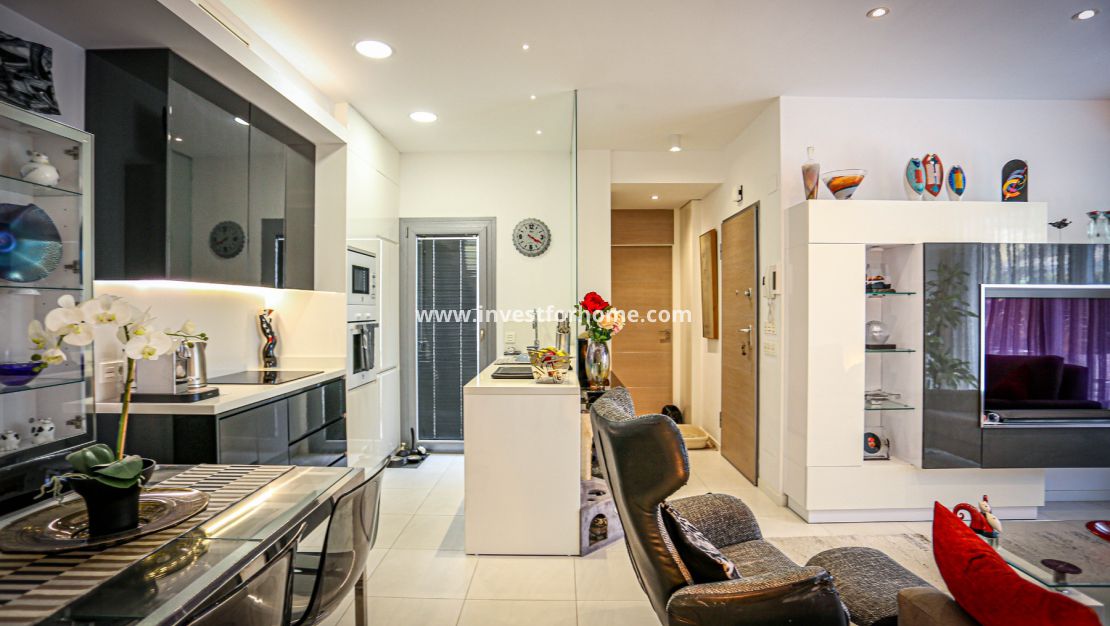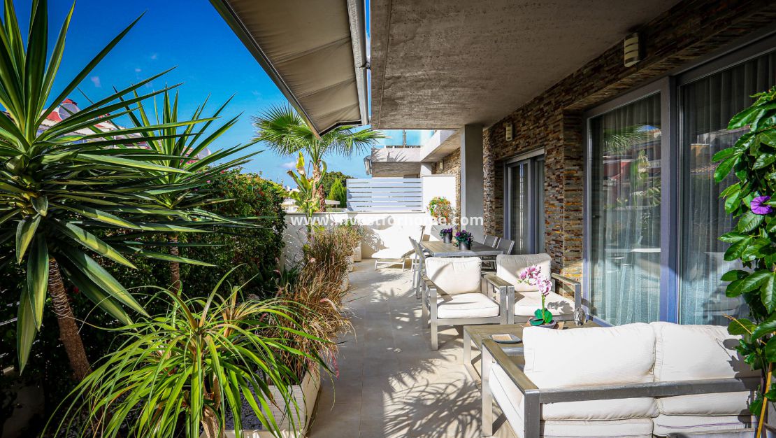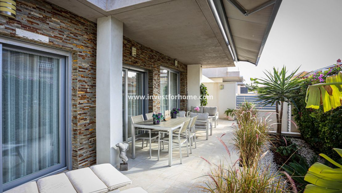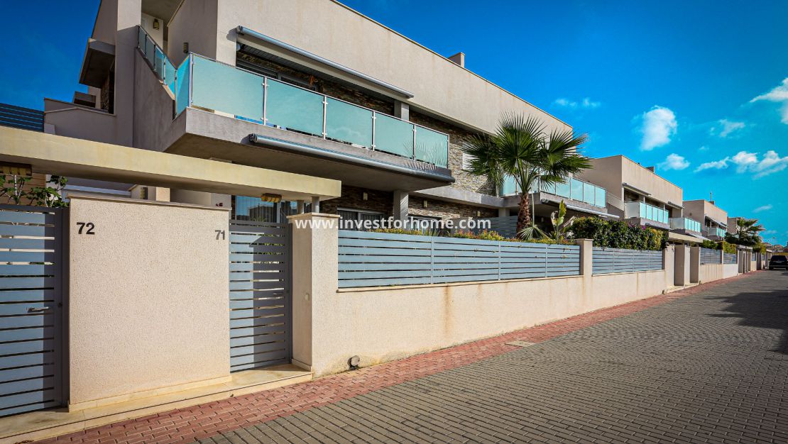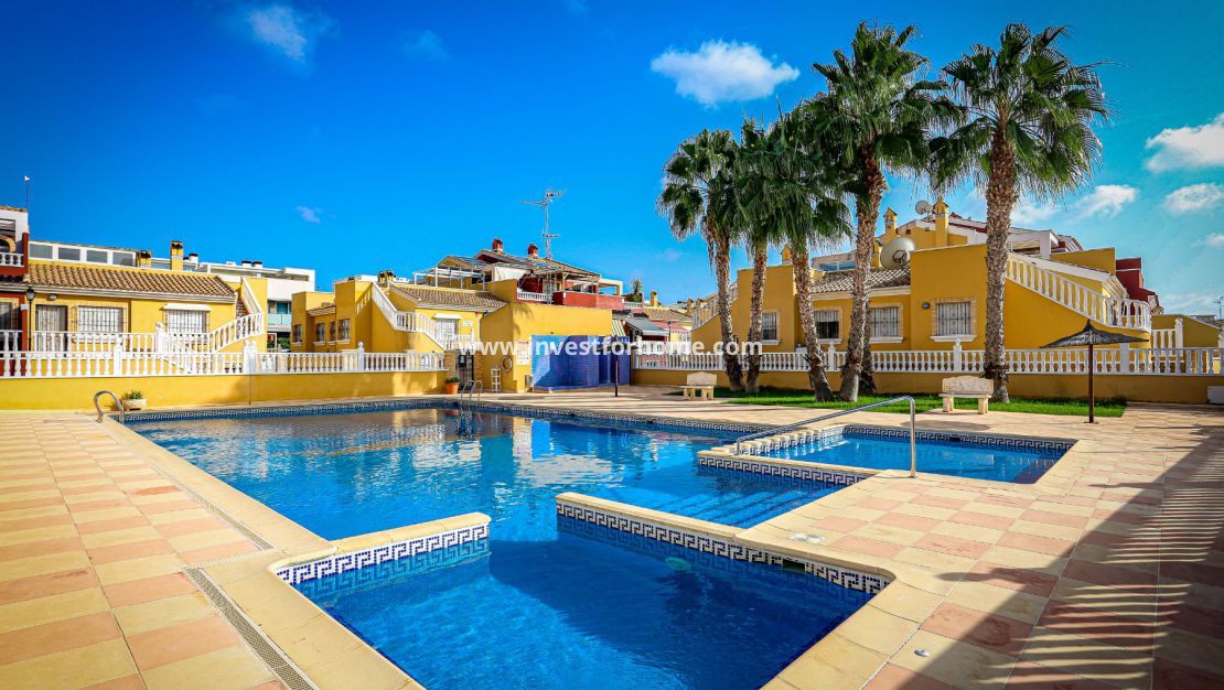 We welcome you to this beautiful house in Torrevieja, in the Sun Lake 2 urbanization. It is located on the ground floor and has a large, very private terrace of 31 m2 where you can find peace and rest. On this terrace you can sunbathe, rest, eat, etc... The urbanization is located a few meters from the Las Culturas school and the institute.