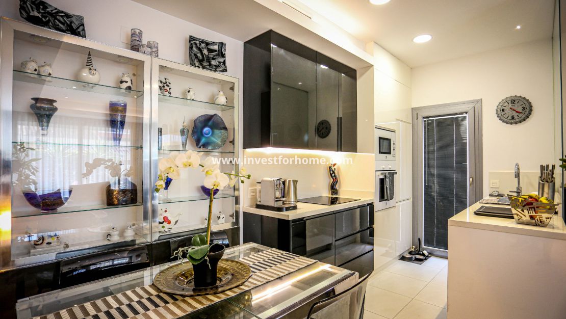 From the living room we will see the open and very modern kitchen of this house. Behind the kitchen we have a pantry.