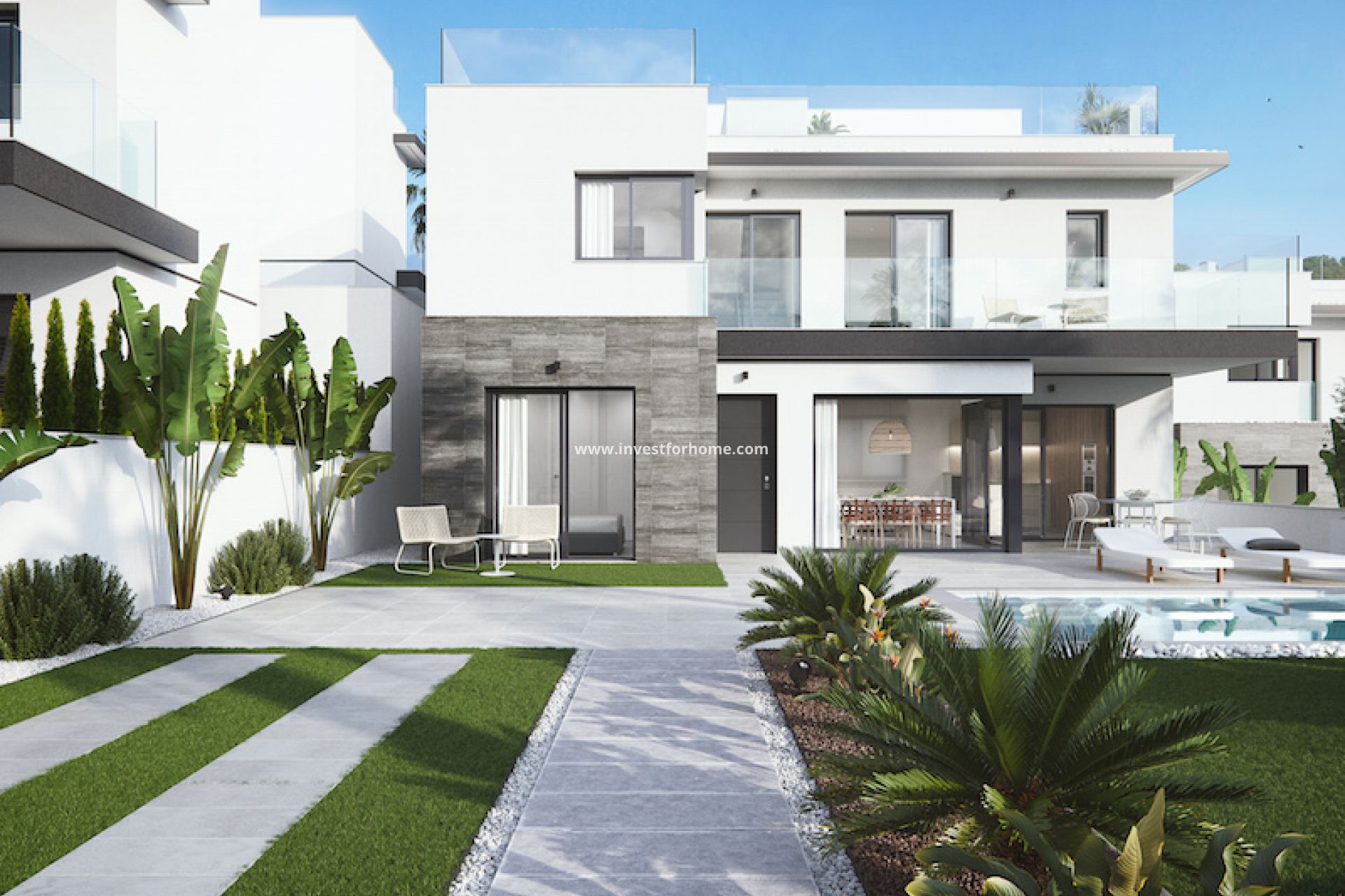 Located next in San Miguel de Salinas, with a privileged natural environment, and excellent views. These villas puts at your disposal three models of independent villas, with 3 bedrooms and 3 bathrooms . You can choose between villas on one or two floors, with or without basement, all with excellent qualities. In addition, the villas have a private pool and solarium.