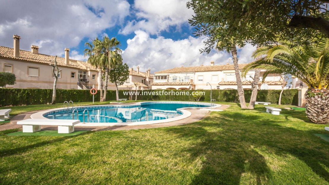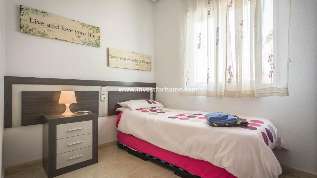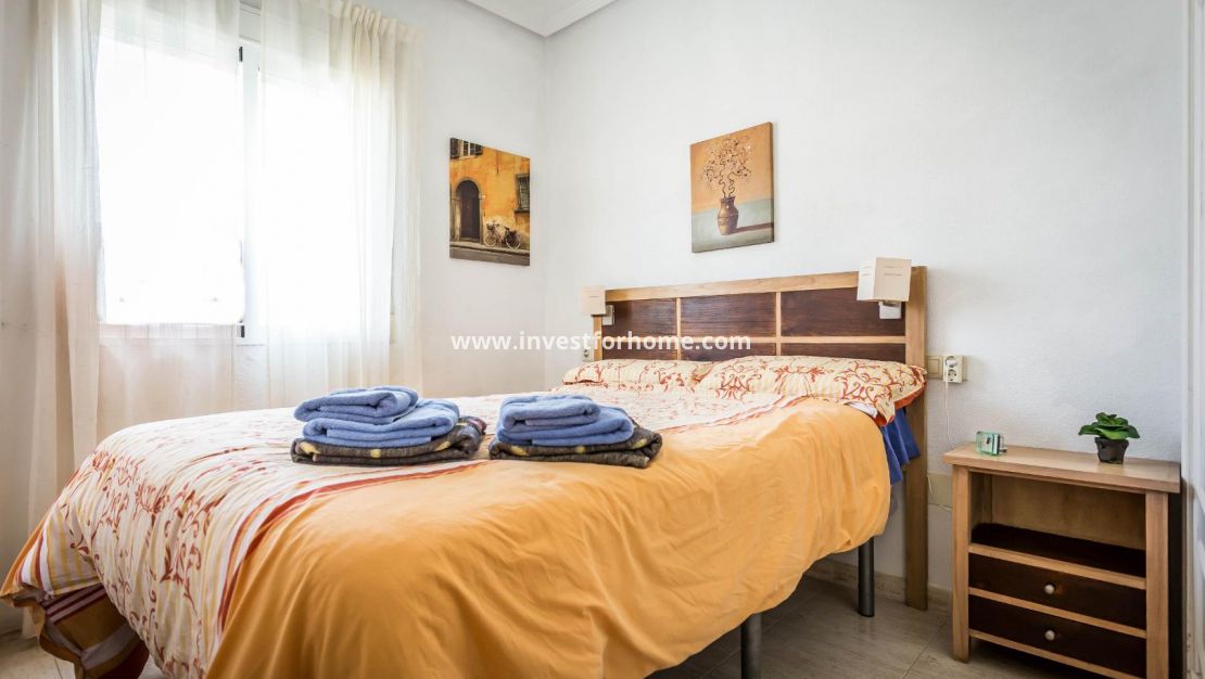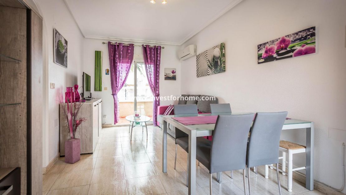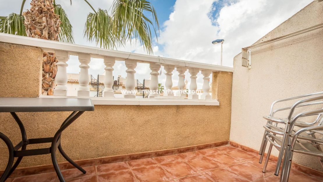 Lovely 2 bed 1 bath top floor apartment/Bungalow located in the residence of Las Margaritas, Torrevieja. The property is in good condition with a nice south facing balcony.The apartment is sold furnished with furniture and white goods. The residence is gated and boasts of a large pool and garden area . Close to Schools, Sea, Shops, Café, and Restaurants.