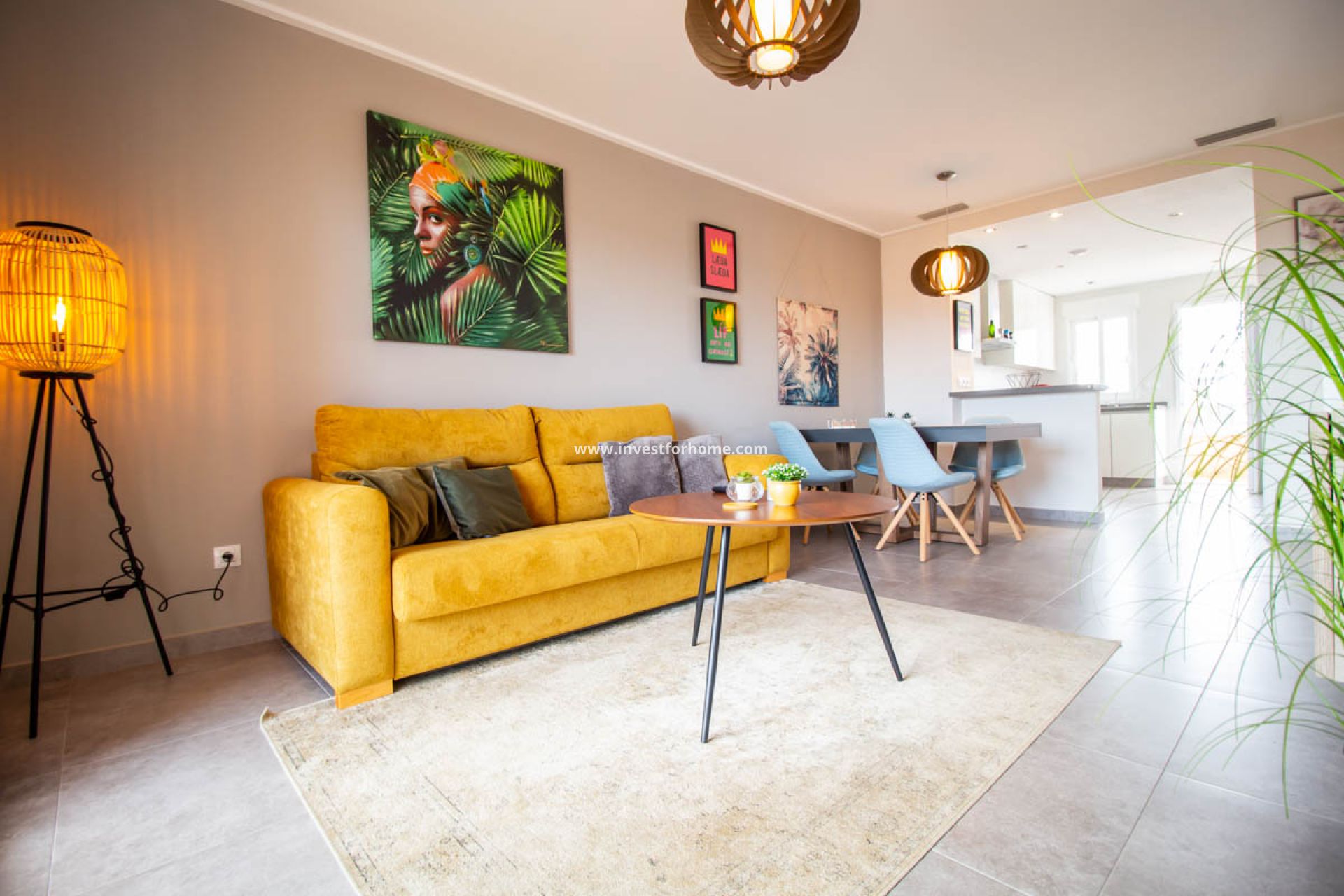 Kliv in i ett vackert designat och fullt möblerat vardagsrum som uppfyller alla dina behov. Interiören är smakfullt inredd och kombinerar stil och funktionalitet för att skapa en varm och välkomnande atmosfär. Den genomtänkta layouten säkerställer optimal användning av utrymmet, vilket gör den perfekt för avkoppling och underhållning.