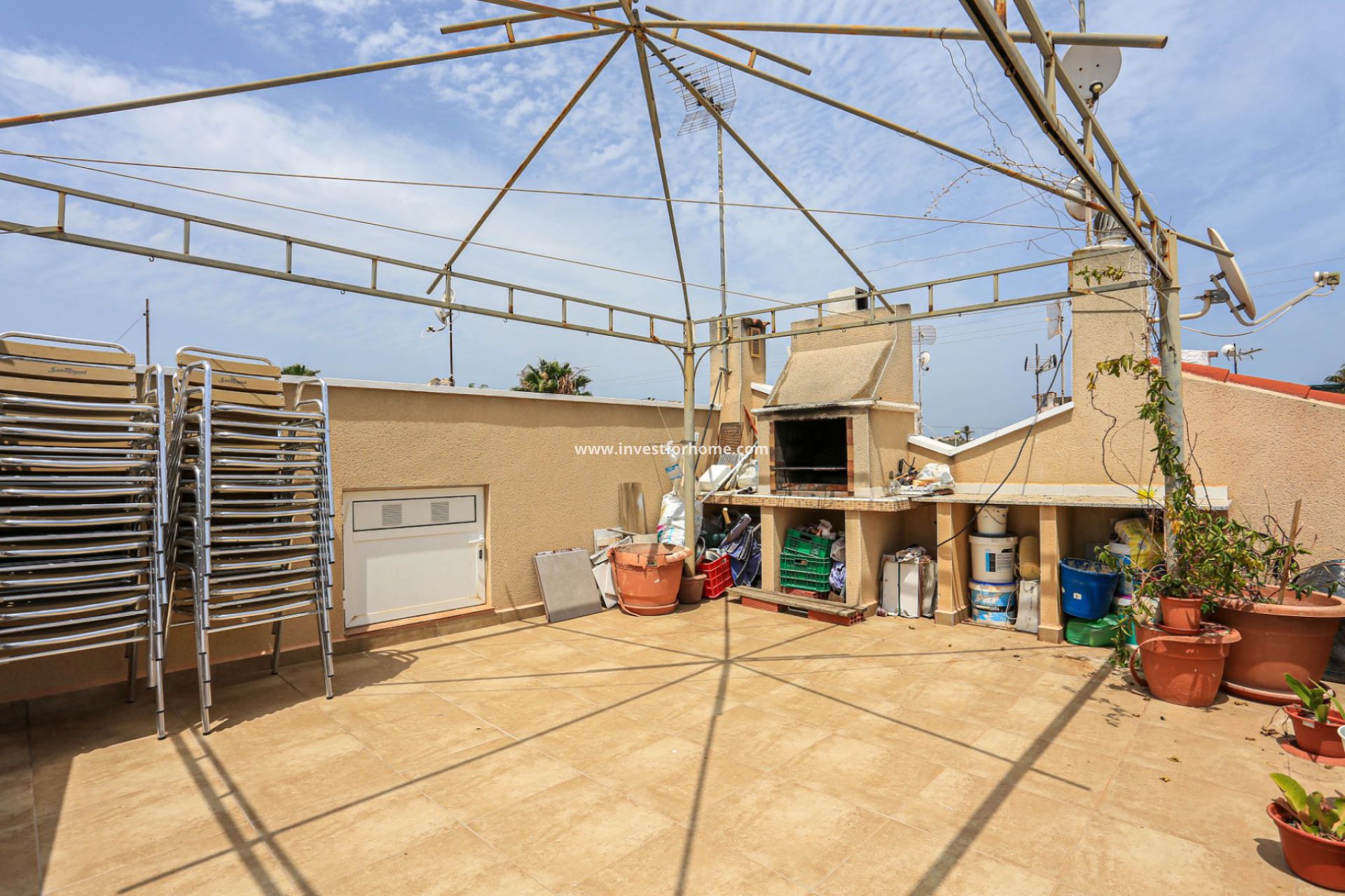 En av höjdpunkterna i denna fastighet är den stora terrassen, där du kan njuta av solen, ta emot gäster eller äta utomhus. Takterrassen erbjuder en extra tillflyktsort utomhus, med panoramautsikt över det omgivande området och en idealisk plats att njuta av medelhavsklimatet.
