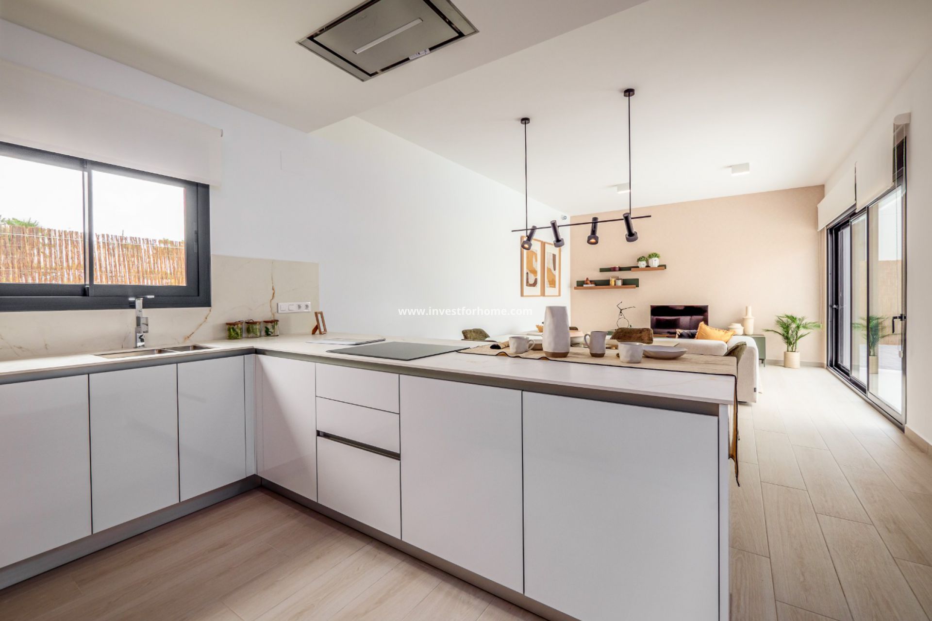 Dessa villor, som består av tre generösa sovrum och två elegant inredda badrum, är lämpliga för både familjer och individer, och erbjuder gott om utrymme för komfort och avskildhet. Den öppna planlösningen skapar ett smidigt flöde mellan vardagsrum, matsal och kök, vilket skapar en rymlig och välkomnande atmosfär. Naturligt ljus strömmar in i interiören genom stora fönster, förstärker känslan av lätthet och förbinder interiören med de natursköna omgivningarna.
