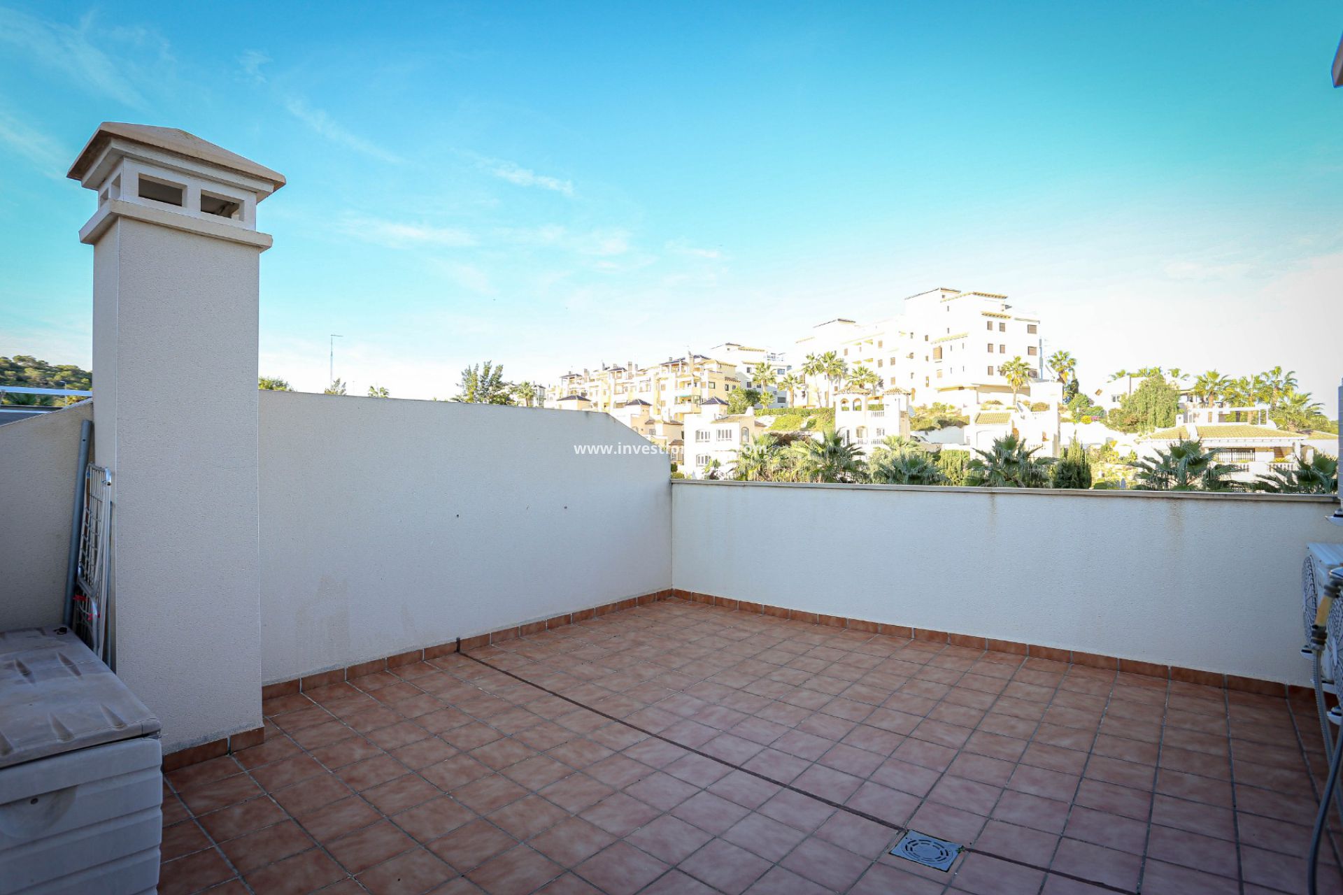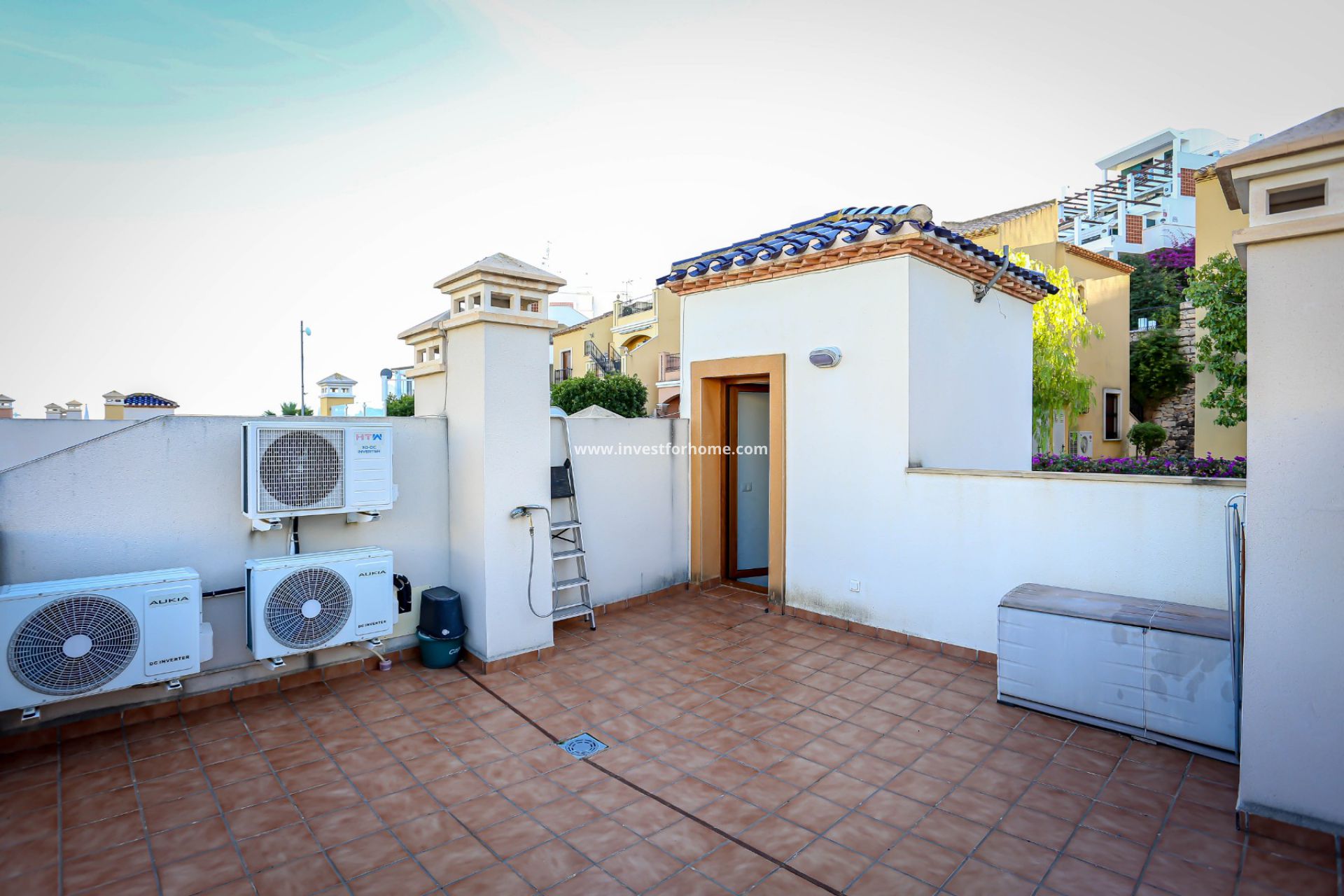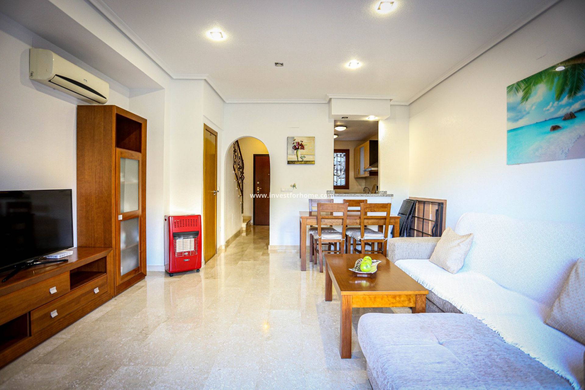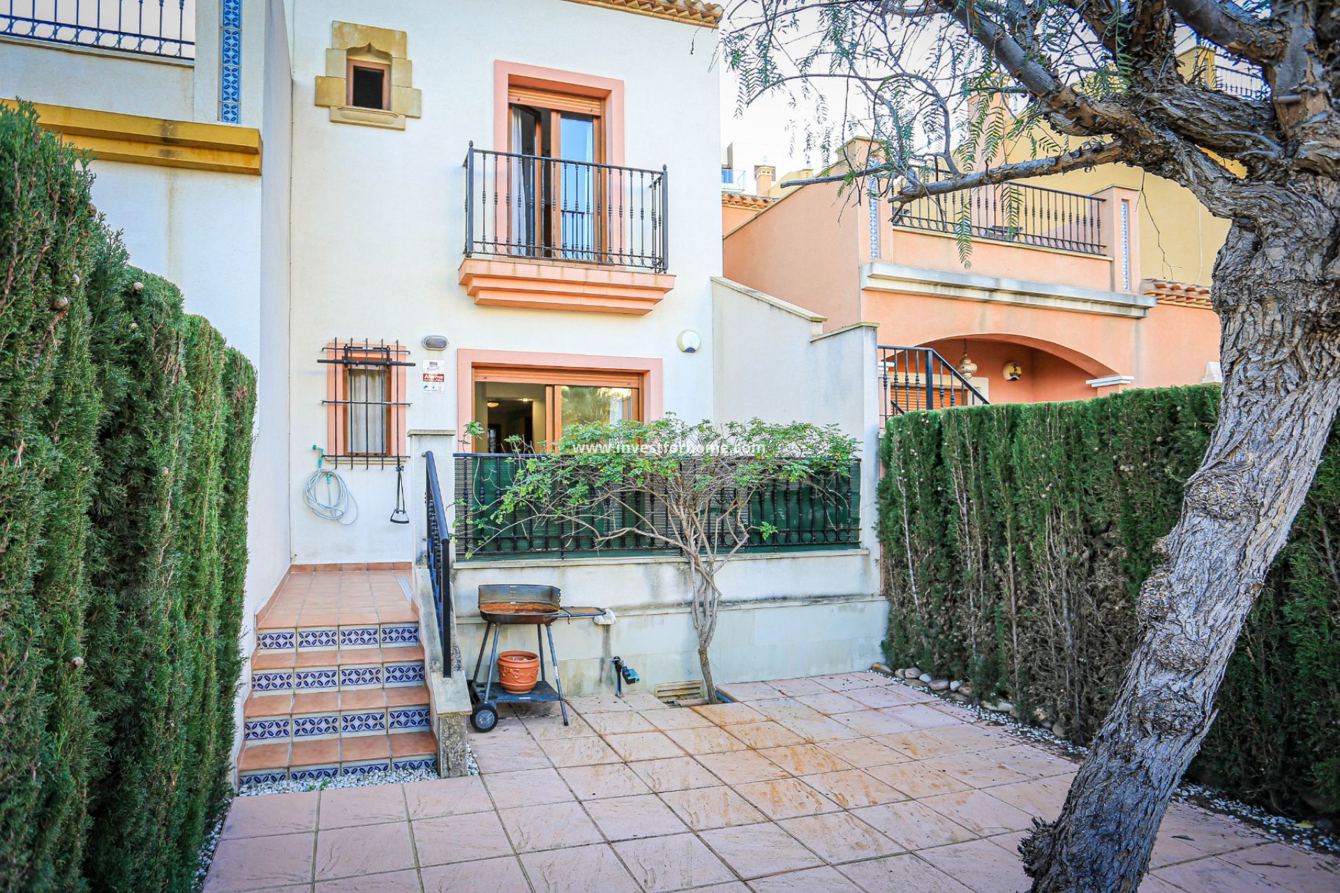 Fantastiskt parhus på La Rambla de Campoamor, mycket nära Las Ramblas golfbana. Detta hus ligger i en privat urbanisering med en stor gemensam pool.