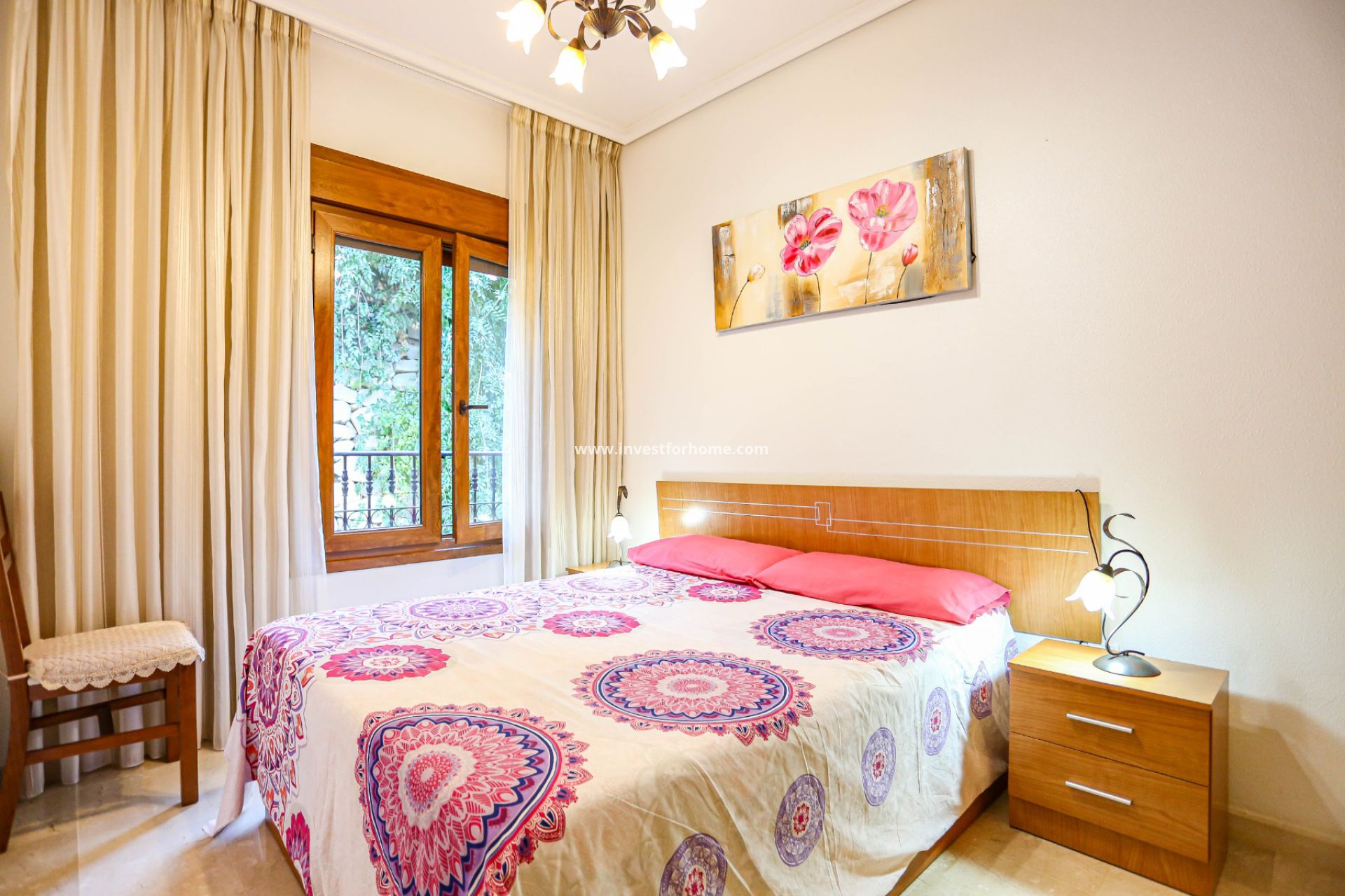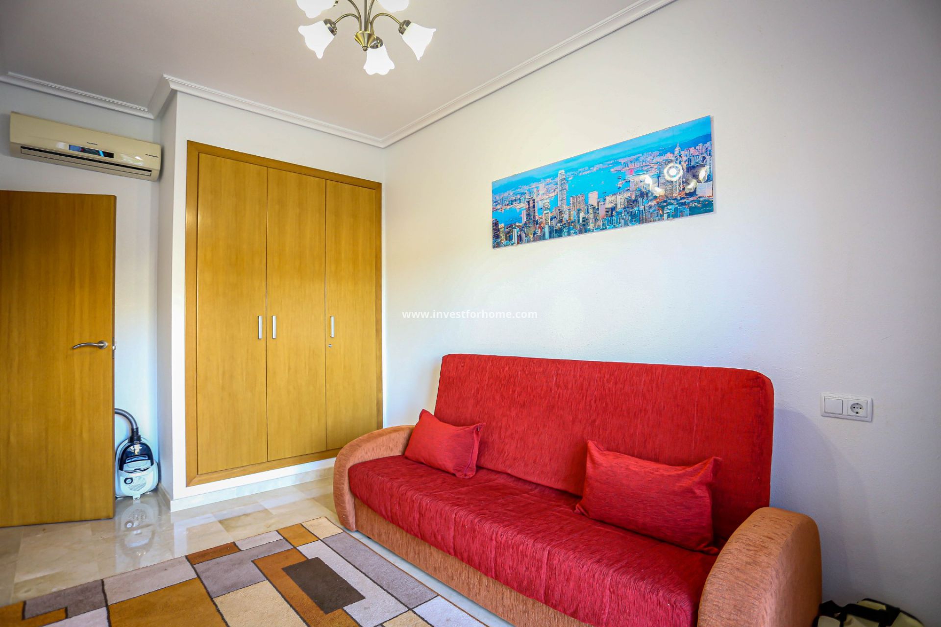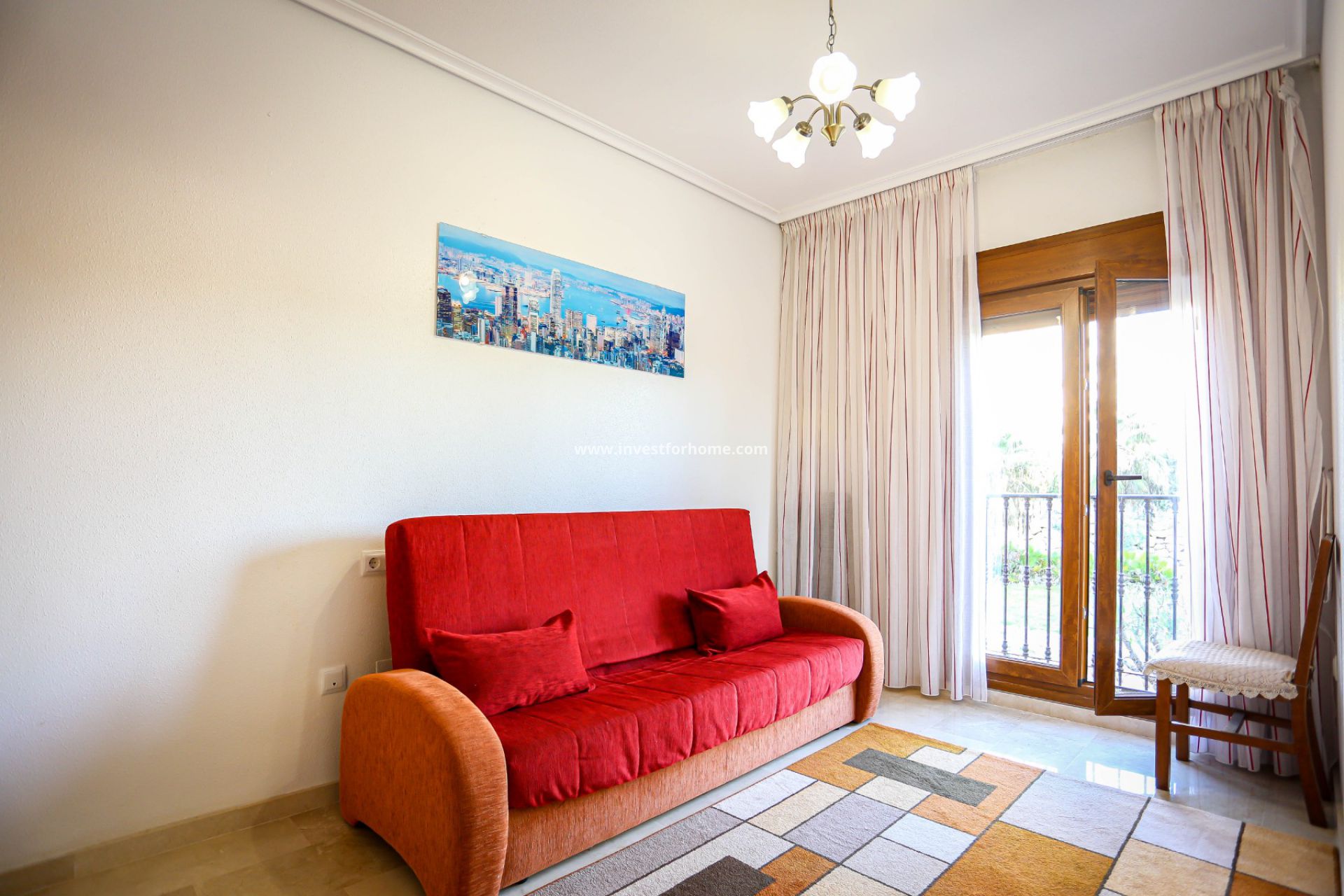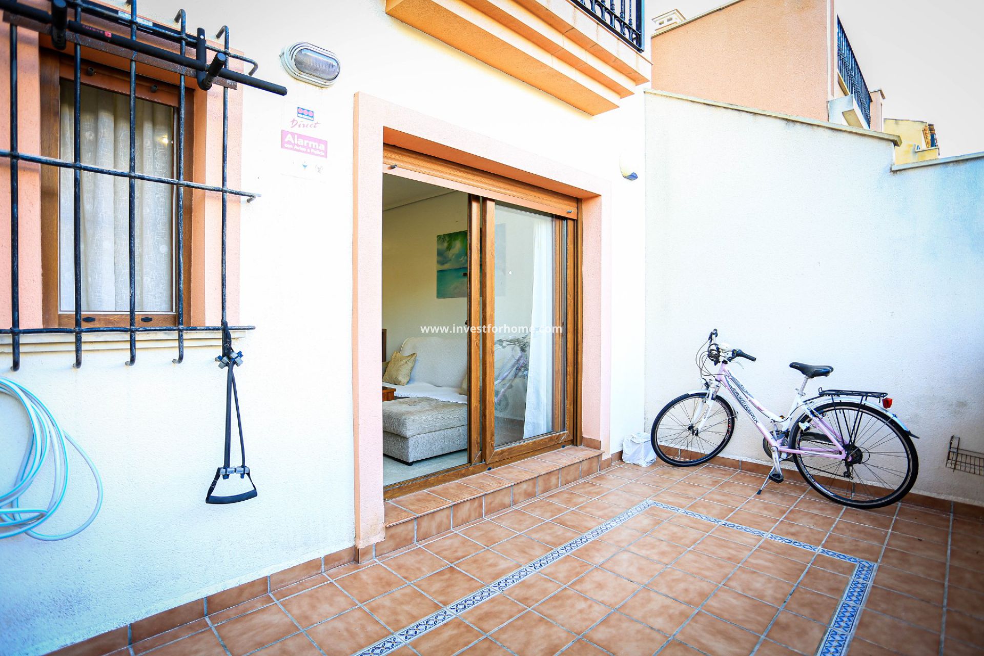 Fantastiskt parhus på La Rambla de Campoamor, mycket nära Las Ramblas golfbana. Detta hus ligger i en privat urbanisering med en stor gemensam pool.
