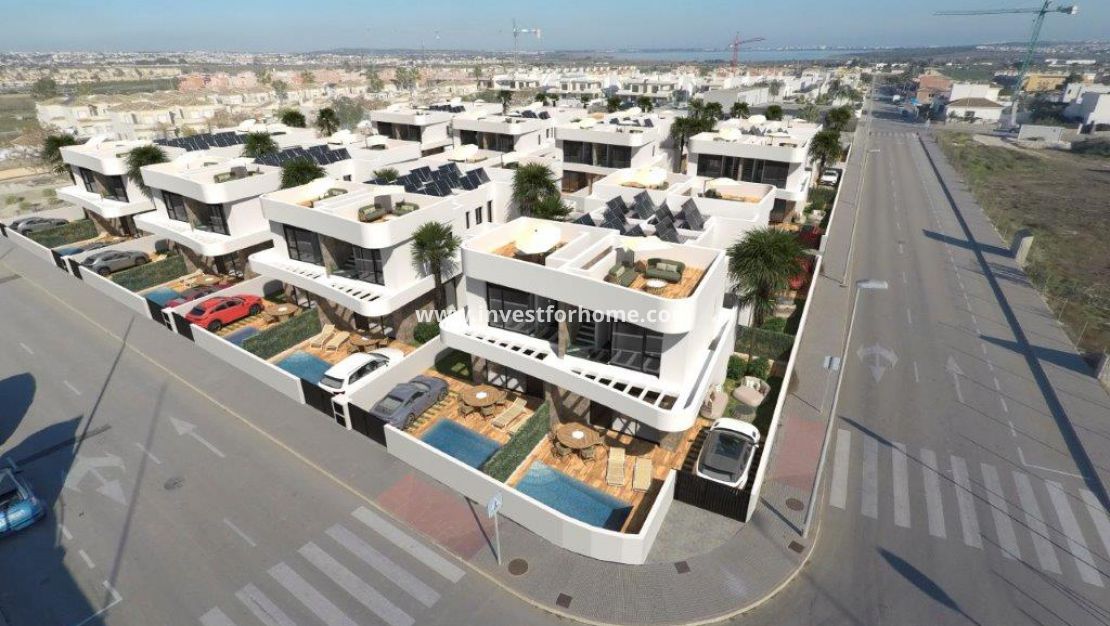 Välkommen till vår vackra nya utveckling av parhus, belägna i det eftertraktade området La Herrada i Los Montesinos. Dessa utsökta hem erbjuder den perfekta blandningen av modern design, rymliga interiörer och ett utmärkt läge, vilket gör dem till ett idealiskt val för ett bekvämt boende.
