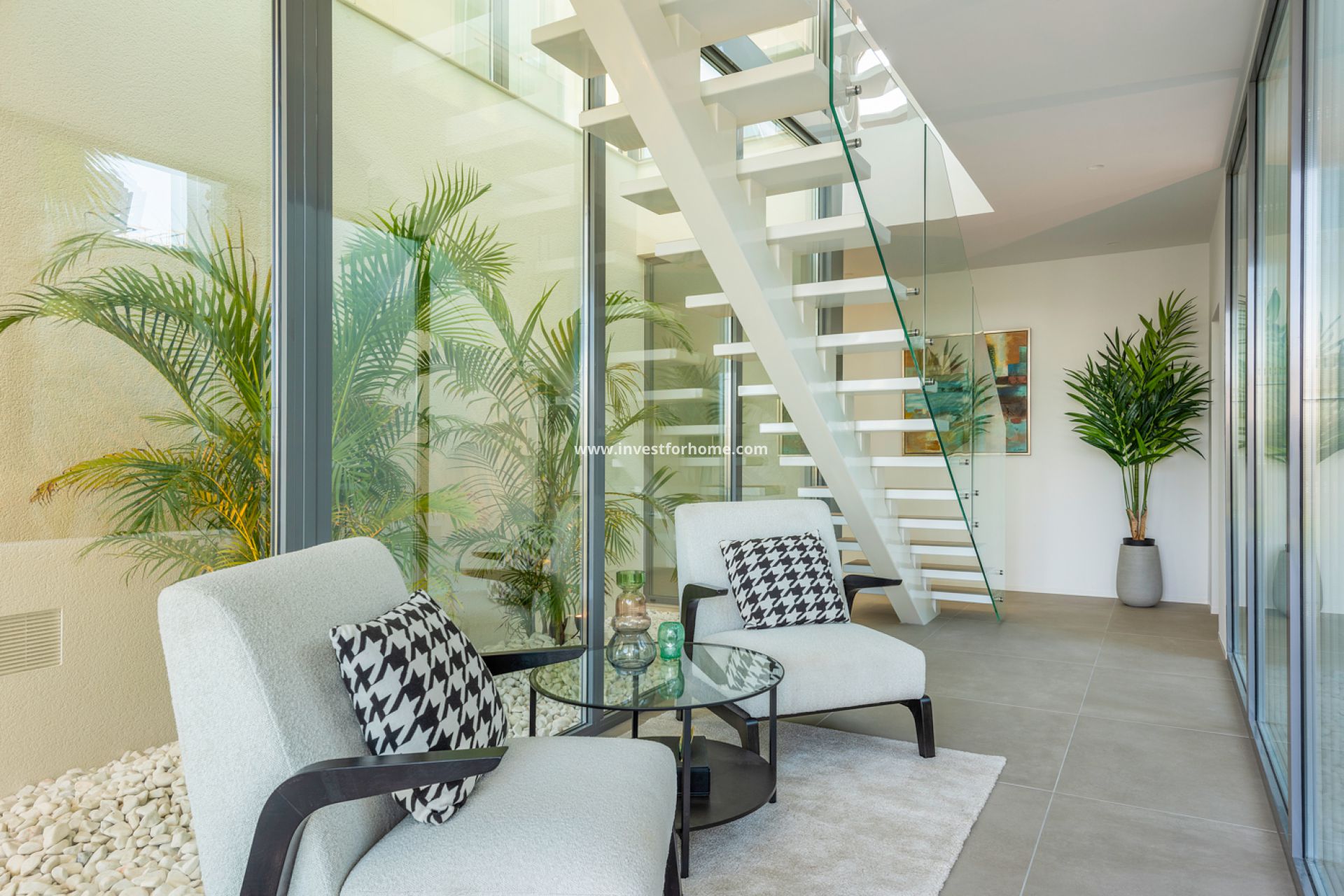 Denna villa erbjuder tillgång till en värld av elitbekvämligheter. Invånarna kan njuta av fördelarna med en Racquet Club, ett lyxigt klubbhus och exklusiv tillgång till Campoamor Beach Club, vilket tar livsstilen till extraordinära höjder.