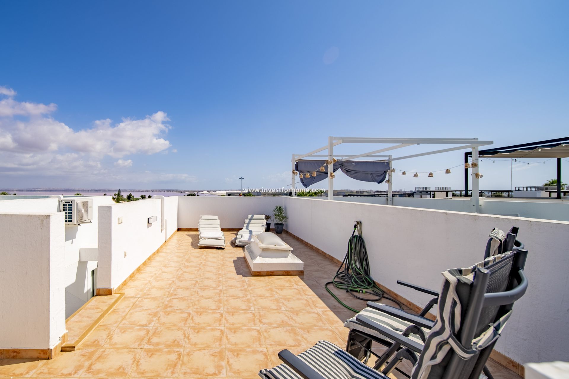 Parhus med utsikt över pool och saltsjö i Los Altos, Torrevieja. Beläget i ett lugnt och välförbundet bostadsområde erbjuder detta parhus i Los Altos 3 sovrum, 2 badrum och en byggyta på 115 m² på en tomt på 100 m². Sydläge, med terrass, balkong, förråd och parkeringsplats. Bostaden är i gott skick och har inbyggda garderober, individuell uppvärmning med värmepump och utvändig tillgång anpassad för personer med nedsatt rörlighet. Från bostaden har man fri utsikt över den gemensamma poolen och Torreviejas rosa saltsjö. Endast 2 minuter från Torrevieja sjukhus och 5 minuter från stormarknader, barer, restauranger och stränder. Viktiga egenskaper: 3 sovrum och 2 badrum 115 m² byggyta 100 m² tomt Sydläge Terrass och balkong Gott skick Inbyggda garderober Förråd Parkeringsplats Individuell uppvärmning med värmepump Anpassad för personer med nedsatt rörlighet Byggår: 2018 Förening: Gemensam pool Trädgårdsområde Läge: 2 min till Torrevieja sjukhus 5 min till stormarknader, barer och restauranger 5 min med bil till stranden