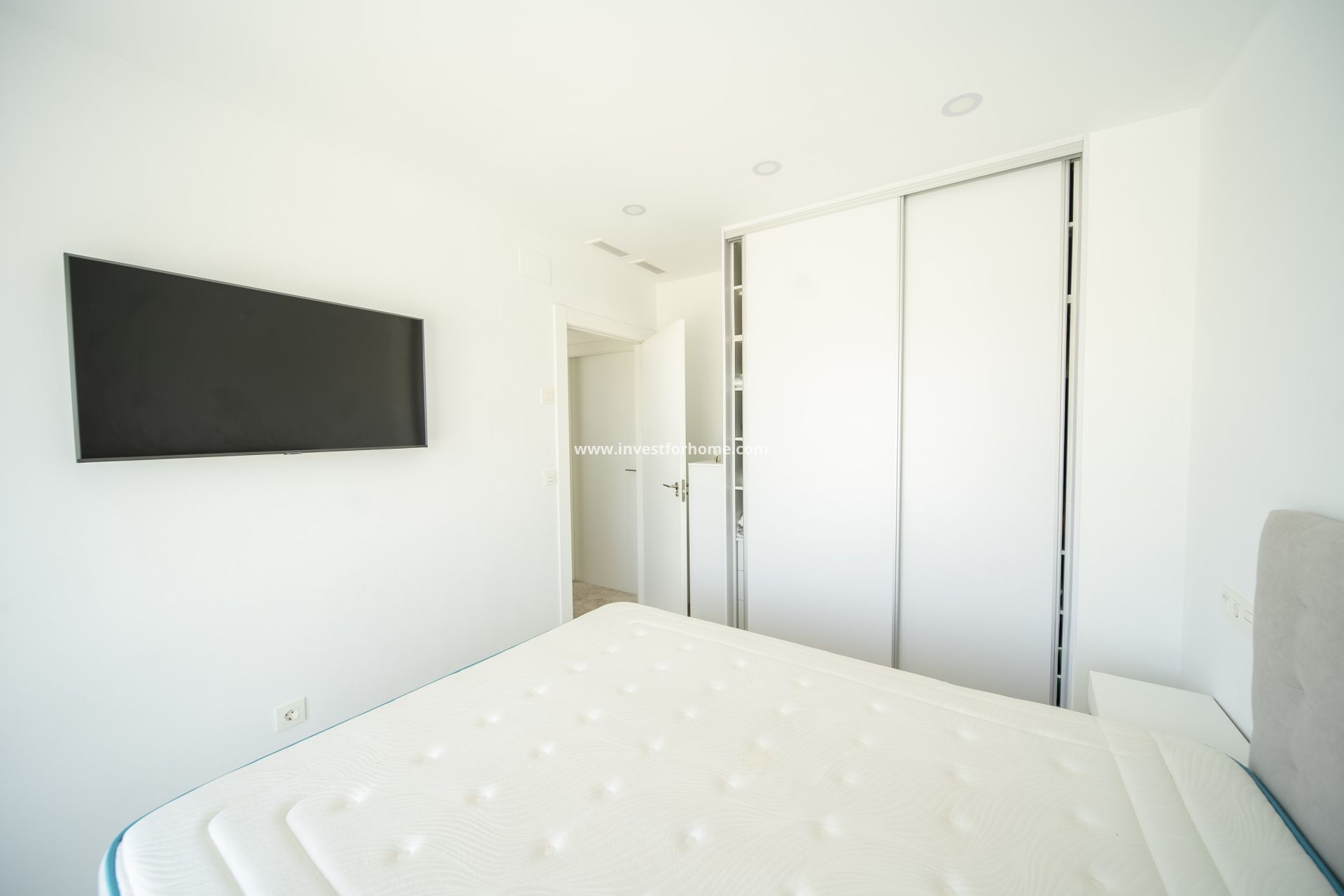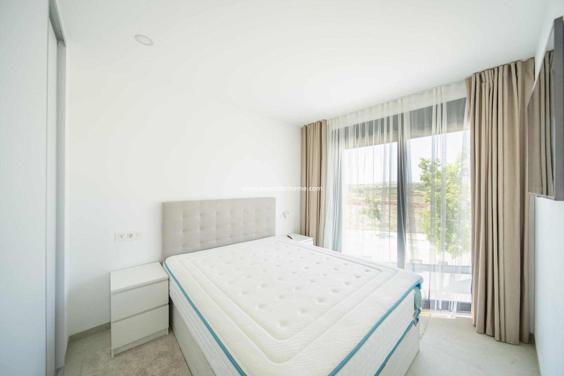 Modern inflyttningsklar villa i Benijófar – Nyproduktion 2024. Redo att njuta av Medelhavslivet utan krångel? Denna nybyggda villa i Benijófar säljs fullt möblerad och utrustad – perfekt för dig som vill flytta permanent, investera eller bara fly från kylan. Byggd 2024 och utformad med modern arkitektur och hög komfort. Allt ingår: möbler, vitvaror, luftkonditionering, larmsystem, kameror och rörelsesensorer – det är bara att packa väskan och flytta in. Huvudegenskaper: Boyta: 110 m² Privat tomt på 150 m² med parkeringsplats, trädgård, grillhörna och möblerad terrass 2 sovrum med inbyggda garderober 2 stilrena badrum, ett med dusch Öppen planlösning mellan kök och vardagsrum med utsikt över poolen Terrass med infällbar markis och direkt tillgång till privat takterrass (solarium) Varför Benijófar? Benijófar är en charmig och växande spansk småstad på Costa Blanca södra, bara 10 minuter från stränderna i Guardamar och 30 minuter från Alicantes flygplats. Här njuter du av sol året runt, ett internationellt samhälle och lugn bykänsla – den perfekta balansen mellan genuin spansk atmosfär och moderna bekvämligheter. Oavsett om du söker en permanent bostad, fritidshus eller investering för uthyrning – denna fastighet har allt du behöver.