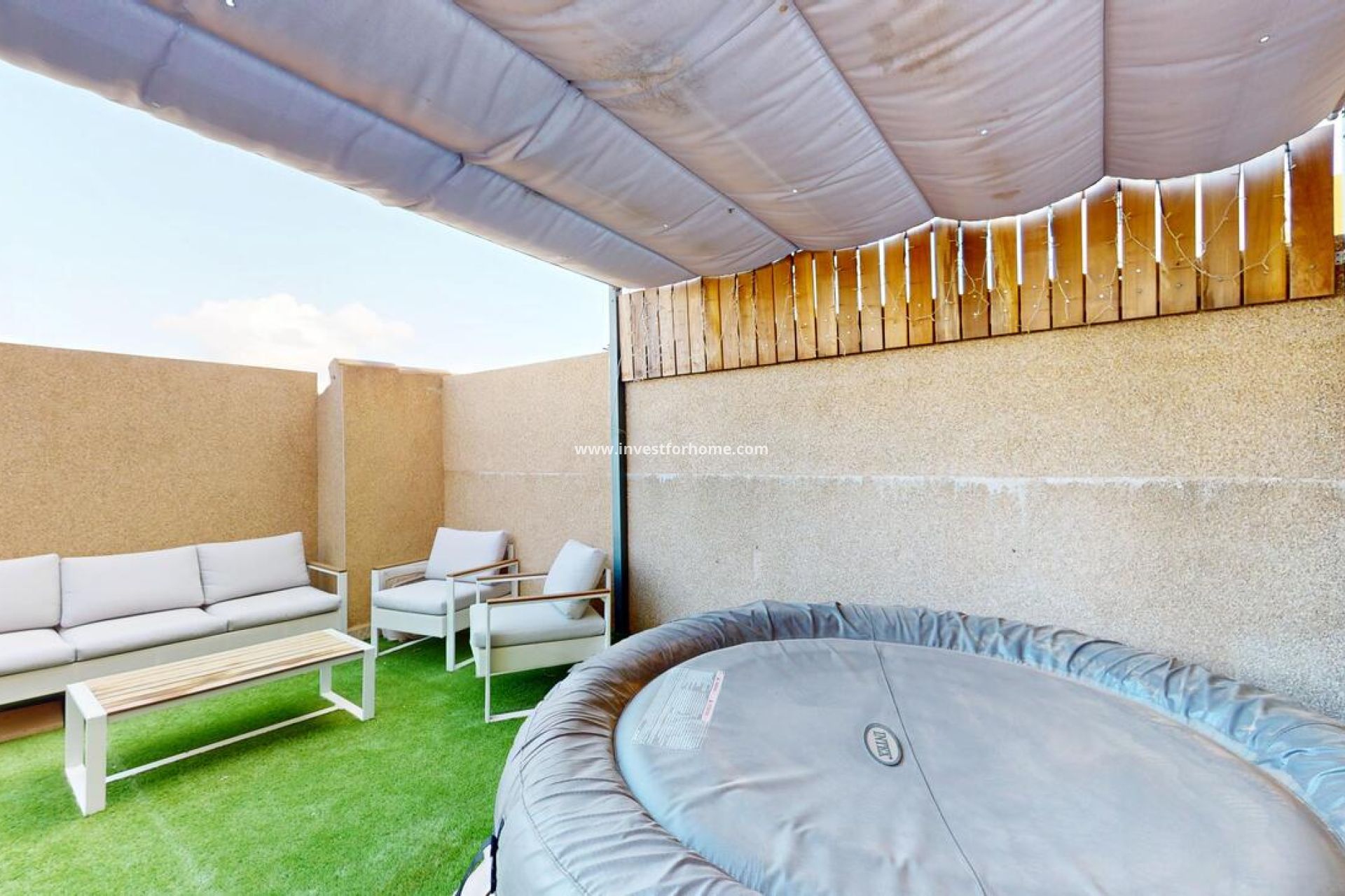 Charmig lägenhet på bottenvåningen med stor terrass Costa Blanca SydDenna mysiga lägenhet i Torrevieja (Costa Blanca Syd) är den perfekta platsen för att njuta av sol, hav och en avslappnad livsstil. Lägenheten ligger i ett bostadsområde med gemensam pool och erbjuder en kombination av komfort, utomhusutrymme och ett bekvämt läge.Egenskaper:Boendeyta: 63,68 m² (enligt lagfarten)Sovrum: 2 rymliga sovrumBadrum: 1Terrasser: framsida ca 8 m² (österläge) + baksida ca 43 m² (västerläge)Våning: bottenvåning (litet hus med endast 2 våningar ovanför)Byggår: 2003Gemensam pool i bostadsområdetParkering: begränsat antal platser inom komplexet (ej tilldelade) + ytterligare parkering på bakgatanGemensamma kostnader: endast 400/årIBI (fastighetsskatt): 255,12/årPlanlösningen är praktisk med ett ljust vardagsrum, kök, 2 sovrum och badrum. Det absoluta pluset är de två terrasserna: en mysig östra terrass för morgonkaffe och en stor västra terrass på inte mindre än 43 m² för att fullt ut kunna njuta av eftermiddags- och kvällssolen.Tack vare det bekväma läget har du kort avstånd till butiker, restauranger, stränder och alla nödvändiga bekvämligheter. Perfekt som semesterbostad, investering eller permanent bostad under den spanska solen.
