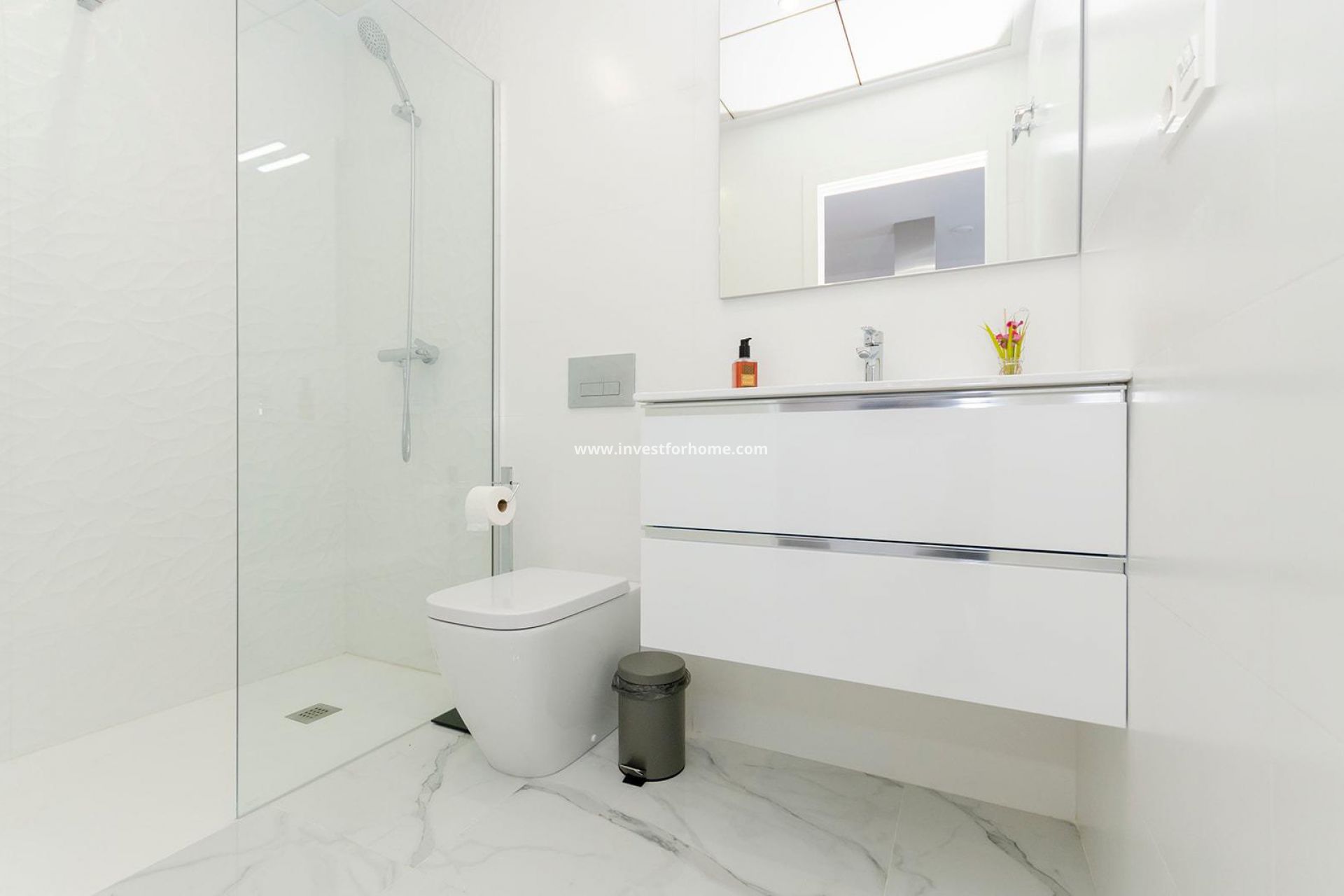 NYBYGGDA VILLOR I TORREVIEJA Nybyggda villor i Torreta, Torrevieja. Vackra nybyggda villor byggda över 2 våningar med 3 sovrum, 3 badrum, öppet kök med vardagsrumsdel, inbyggda garderober, terrass och privat solarium i vissa enheter. Villa comming med har trädgård med privat pool och parkeringsplats på tomten. Torrevieja är en spansk stad i provinsen Alicante, på Costa Blanca. Den är känd för sitt typiska medelhavsklimat och sin kustlinje. Staden har strandpromenader med resorter längs sina sandstränder. Det lilla havs- och saltmuseet har utställningar om stadens fiske- och salthistoria. I inlandet finns naturparken Lagunas de La Mata-Torrevieja med stigar och två salta laguner, en rosa och den andra grön. Alicante flygplats ligger 40 minuter bort och Murcia flygplats ca 1 timme bort.