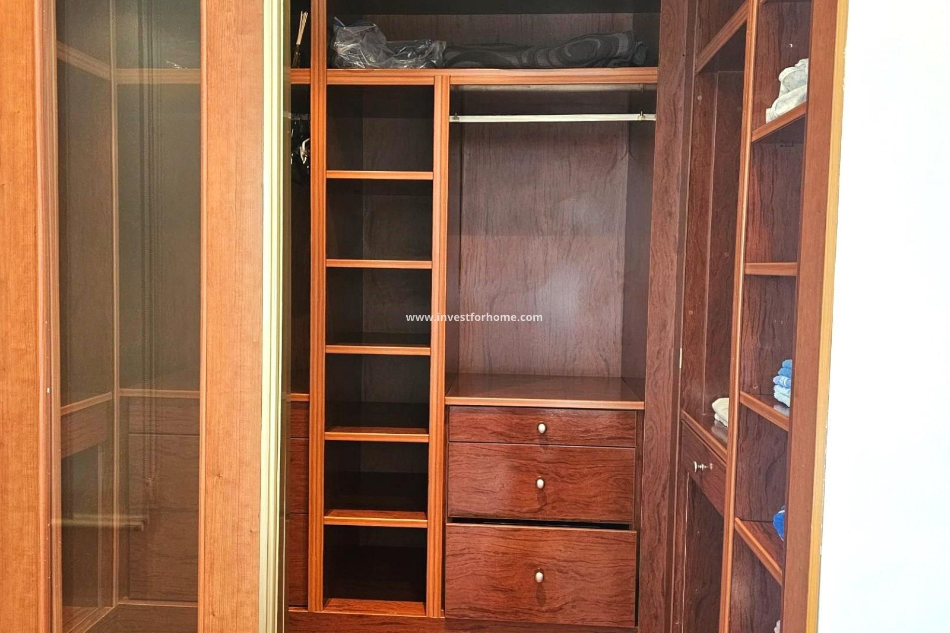 Trevlig takvåning med 2 sovrum, 2 badrum ett av dem en suite, ett stort omklädningsrum med flera garderober i sovrummet, fullt utrustat oberoende kök, vardagsrum med tillgång till terrassen på 15 m2 och juvelen i detta hus är det privata solariumet på 49 m2. Det är en mycket solig och rymlig fastighet med många möjligheter till förlängning, där du kan dela rummet till ett extra sovrum. Takvåningen är i perfekt skick för att flytta in och njuta av solen på terrassen. Alla bekvämligheter finns i närheten, såsom restauranger, stormarknader och bara 15 minuters promenad till stranden.
