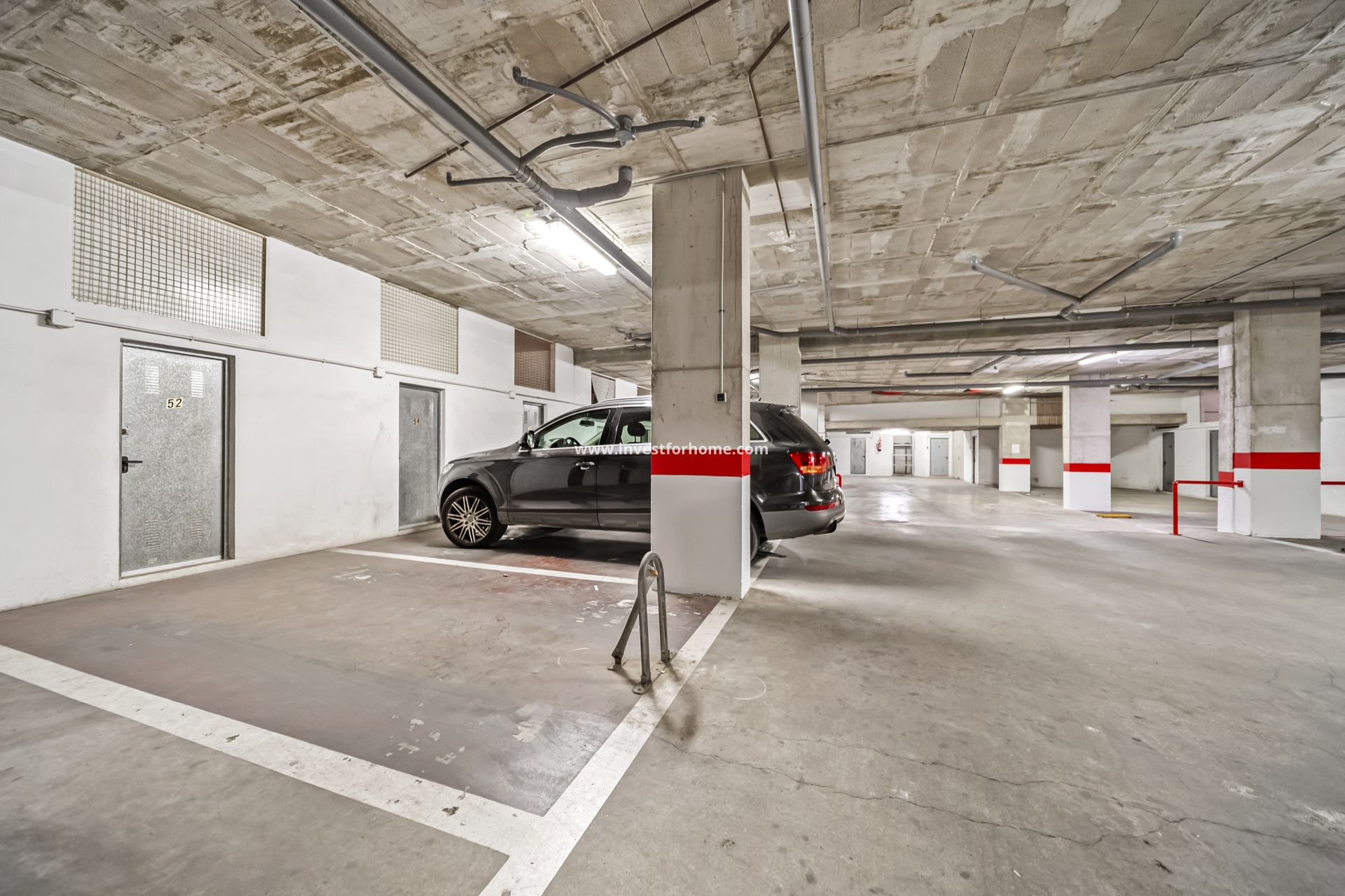 Lägenhet med gemensam pool i centrala Torrevieja. Denna lägenhet ligger på fjärde våningen i ett bostadskomplex med gemensam pool och grillplats. Den har 2 sovrum, 1 badrum och söderläge. 58 m² byggd yta och giltig turistlicens. Möjlighet att köpa garage och förråd separat. Viktiga egenskaper 2 sovrum 1 badrum 58 m² byggd yta Fjärde våningen Söderläge Gemensam pool Grillplats Turistlicens Byggnadsår: 1998 Möjlighet att köpa garage och förråd (ingår ej) Årliga kostnader Föreningsavgift: 450 € IBI: 220 € Läge 300 m till vårdcentralen 300 m till Mercadona stormarknad 500 m till barer, restauranger och butiker 900 m till Playa del Cura