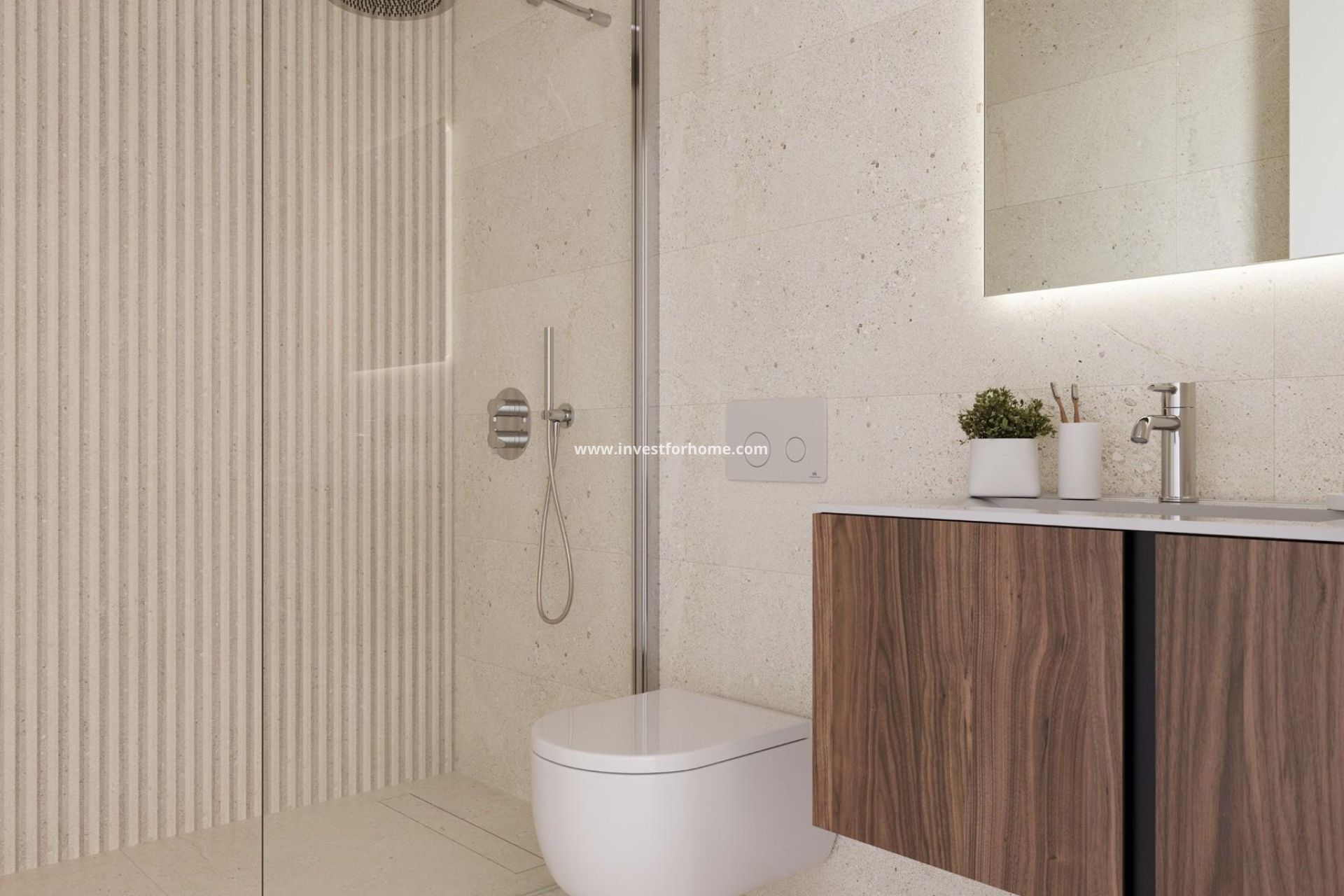 Nybyggda villor på El Alba Mediterranean Resort i Torre Pacheco Modernt boende i en växande resortmiljö Upptäck detta exklusiva nybyggnadsprojekt med endast 6 fristående och halvfristående villor belägna inom El Alba Mediterranean Resort i Torre Pacheco, Murcia. Detta framväxande bostadsområde kombinerar modern arkitektur, fritidsfaciliteter och en avslappnad medelhavslivsstil. Beläget mellan Terrazas de la Torre Golf Club och staden Roldan, erbjuder läget lugn och ro samtidigt som det ligger nära alla nödvändiga tjänster, inklusive stormarknader, restauranger, barer och banker. Moderna villor med privat utomhusyta Dessa moderna villor är fördelade på två våningar och erbjuder ett val mellan 2 eller 3 sovrum och 2 badrum. Varje bostad har ett öppet kök och vardagsrum utformat för att maximera naturligt ljus och komfort. På första våningen finns öppna terrasser som är perfekta för att njuta av det milda klimatet, medan bottenvåningen vetter mot en privat trädgård med pool. Parkering finns på varje privat tomt. Interiören är elegant och funktionell, vilket gör dessa hus perfekta för permanent boende, semesterboende eller investering. Sovrummen är utrustade med inbyggda garderober med lådor, och badrummen levereras fullt utrustade med möbler, spegel och duschväggar. Högkvalitativa specifikationer och ytbehandlingar Alla villor är byggda enligt hög standard med kvalitetsmaterial och ytbehandlingar. Köken är fullt möblerade och utrustade med vitvaror, medan Porcelanosa-ytbehandlingar används i kök, badrum och kakel, vilket ger en exklusiv känsla. Ytterligare funktioner inkluderar exteriör snickeri med termisk brytning och dubbla fönster, motoriserade fönsterluckor i sovrummen och förinstallation av luftkonditionering. Varje bostad har också en privat pool. Resortfaciliteter och lokala bekvämligheter El Alba Mediterranean Resort erbjuder ett utmärkt utbud av gemensamma faciliteter för alla åldrar. Boende kan njuta av ett klubbhus med restaurang och chill out-område, gemensam pool, bowlinghall, paddelbanor och en lekplats för barn. Ett litet kommersiellt centrum är för närvarande under utveckling inom resorten, vilket ger ytterligare bekvämlighet med butiker och tjänster nära hemmet. Utmärkt läge nära golf, stränder och flygplatser Resorten är omgiven av flera prisbelönta golfbanor, vilket gör den till ett attraktivt alternativ för golfentusiaster. Stränderna i Mar Menor ligger cirka 15 km bort och erbjuder lugnt vatten och ett brett utbud av vattensporter. Murcias internationella flygplats ligger bara 20 km bort, medan Cartagena ligger cirka 30 km och Murcia stad cirka 40 km. Alicantes flygplats ligger cirka 90 km bort. Enkel tillgång till motorvägsnätet möjliggör snabba och bekväma resor i hela regionen. Ditt nya hem på Costa Calida Dessa nybyggda villor i El Alba Mediterranean Resort erbjuder utmärkt värde, modern design och ett strategiskt läge nära golf, stränder och service. Kontakta oss idag för att få mer information eller för att boka en visning och säkra din plats i detta spännande nya projekt i Torre Pacheco.