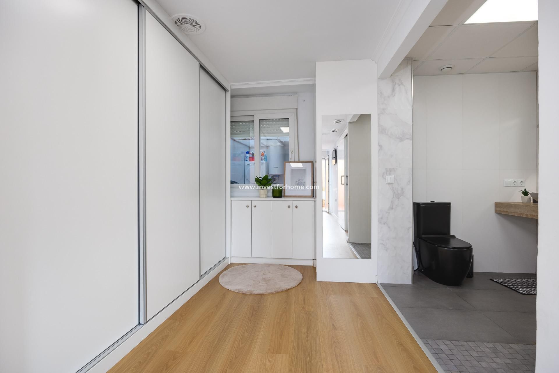 Upptäck denna magnifika och rymliga lägenhet, belägen mitt i centrala Torrevieja, med alla bekvämligheter runt hörnet och endast 700 meter från havet och den ikoniska strandpromenaden. Ett privilegierat läge för att njuta av den mediterrana livsstilen utan att kompromissa med komforten. Bostaden är totalrenoverad med material av hög kvalitet och ligger på första våningen i en byggnad med hiss. Den erbjuder en modern, funktionell och elegant planlösning utformad för maximal komfort. Vid entrén möts du av ett ljust och rymligt vardagsrum med matplats och utgång till en charmig terrass – perfekt för att njuta av en behaglig och sval atmosfär. Det fullt utrustade öppna köket med bardisk har direkt anslutning till en innergård med tvättutrymme, vilket ger extra bekvämlighet i vardagen. Lägenheten har 3 rymliga dubbelrum och 2 kompletta badrum. Master bedroom med eget badrum utmärker sig med walk-in-closet, privat badrum och utgång till en bakre terrass i söderläge, som fyller bostaden med naturligt ljus. Här kan du koppla av och njuta av det mediterrana klimatet samt dra nytta av extra förvaringsutrymme. ???? Ett sällsynt mervärde: priset inkluderar två garageplatser i samma byggnad – en verklig lyx i ett så centralt läge. En exklusiv bostad, inflyttningsklar. Missa inte denna möjlighet!
