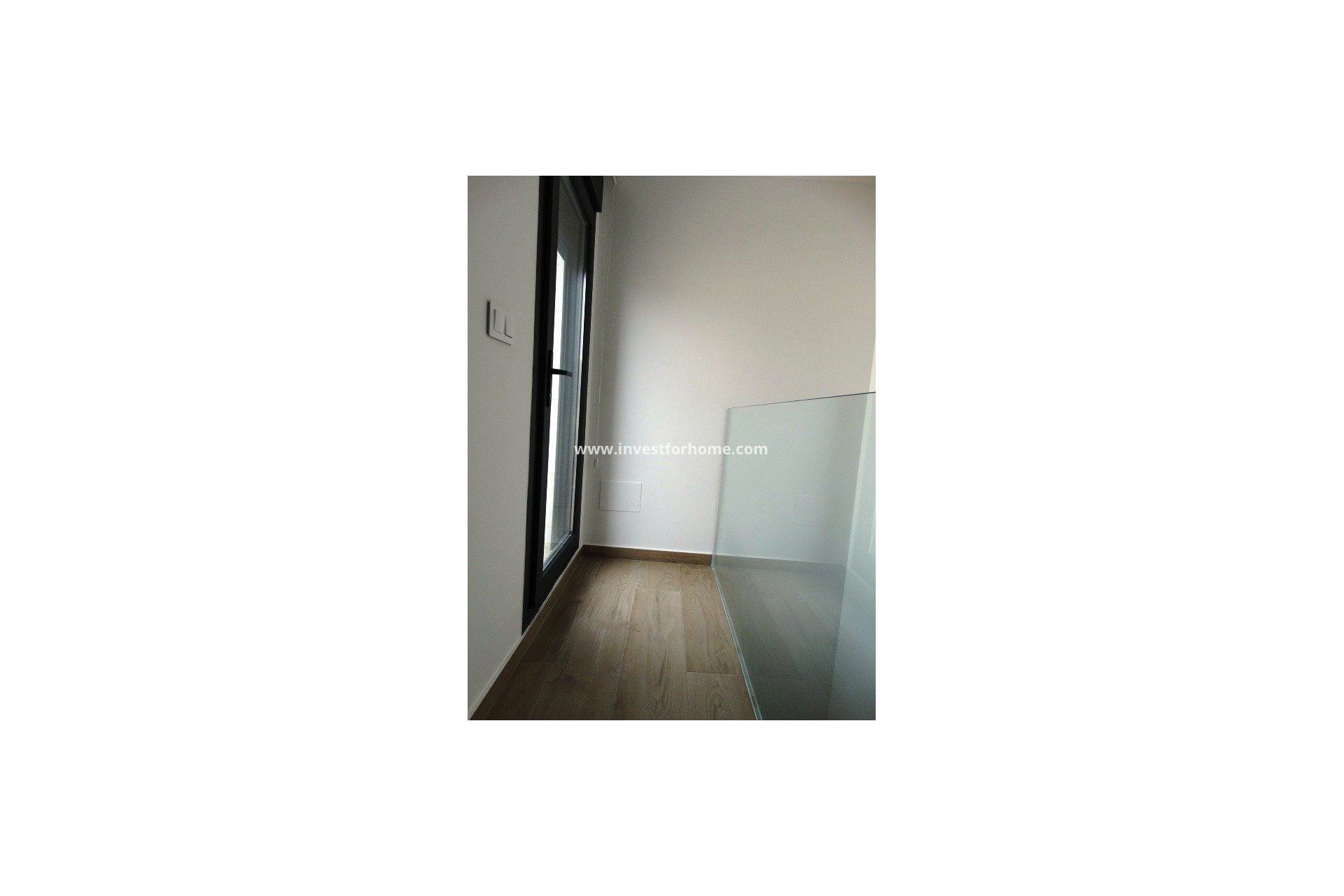 NYBYGGDA 4 PARHUS I PILAR DE LA HORADADA Nybyggda 4 parhusvillor i Pilar de la Horadada. Villor byggda på 2 våningar och har privat solarium, har 3 sovrum, 3 badrum, öppet kök med vardagsrum, trädgård med privat pool och parkeringsplats. Villor ligger några meter från alla tjänster och centrum. Pilar de la Horadada är en typisk spansk by i den sydligaste delen av Costa Blanca. På den stora huvudgatan finns stormarknader, många affärer, restauranger och barer och några vackra torg. De vackra stränderna Torre de la Horadada och Mil Palmeras med fin sandpromenad ligger bara 5 minuter bort. I Pilar de la Horadada finns också ett välutvecklat cykel- och promenadvägnät och det finns också ett stort utbud av olika sportaktiviteter. Lo Romero 18-håls golfbana ligger bara en kort bilresa från staden. Flygplatserna Corvera (Murcia) och Alicante ligger 40 respektive 55 minuter bort.