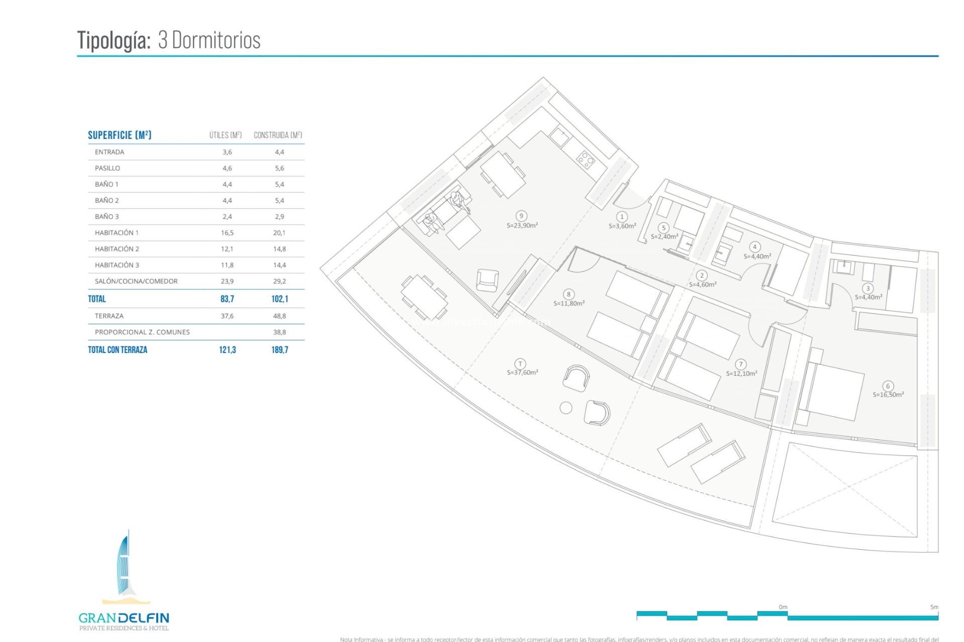 Beläget i den livliga staden Benidorm erbjuder detta bostadskomplex en unik livsupplevelse med 45 lägenheter designade för att njuta av den medelhavsmiljön. Närheten till havet, endast 100 meter bort, gör det möjligt att njuta av havsutsikten från många av bostäderna, vilket ger en avslappnande och exklusiv atmosfär. Lägenheterna finns i konfigurationer med 1 och 2 sovrum, med alternativ för 1 eller 2 badrum, anpassade till olika familje- eller personliga behov. Det privilegierade läget i Benidorm erbjuder inte bara omedelbar tillgång till stranden, utan också till ett brett utbud av tjänster och fritidsaktiviteter som kännetecknar denna berömda kuststad. UTOMHUSOMRÅDEN Utomhusområdena i detta bostadskomplex i Benidorm är designade för att maximera njutningen av det medelhavska klimatet. Endast 100 meter från havet kan de boende njuta av havsbrisen och havsutsikten från bekvämligheten av sina privata terrasser. De anlagda trädgårdarna erbjuder en grön och lugn miljö, idealisk för avkopplande promenader eller för att njuta av en stunds vila utomhus. Dessutom erbjuder närvaron av en tennisbana möjligheten att utöva sport utan att lämna komplexet, medan den gemensamma poolen är perfekt för att svalka sig under de varma sommardagarna. INOMHUSOMRÅDEN Lägenheterna är utrustade med moderna funktioner som garanterar komfort och funktionalitet. Golvet i porslinsplattor ger en touch av elegans och hållbarhet till inomhusutrymmena. Inkluderingen av hushållsapparater och ett smart hemsystem säkerställer att varje hem är förberett för moderna behov, vilket underlättar vardagen. Den integrerade luftkonditioneringen ger en behaglig miljö året runt, medan de inbyggda garderoberna erbjuder effektiva och stiliga förvaringslösningar. De privata terrasserna, tillgängliga i varje enhet, gör det möjligt att njuta av havsutsikten och det milda klimatet i Benidorm. GEMENSAMMA OMRÅDEN De gemensamma utrymmena i detta bostadskomplex är designade för att erbjuda en komplett och tillfredsställande livsupplevelse. De boende har tillgång till ett gemensamt gym, idealiskt för att upprätthålla en aktiv livsstil utan att behöva resa. Den gemensamma poolen är en perfekt mötesplats för att socialisera och njuta av solen. Dessutom har komplexet ett gemensamt garage och parkeringsmöjligheter, vilket ger komfort och säkerhet för de boendes fordon. De anlagda trädgårdarna och tennisbanan kompletterar faciliteterna, och erbjuder utrymmen för fritid och sport.