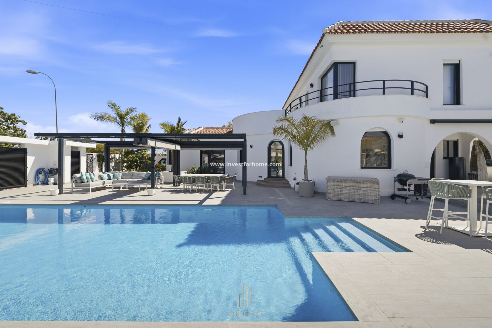 Helrenoverad fristående villa med uppvärmd pool i San Luis. Fastighet utbyggd i december 2024, belägen på en tomt om 900 m² med generösa utomhusytor. Den har 6 sovrum och 5 badrum, varav 4 en suite, fördelade på två plan. Entréplanet erbjuder ett ljust vardagsrum med stora fönster, öppet kök, 3 sovrum, kontorsyta och extra utrymme som kan användas som ett sjunde sovrum. Övre plan har 3 sovrum med egna badrum samt en terrass med utsikt över saltsjön. Utomhus finns en uppvärmd pool med automatiskt skydd, trädgård med etablerad växtlighet, sol- och skuggzoner samt ett fristående förråd som används som gym. Viktiga egenskaper: 6 sovrum 5 badrum 250 m² byggd yta Tomt på 900 m² Utbyggnad klar december 2024 Privat uppvärmd pool med automatiskt skydd 4 sovrum med eget badrum Öppen planlösning kök Vardagsrum med stora fönster Kontorsyta Möjlighet till ett 7:e sovrum Terrass med utsikt över saltsjön Trädgård med fruktträd och planteringar Sittplatser med pergola Förråd / gym Tvättstuga och separat teknikrum Utrustning: LG luftkonditionering via kanaler (båda våningar) Panasonic luftkonditionering i flera rum Luftkonditionering i hela bostaden Golvvärme i master bedroom, kök och övre sovrum Jacuzzi / spa för 5 personer Vitvaror: Beko torktumlare EAS Electric tvättmaskin AEG integrerad kyl/frys AEG integrerad mikrovågsugn AEG ugn AEG häll Plats: Gångavstånd till barer och restauranger 350 m: Alingui San Luis 350 m: Lilla Svensken 350 m: Bombay Spice 850 m: Campobello 850 m: Gran China 1,6 km: Carmens 2,2 km: Siciliana 2,2 km: Kings Curry Nära stormarknader Område med park, skatepark och fotbollsplan Vattenpark i San Luis (sommar) 15 minuter med bil till Guardamar, Moncayo och La Mata