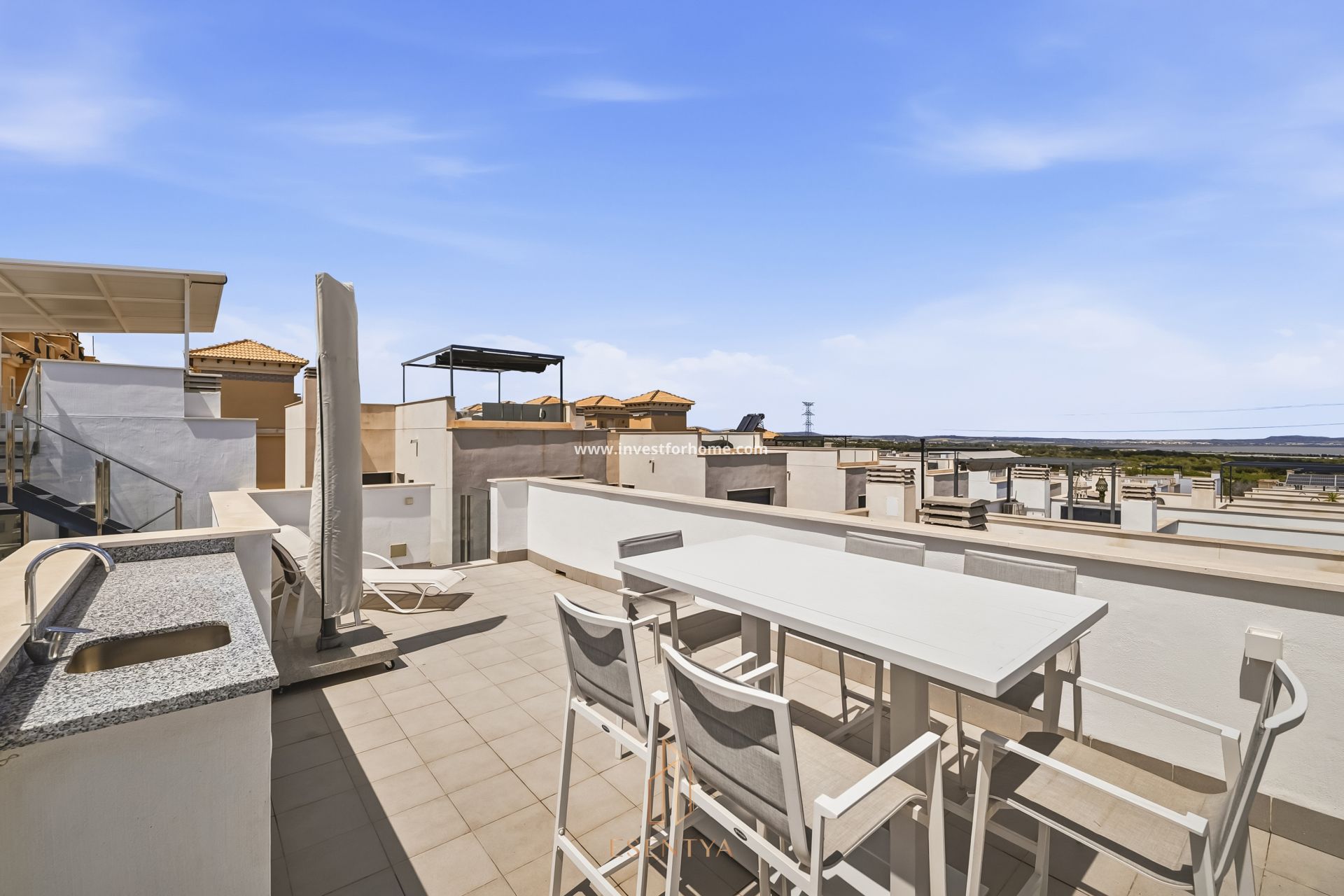Fristående villa med uppvärmd pool och solarium i Pau 26, Villamartín. Bostad byggd 2022 på en tomt om 190 m², med 115 m² byggd yta och ett solarium på 36 m². Fördelad på två plan, där entréplanet har vardagsrum med öppet kök, 1 sovrum, 1 badrum och direkt tillgång till trädgård och privat uppvärmd pool. Övre plan har 2 sovrum och 1 badrum, med utgång till terrass från ett av sovrummen. Solariumet erbjuder utsikt över havet och saltsjöarna i Torrevieja. Bostaden har sydostläge, parkeringsplats på tomten och säljs möblerad. Viktiga egenskaper: 3 sovrum 2 badrum 115 m² byggd yta Tomt på 190 m² Solarium / terrass 36 m² Byggnadsår: 2022 Privat uppvärmd pool Sydostläge Öppet kök Centralvärme / luftkonditionering Golvvärme i badrum Elektriska persienner Parkering på tomten Möblerad Plats: 1,2 km till stormarknad 1,8 km till barer och restauranger 4 km till La Zenia Boulevard 4,4 km till Playa Flamenca-stranden Årliga kostnader: Föreningsavgift: €375 IBI: