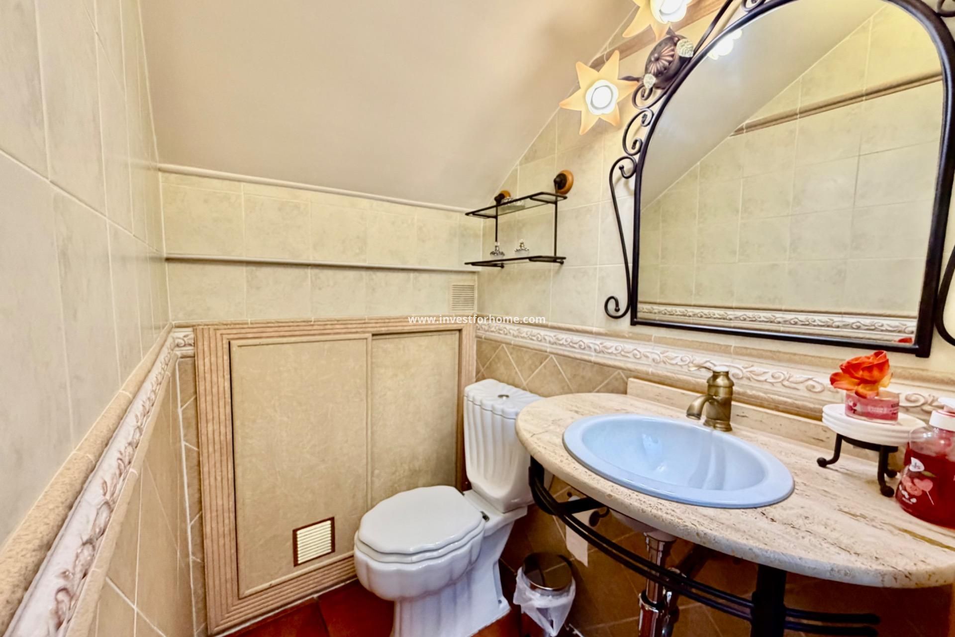 Vacker parvilla (sammanbyggd med en granne) belägen i det eftertraktade området La Zenia, endast 7 minuter från stranden och 4 minuter från La Zenia Boulevard. Bostaden har ett utmärkt läge med alla bekvämligheter inom räckhåll, inklusive barer, restauranger och butiker bara 2 minuters promenad bort. Huset erbjuder 4 rymliga sovrum och 4 badrum, utformat för komfort och funktionalitet, perfekt både som permanentboende och som lyxigt semesterboende. Fastigheten har en privat uppvärmd pool samt täckt parkeringsplats. Invändigt är villan mycket trivsam och välskött med: * Fullt möblerad * AC i alla rum * Oljebaserat uppvärmningssystem * Gott om förvaringsutrymme Bostaden är i mycket gott skick, noggrant underhållen och redo att flytta in i direkt. En perfekt kombination av komfort, läge och livsstil i ett av de mest eftertraktade områdena på Costa Blanca.