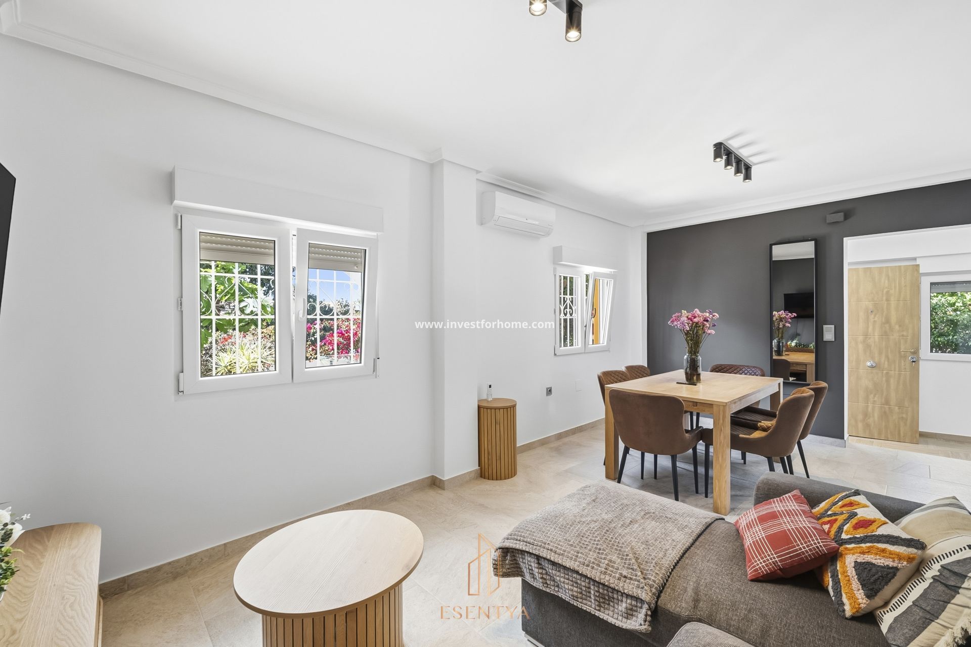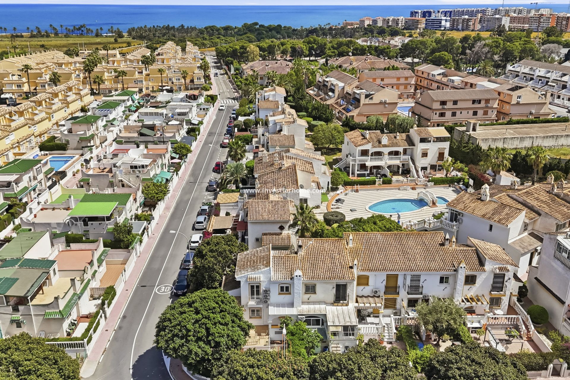 Renoverat radhus med terrass och grillplats i Los Altos, Torrevieja. Hörn-radhus helt renoverat 2026, beläget i ett bostadsområde med gemensam pool. Bostaden har 86 m² byggd yta och en tomt på 60 m², med en terrass på 20 m² och grillplats. På entréplanet finns ett möblerat vardagsrum, ett fullt utrustat separat kök med utgång till en inglasad patio med tvättdel och dusch, samt gästtoalett och hall med inbyggd garderob. Övre plan har 2 sovrum med nya möbler och 1 badrum. Västerläge med dubbelglasfönster och keramiska golv. Viktiga egenskaper: 2 sovrum 2 badrum 86 m² byggd yta Tomt på 60 m² (hörnläge) Terrass på 20 m² med grillplats Västläge Byggnadsår: 1993 Renoverad 2026 Fullt utrustat separat kök Inglasad patio med tvätt och dusch Möblerat vardagsrum (exkl. TV) Gästtoalett på entréplan Hall med inbyggd garderob Fönster med dubbelglas Keramiska golv Gemensam pool Årliga kostnader: Föreningsavgift: €350 IBI: €250