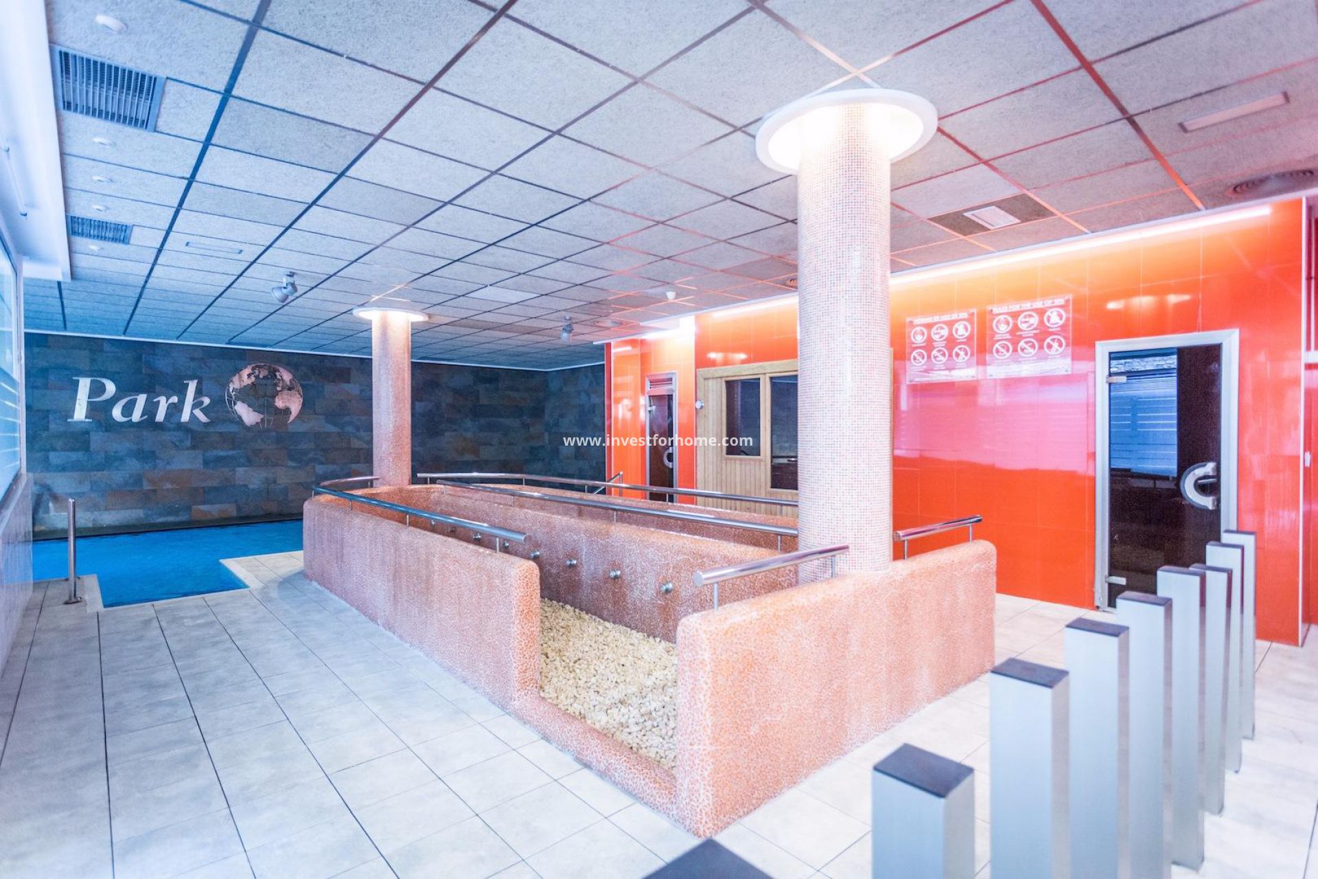 De gemensamma faciliteterna i detta bostadsområde är spektakulära och inkluderar en anlagd trädgård med stor pool, jacuzzi, uppvärmd inomhuspool, spa, bastu och fullt utrustat gym.