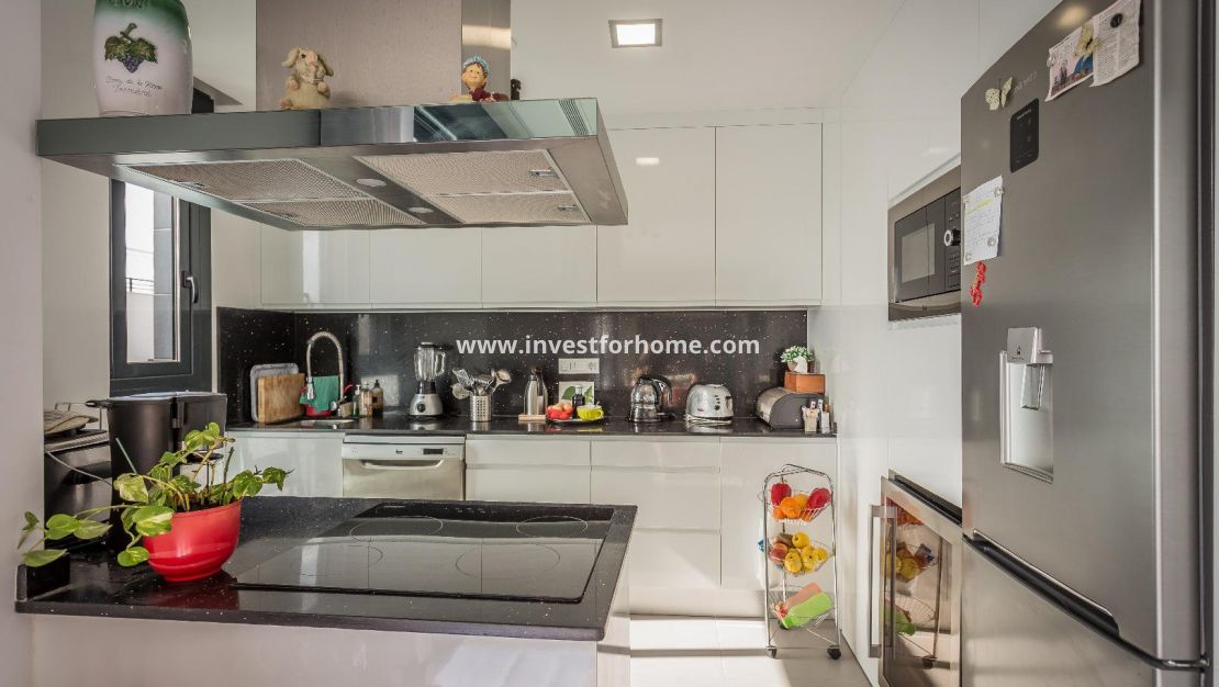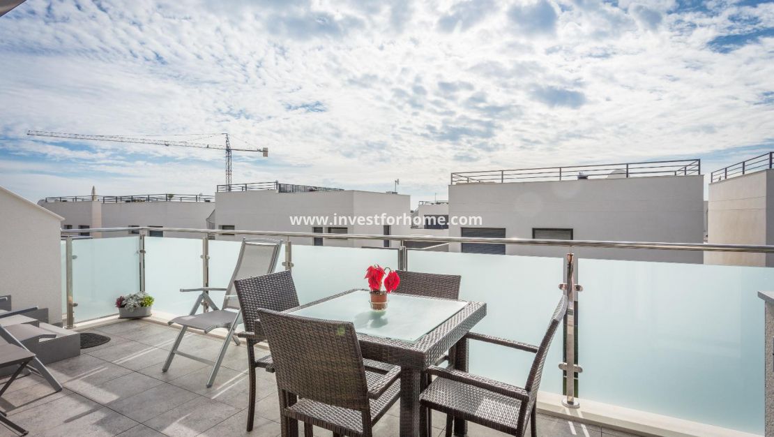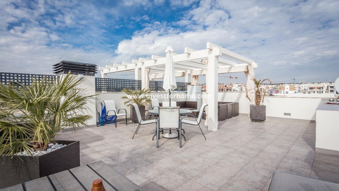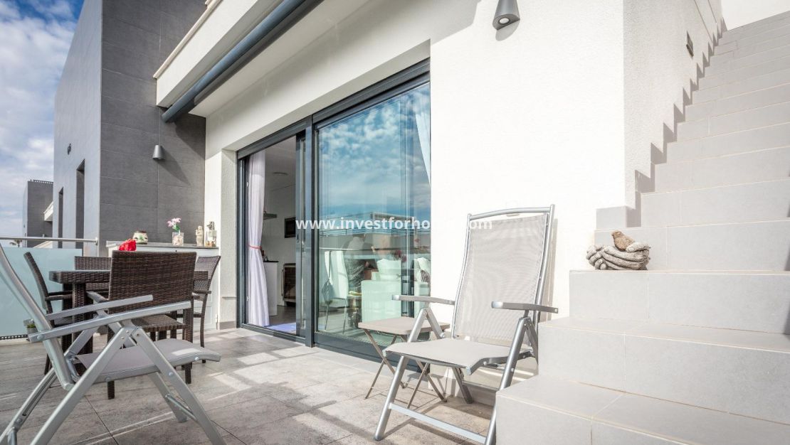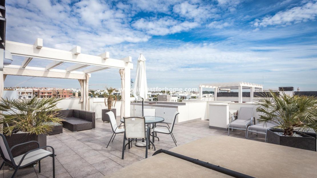 Alla rum är utvändiga vända, med breda fönster för att njuta av Medelhavet ljus hela dagen. Det finns också en stor terrasse och ett solarium på mer än 70m2 med jacuzzi. Luftkonditionering i hela huset. Fastigheten säljs möblerad. Bara 7 minuter från stränderna i La Mata och Guardamar. 25 minuter från flygplatsen.