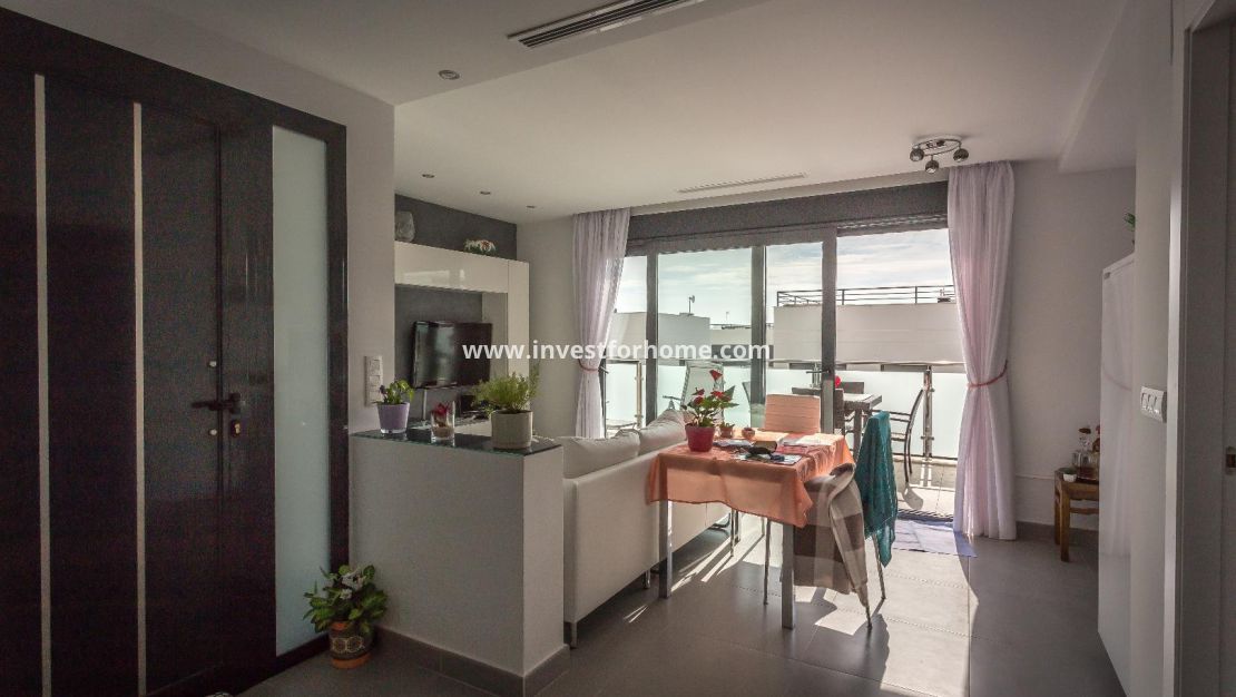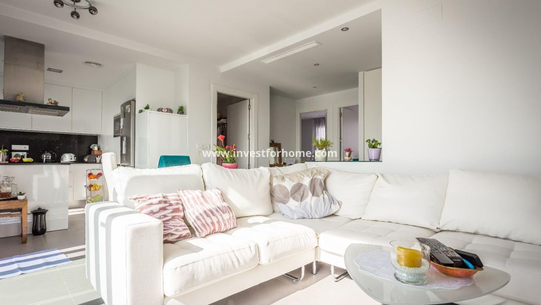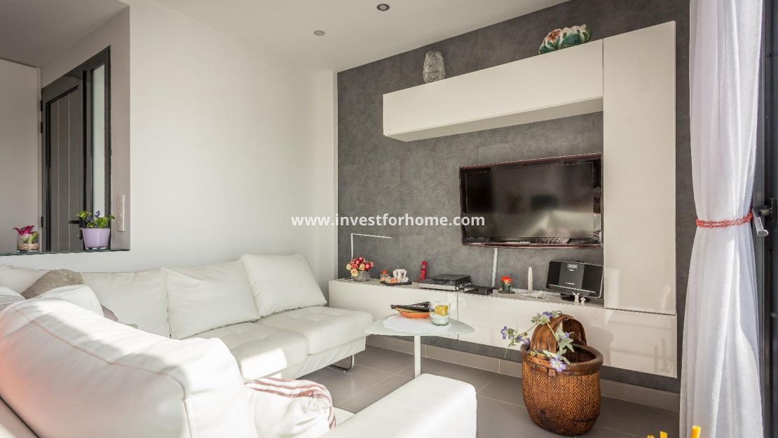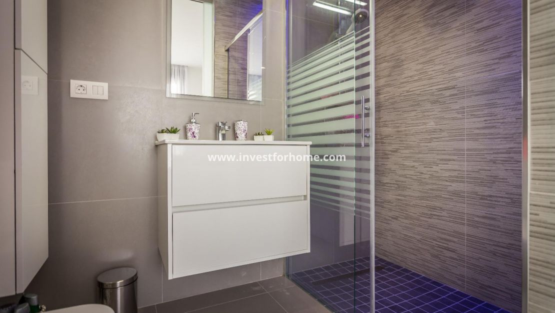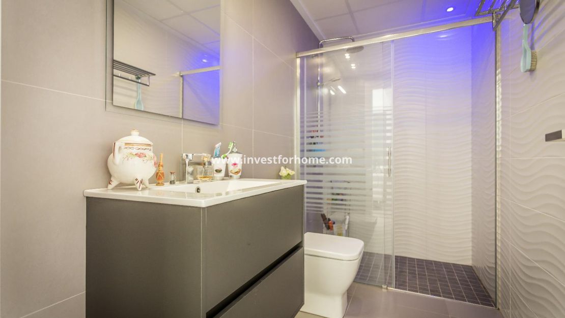Alla rum är utvändiga vända, med breda fönster för att njuta av Medelhavet ljus hela dagen. Det finns också en stor terrasse och ett solarium på mer än 70m2 med jacuzzi. Luftkonditionering i hela huset. Fastigheten säljs möblerad. Bara 7 minuter från stränderna i La Mata och Guardamar. 25 minuter från flygplatsen.