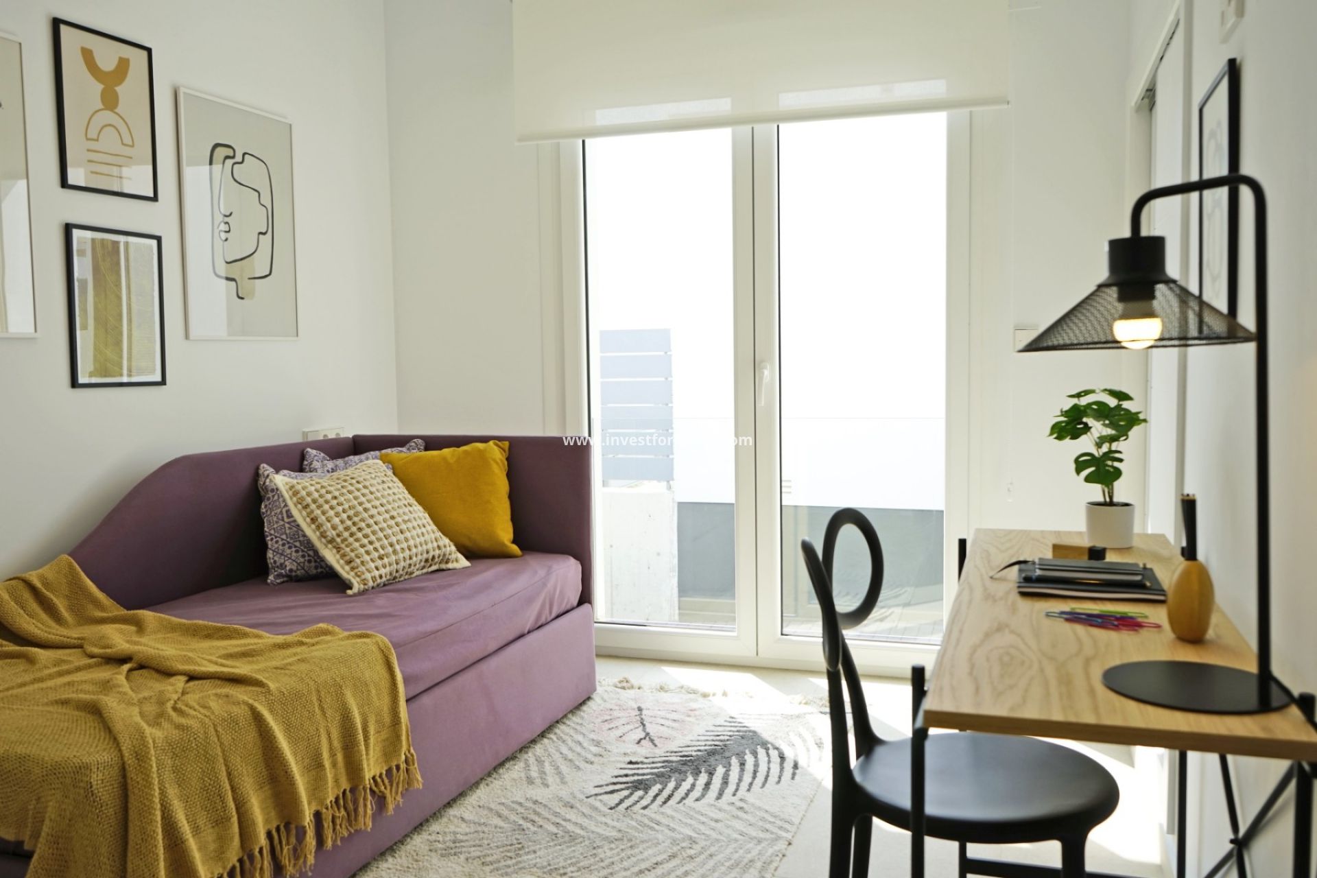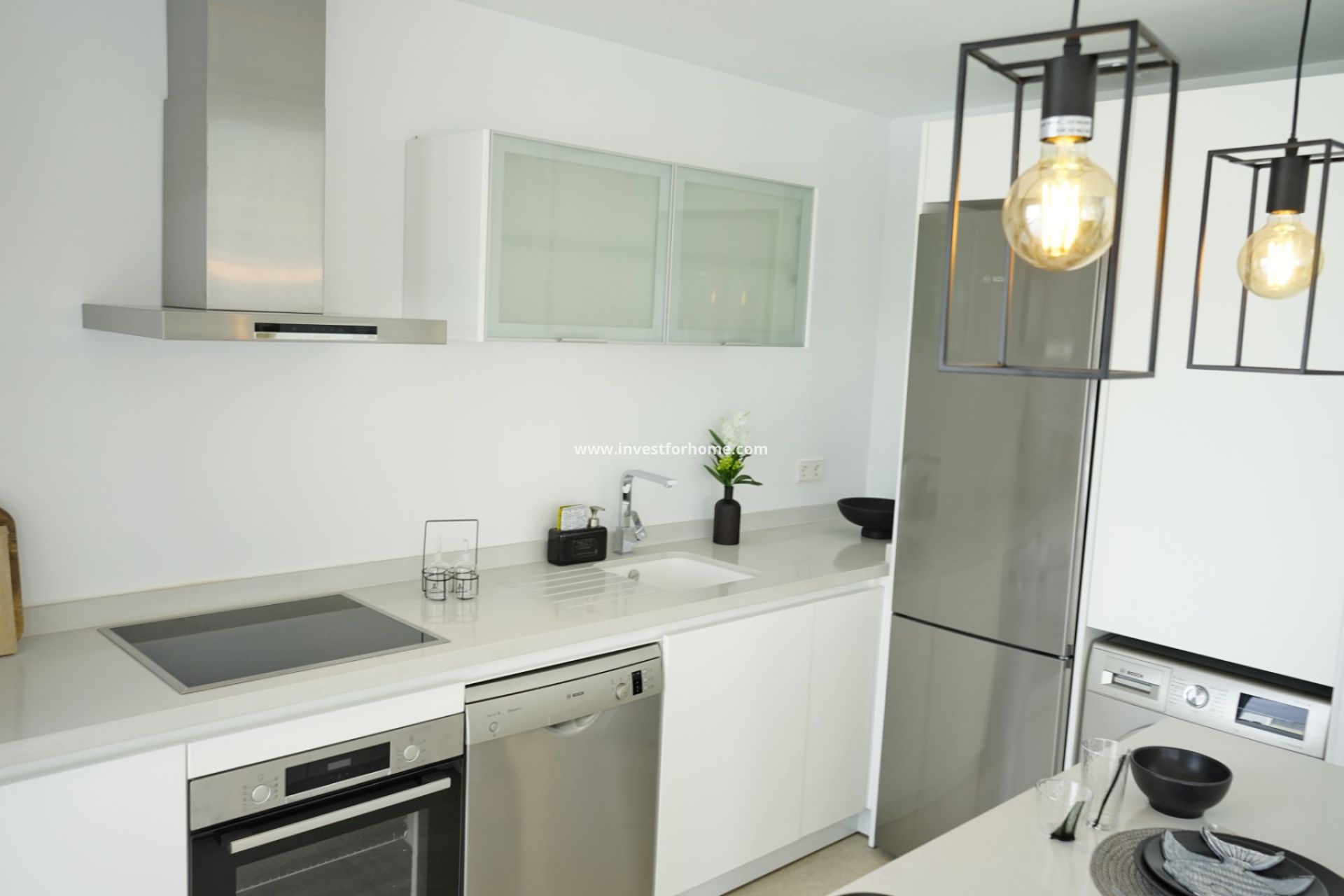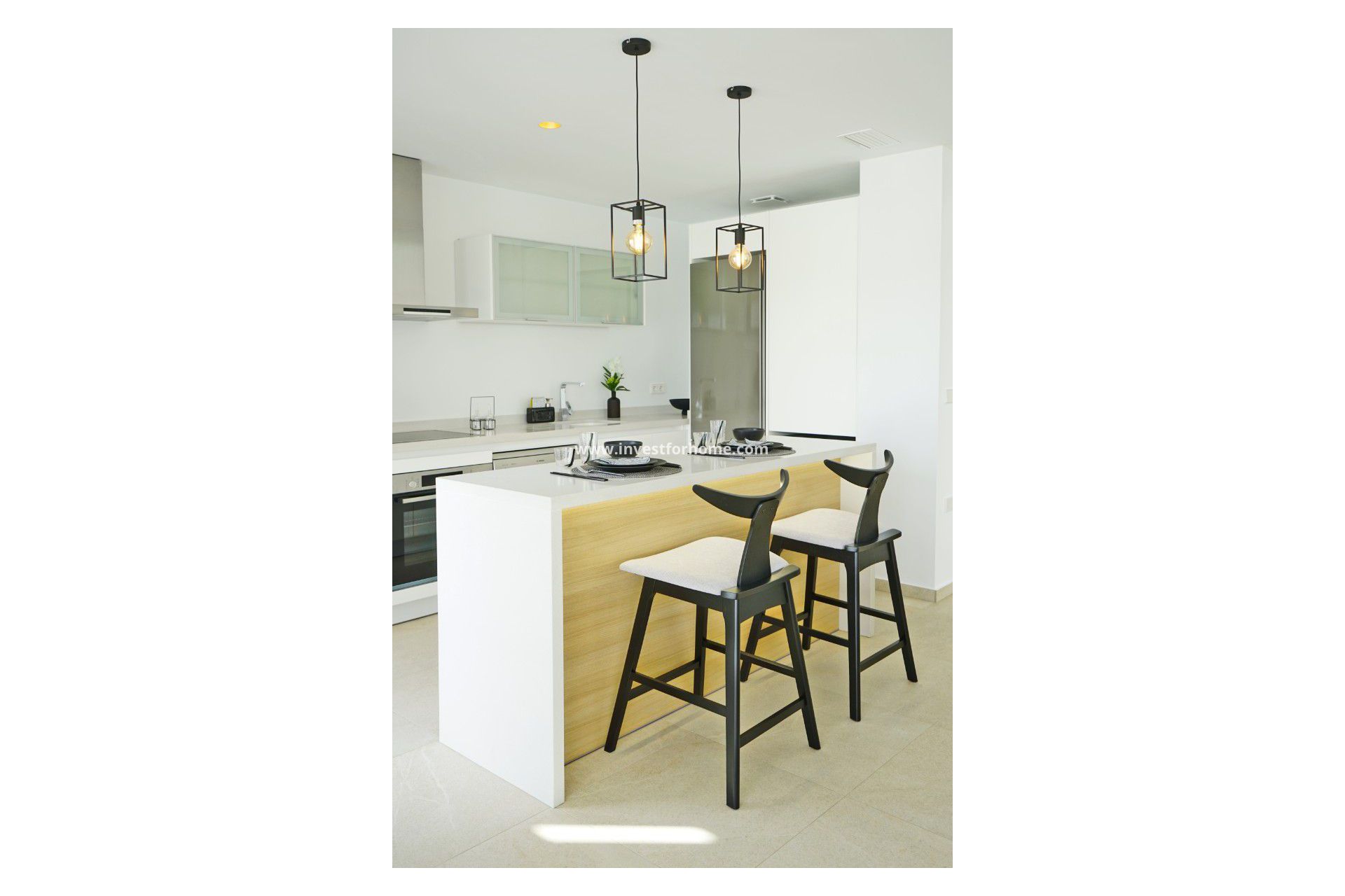 Dessa nybyggda villor ligger bredvid golfbanan på Costa Blanca och består av 3 rymliga sovrum och 3 badrum, med en total bostadsyta på 110 m2, stor terrass, byggd på en tomt mer än 200 M2 och möjligheten att inkludera privat pool för en extra kostnad på 12500 € + moms På bottenvåningen öppen planlösning - matsal, utrustat kök, 1 sovrum, badrum och på första våningen, 2 sovrum badrum.