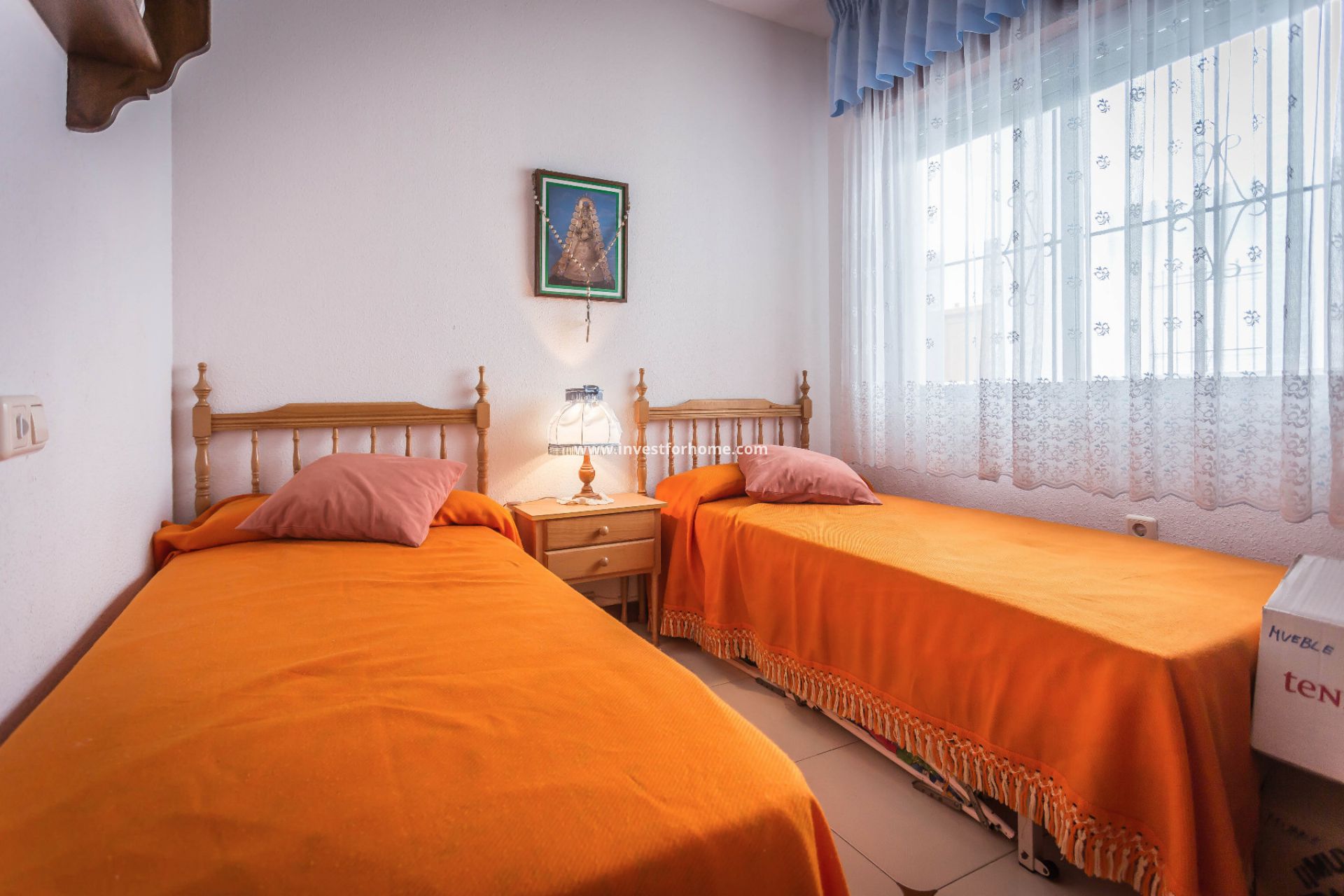 Lägenhet på översta våningen till salu i Torrevieja Playa de los Locos-området, 102 M2 bostadsyta och en fantastisk terrass på 22m2, 100 m. Från stranden, 3 sovrum, ett badrum, toalett, separat utrustat kök, västerut. Extra: luftkonditionering, skåp, hiss, säker dörr. Alla faciliteter inom gångavstånd