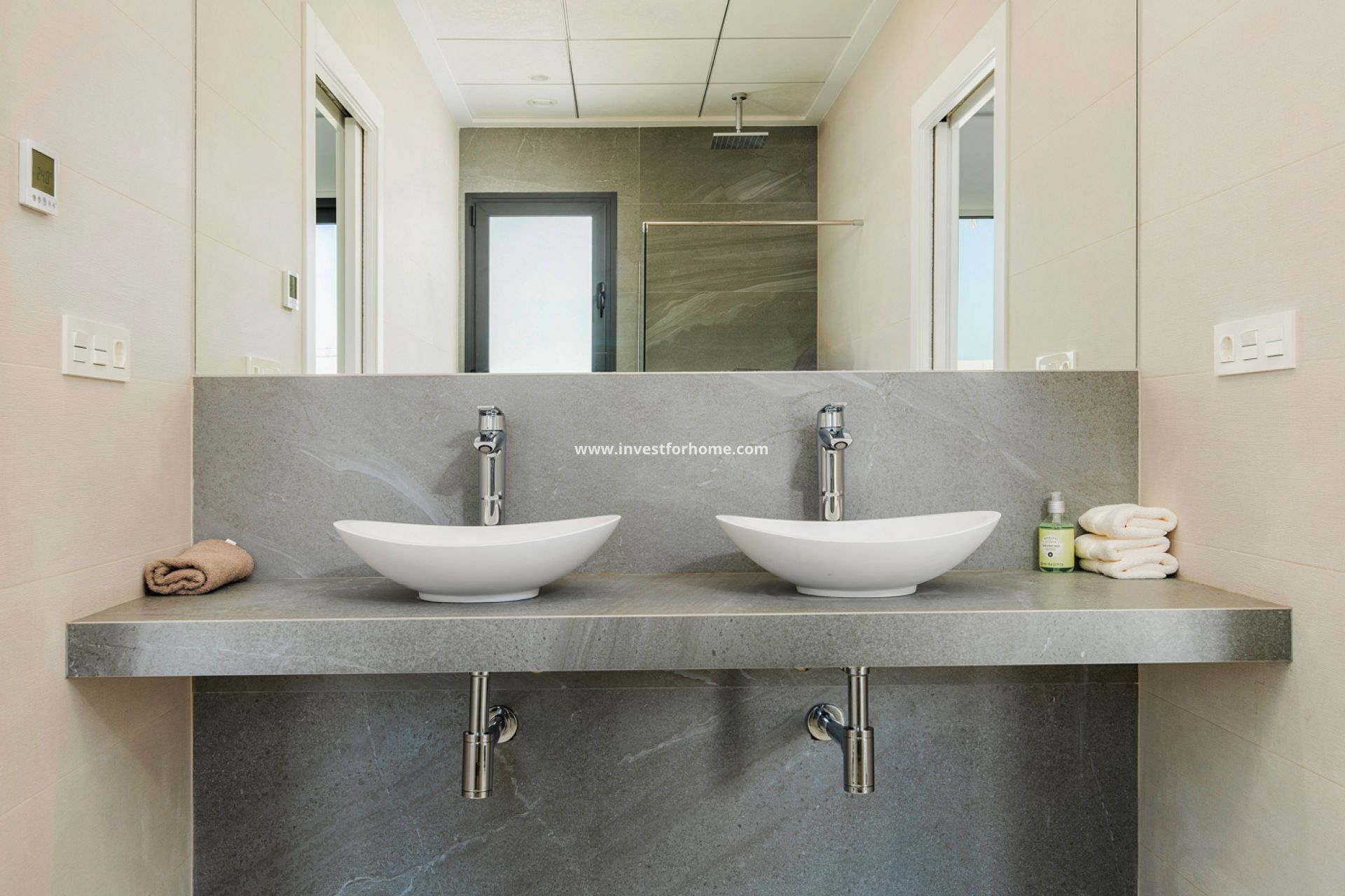 Residenset består av villor i modern stil på privata tomter med terrass, parkering och privat pool. Husen består av ett vardagsrum, kök, 3 sovrum (två en suite), 3 badrum, källare och solarium med privilegierad utsikt. Allt noggrant designat med kvalitetsmaterial för att tillfredsställa de mest krävande kunderna.