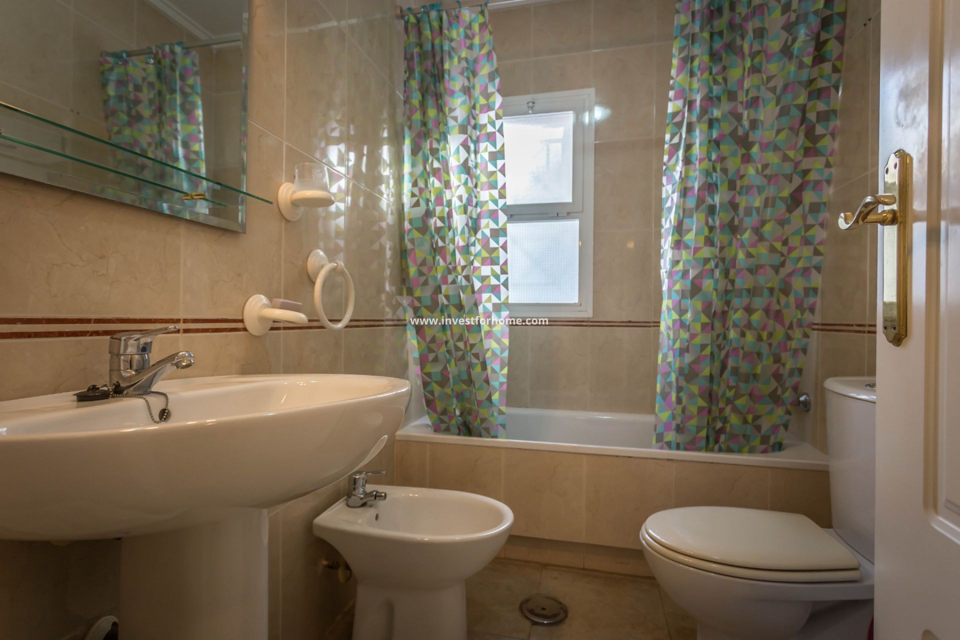 Detta familjeduplexhus har en yta på 93 m2 och består av fyra sovrum, två badrum, trädgård, terrass, källare och takterrass på 15 m2. Källaren är tillgänglig från vardagsrummet men är ännu inte avslutad. Bottenvåningen består av 2 sovrum, 1 badrum, vardagsrum och ett stort kök på 11m2. På första våningen ett sovrum med privat badrum, ett andra mindre sovrum och takterrass. Det är möjligt att förstora vardagsrummet genom att ta bort ett sovrum på bottenvåningen . Privat parkering och förråd på tomten. Bostaden har också en vacker pool för barn och vuxna. Idealiskt beläget nära alla bekvämligheter och närliggande stränder.
