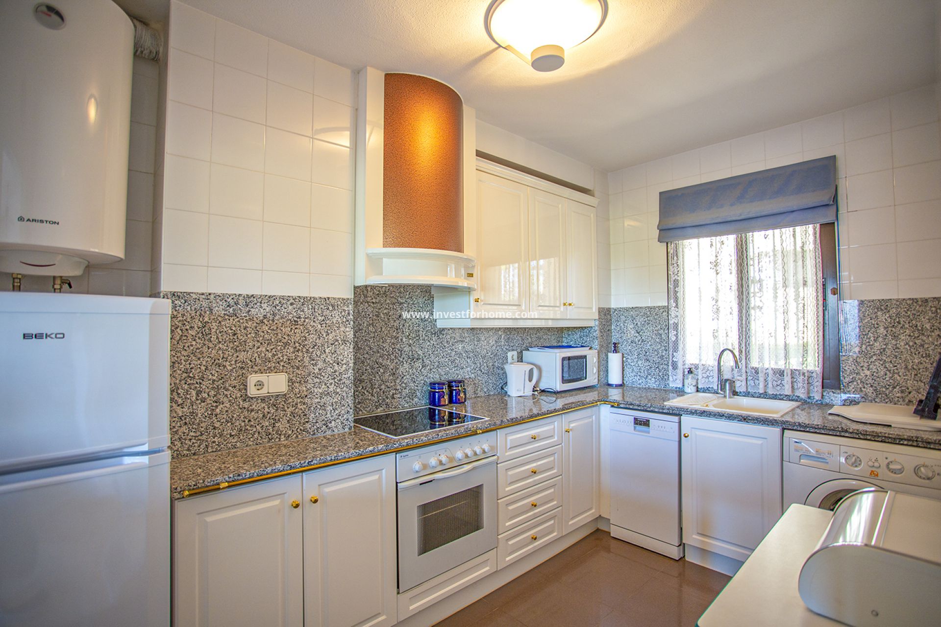 Tre vånings lägenhet salu i det prestigefyllda området Las Ramblas, Orihuela Costa. På bottenvåningen ett vardagsrum, kök och badrum, på första våningen 2 sovrum och ett badrum och på andra våningen ett tredje sovrum. Fastigheten är i gott skick och säljs utrustad med luftkonditionering, larm, vitvaror och möbler.