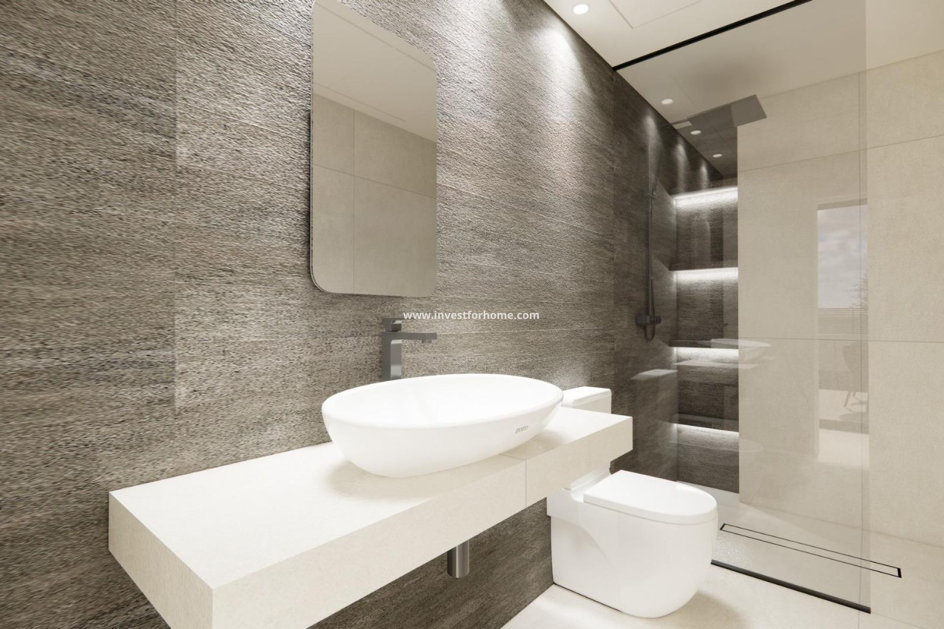 Nybyggda kvadrater och radhus i Dolores Detta moderna bostadsområde i Dolores består av nybyggda kvadrater och radhus. Varje hem är designat med modern stil och komfort i åtanke och är fördelat på två våningar och erbjuder 3 sovrum och 3 badrum. Köket med öppen planlösning ansluter sömlöst till vardagsrummet, som leder direkt till en privat terrass och trädgård. Varje hem har också en egen privat pool och parkeringsplats. Högkvalitativa ytbehandlingar och moderna bekvämligheter Dessa hem är byggda med högkvalitativa material och ytbehandlingar. Utvändiga snickerier är tillverkade av aluminium med termisk brytning och badrummen har duschväggar av glas. LED-belysning är installerad i hela fastigheten, vilket säkerställer energieffektivitet och en modern atmosfär. Dessa egenskaper skapar tillsammans en bekväm och elegant boendemiljö för dig och din familj. Förstklassigt läge nära dagliga tjänster Dessa hem ligger i utkanten av den charmiga staden Dolores, bara en kort promenad från viktiga dagliga tjänster, inklusive butiker, restauranger och lokala bekvämligheter. Dolores är en del av Vega Baja del Segura-regionen, i den södra delen av Alicante-provinsen, känd för sina jordbrukslandskap och avslappnade tempo i livet. Nära till viktiga intressepunkter La Marina strand: 10 km Guardamar strand: 10 km Alicante flygplats: 30 km Murcia-Corvera flygplats: 60 km Golfbanor: 15 km Köpcentrum: 12 km Perfekt för att njuta av livsstilen på Costa Blanca Med Medelhavsklimatet, vackra stränder bara en kort bilresa bort och flera golfbanor i närheten, erbjuder denna utveckling den perfekta balansen mellan avkoppling och fritid. Oavsett om du letar efter ett fritidshus eller en permanent bostad, erbjuder dessa nybyggda hem i Dolores ett modernt boende i ett lugnt och väl anslutet läge.