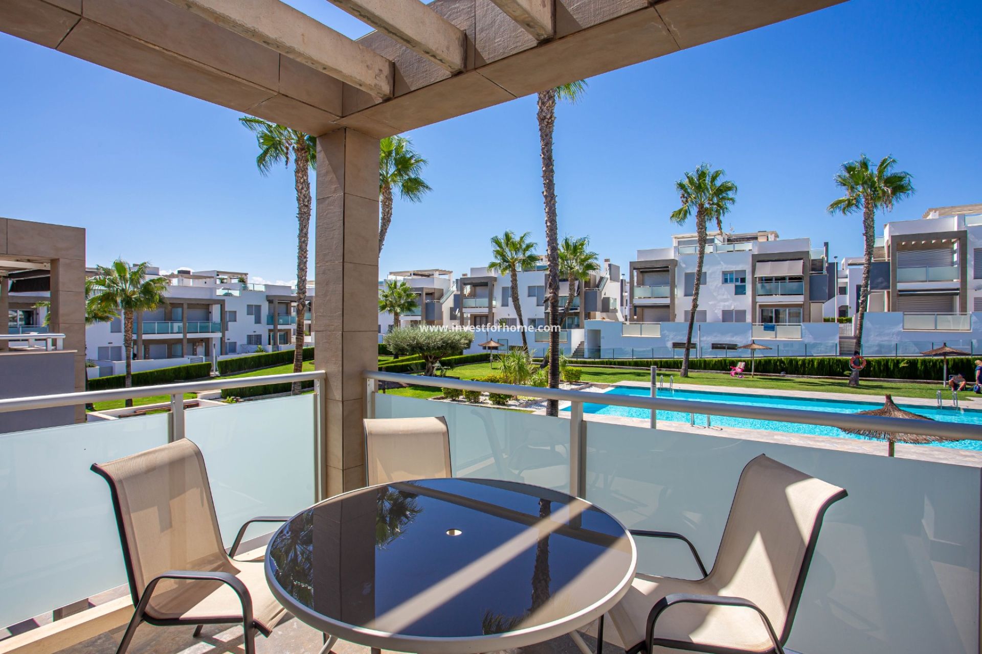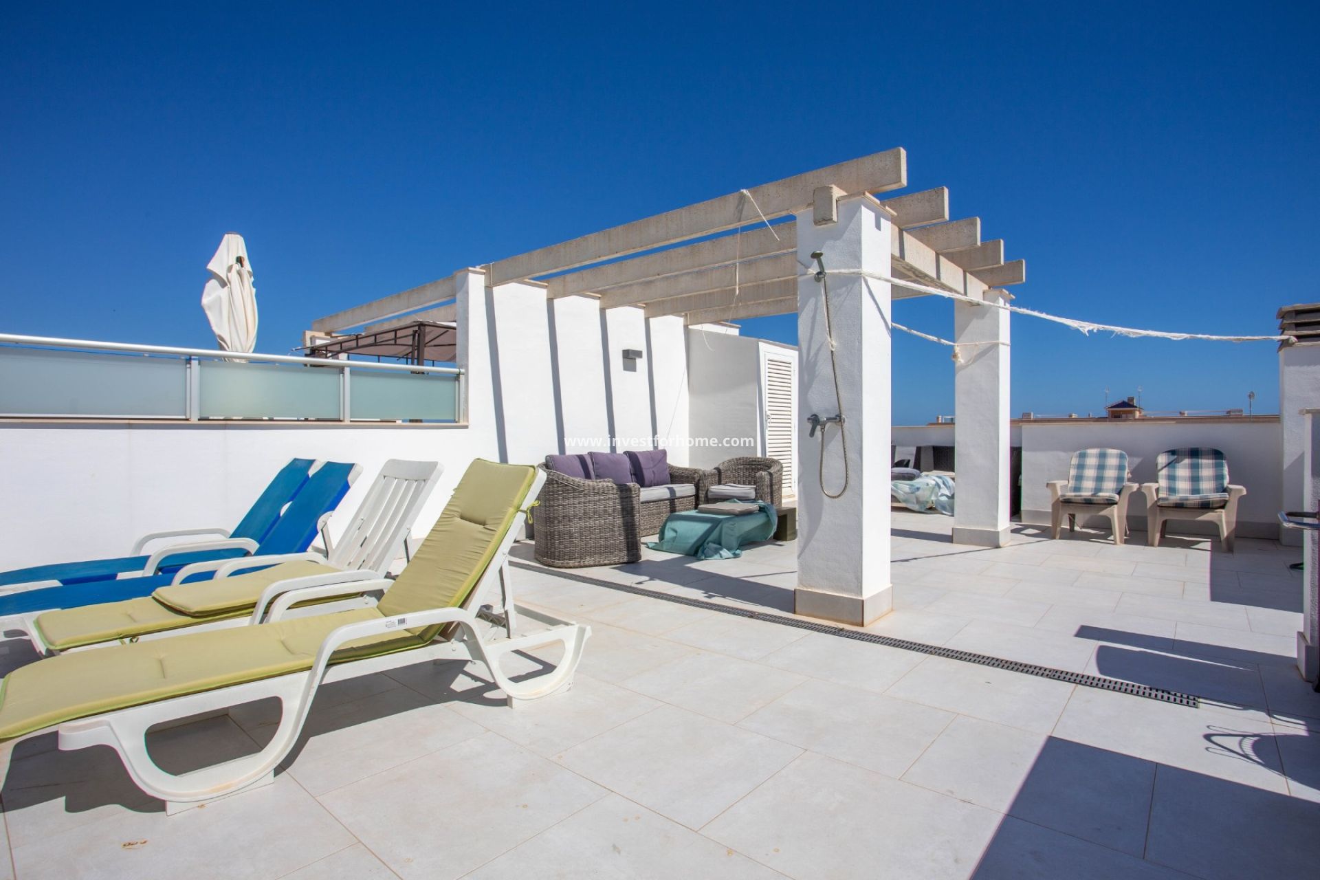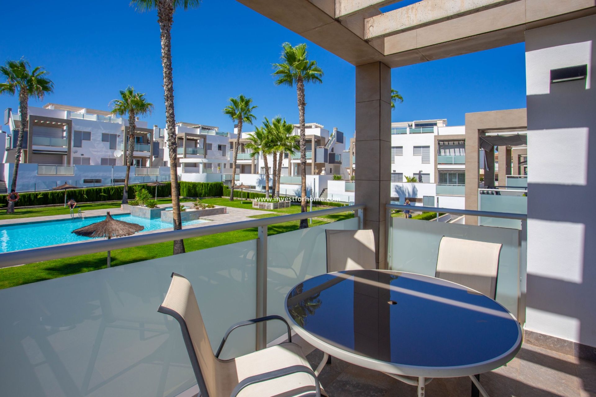 Huset vetter mot sydväst och drar nytta av rikligt med sol hela dagen, vilket skapar en varm och välkomnande atmosfär. Det privata solariet erbjuder vacker utsikt över den gemensamma poolen - det perfekta stället att koppla av, underhålla eller njuta av medelhavsklimatet.