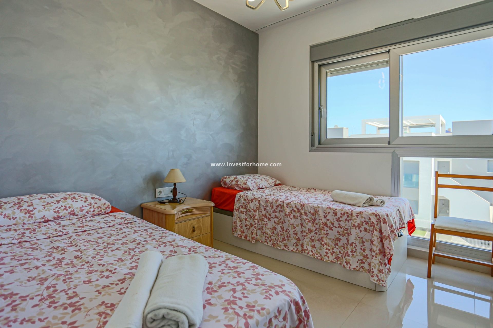 Välkommen till denna vackra bungalow på översta våningen, belägen i den exklusiva urbaniseringen Mirador de Amay i Punta Prima, ett av de mest eftertraktade områdena i Orihuela Costa. Denna fastighet byggdes 2016 och erbjuder 70 m² ljus och modern bostadsyta, designad med komfort och stil i åtanke. Bungalowen har 2 rymliga sovrum och 2 moderna badrum, vilket gör den idealisk för semester och året runt boende.