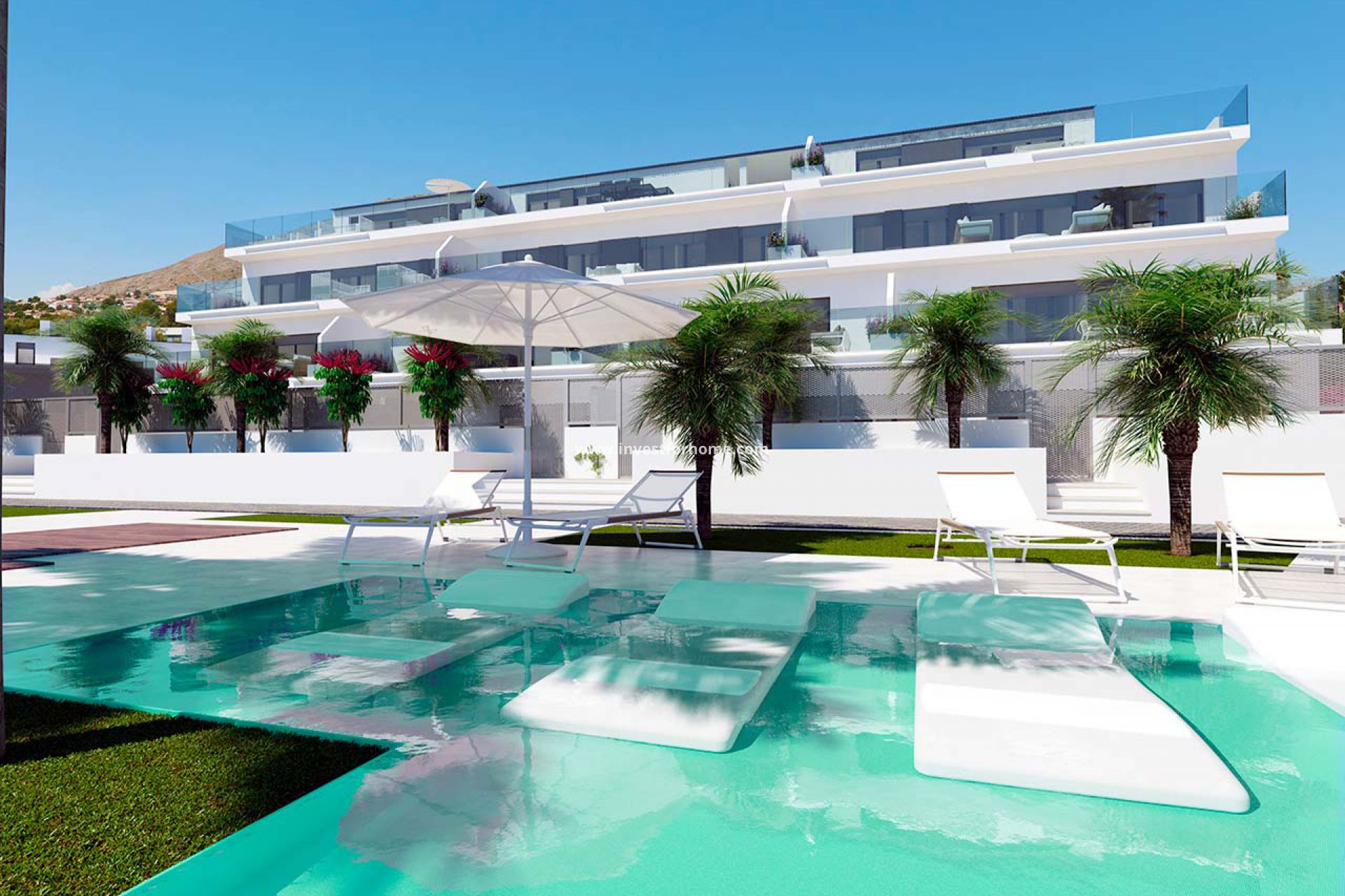 Alla lägenheter har fullt utrustat kök, öppet mot vardagsrummet, där ett stort fönster ger plats för den rymliga terrassen med glasbalustrade, som erbjuder fantastisk utsikt över de gemensamma områdena i bostadsområdet och Benidorm skyline. Dessutom inkluderar de luftkonditioneringskanaler, golvvärme i badrum, hemmeautomatiseringssystem, LED-belysning och parkering, bland andra.