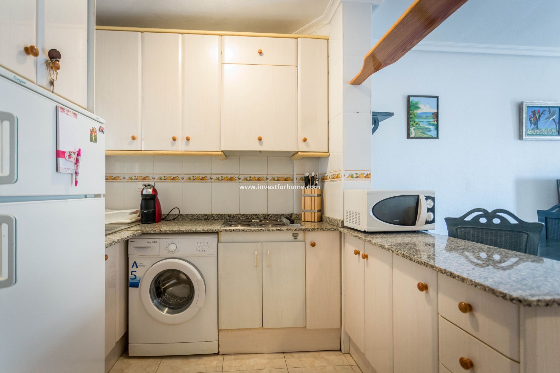 Vacker bottenvåning som ligger i ett privat och säkert komplex, strax utanför Torrevieja, i San Luis. Lägenheten består av 2 sovrum och 1 badrum. Det säljs möblerat och vitvaror och har en stor terrass på 11 kvadratmeter och en parkeringsplats . Dessutom har den en trevlig trädgård med gemensam pool, och ligger bredvid en naturpark, nära tjänster och med busshållplats vid dörren. Lokala bekvämligheter ligger inom gångavstånd från de viktigaste butikerna, barerna och restaurangerna i staden Torrevieja på en 5-minuters bilresa, som också har de närmaste seafronts, stränder och marinor. Fantastiskt semesterhus.