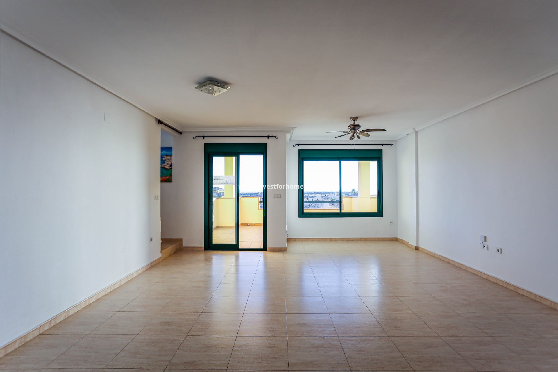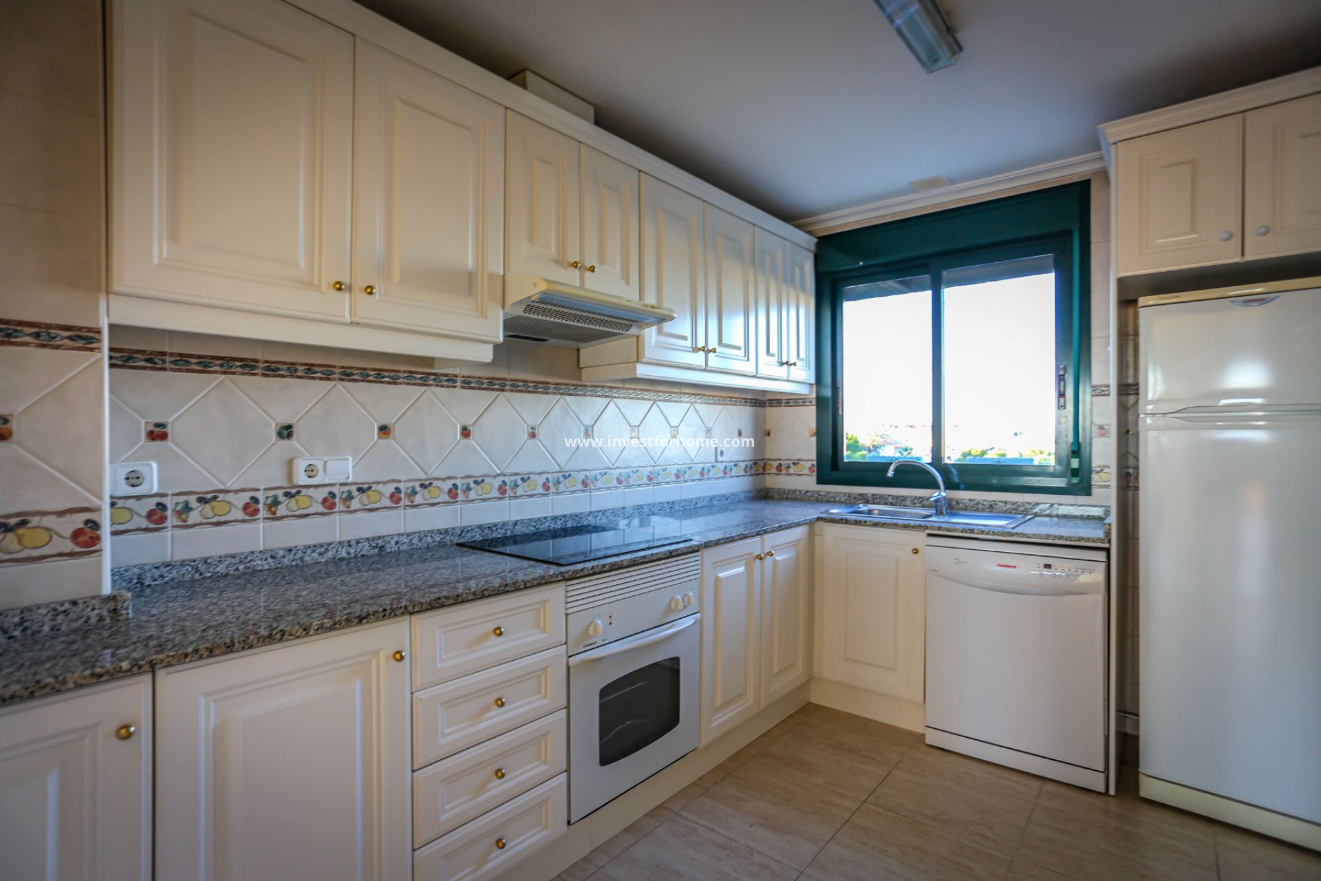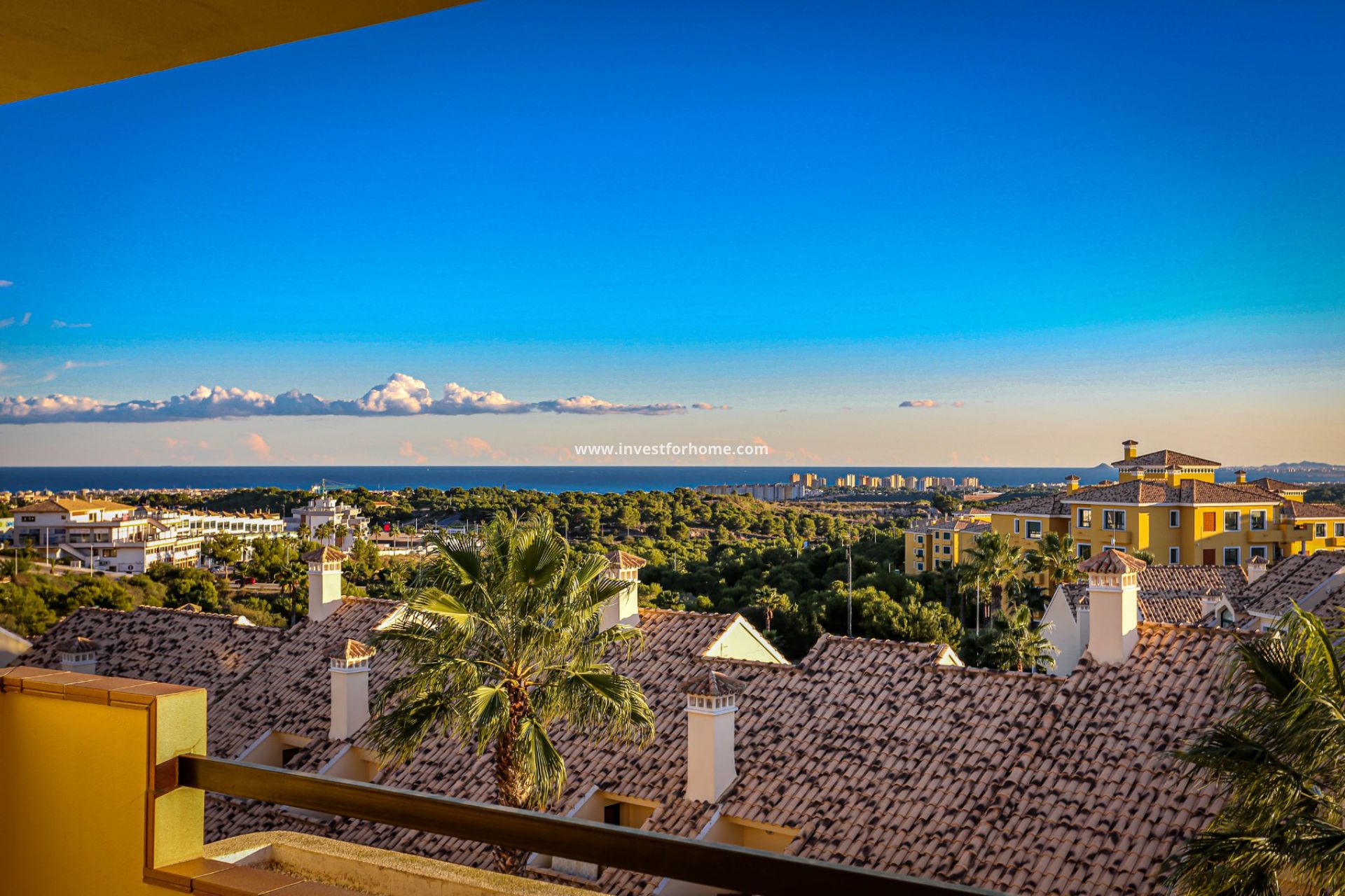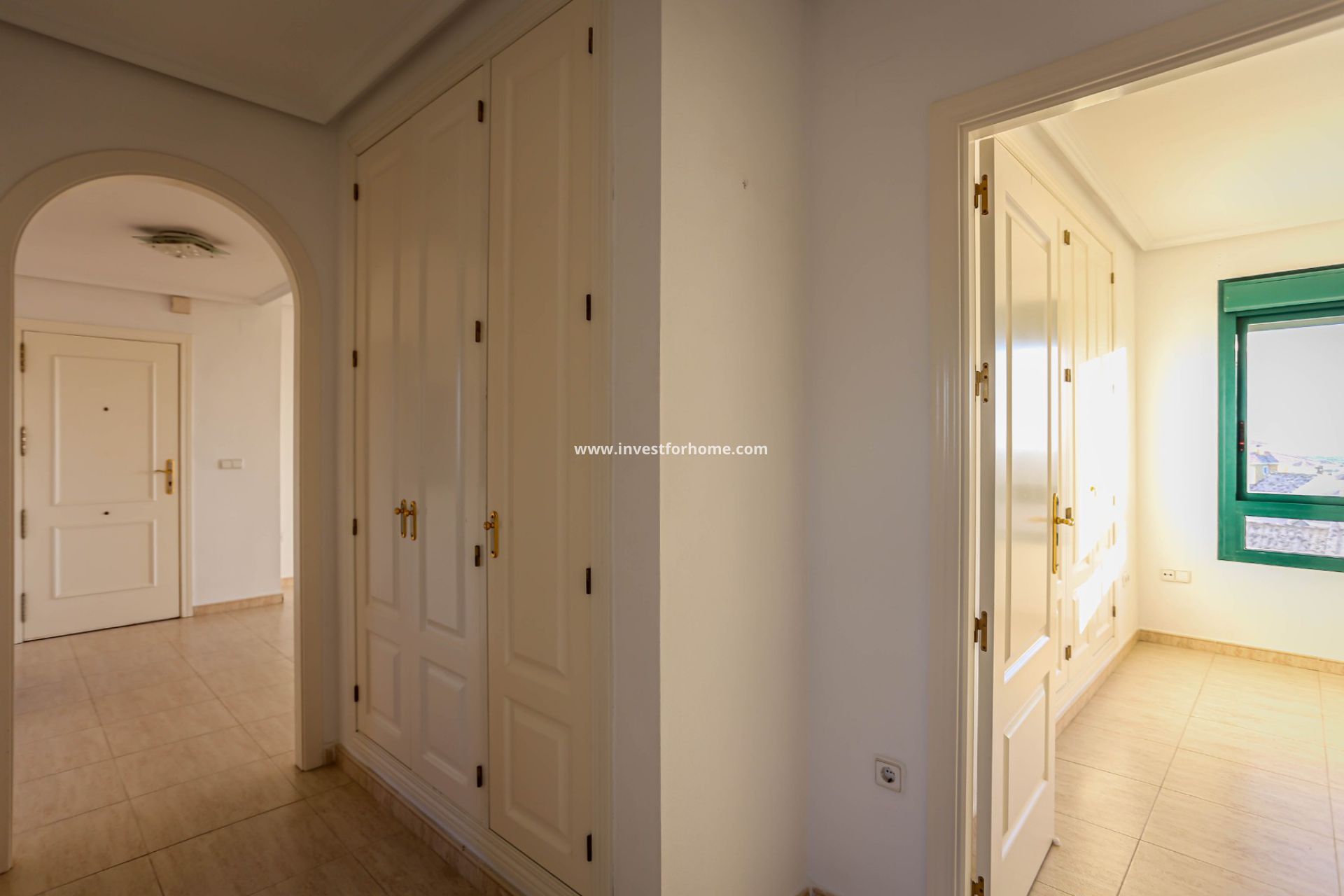 En mycket rymlig lägenhet med 2 sovrum och 2 badrum (typ Molinos) på 94 m² ligger på den mycket populära Lomas de Campoamor Golf. Två stora terrasser i söderläge (inklusive ett solarium) och panoramautsikt över havet gör detta till en fantastisk möjlighet. den har en vacker gemensam pool och 24/7 säkerhetsservice. Säljs omöblerad med närhet till alla bekvämligheter. Även om fastigheten har en traditionell känsla, erbjuder den en enorm inneryta på 94m², kombinerat med en rymlig terrass på 23m² och ett solarium på 20m². Förutom ett ljust vardagsrum och kök (med grovkök) finns 2 sovrum med inbyggda garderober och 2 fullt utrustade badrum. Ligger på andra våningen, med vacker panoramautsikt och sydvästlig orientering.